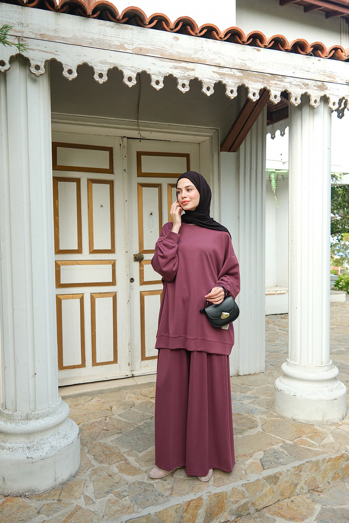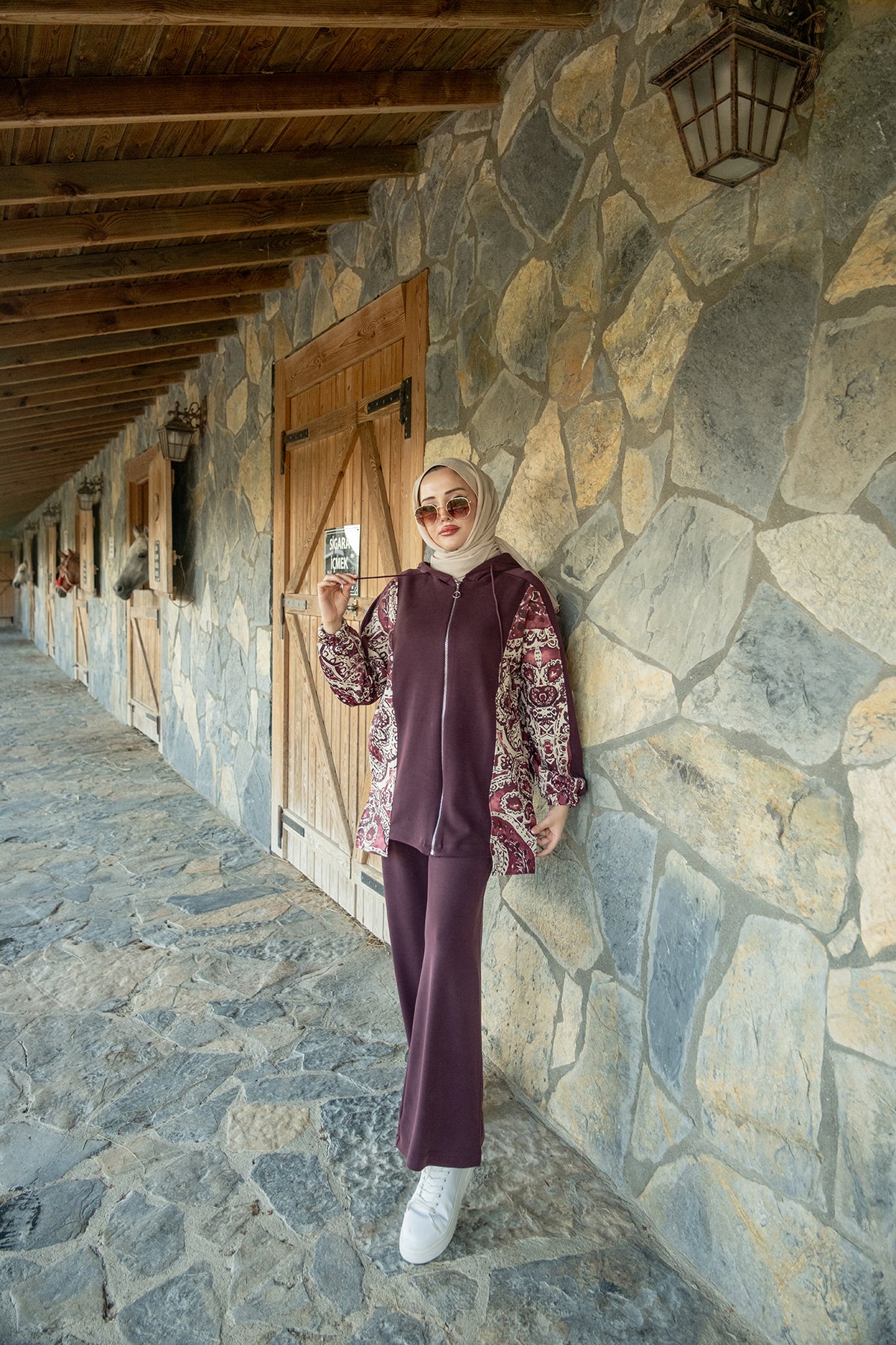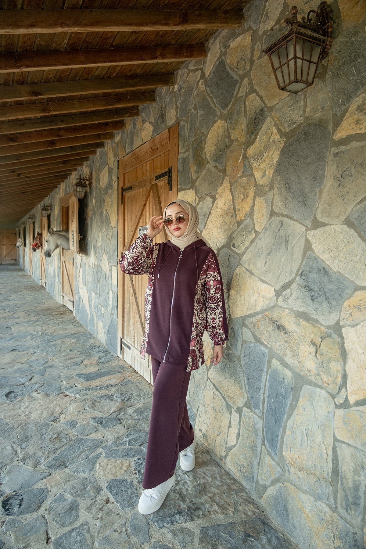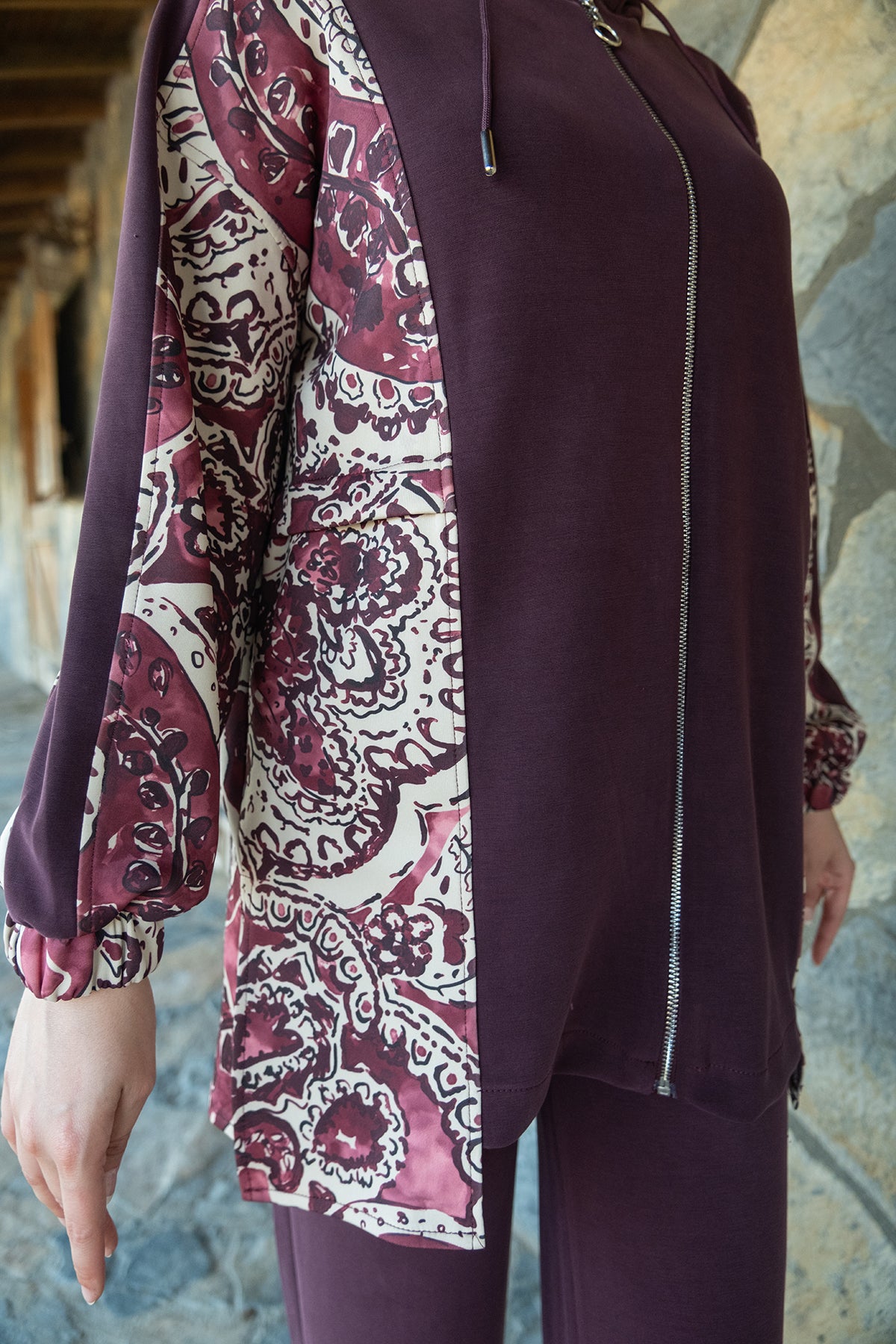 Ethnic Pattern Hooded Two-Piece Set – Plum