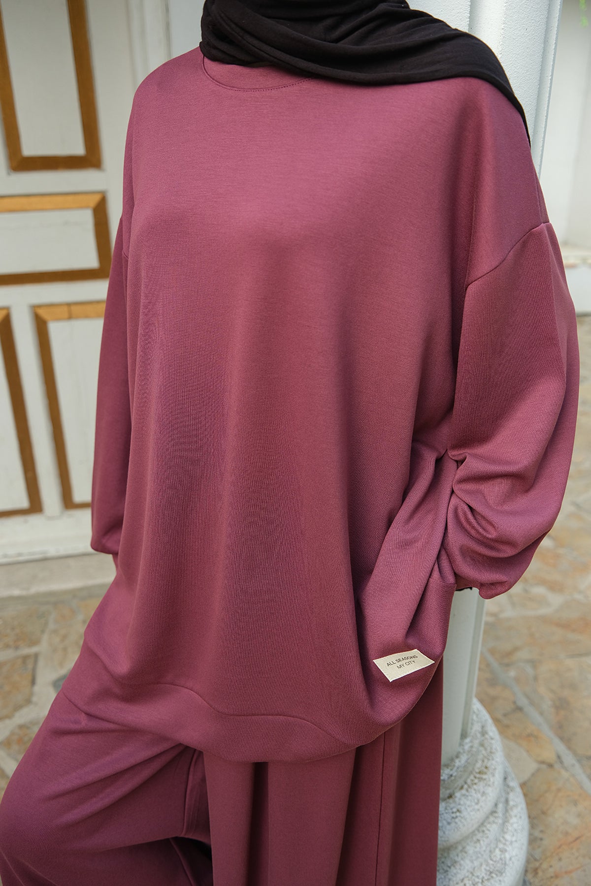 Emblem Detail Two-Piece Set – Plum