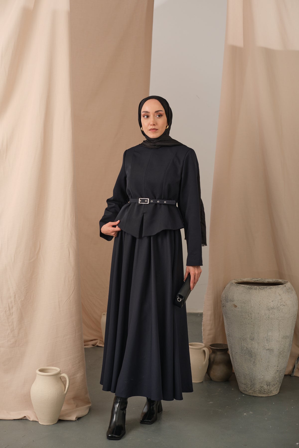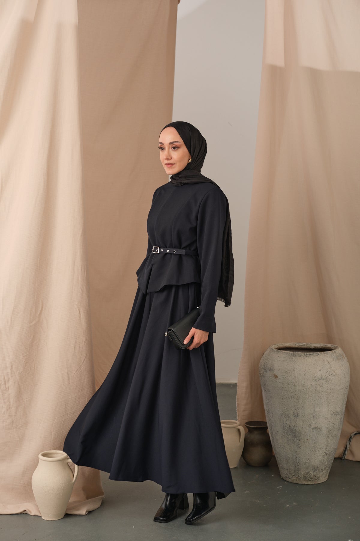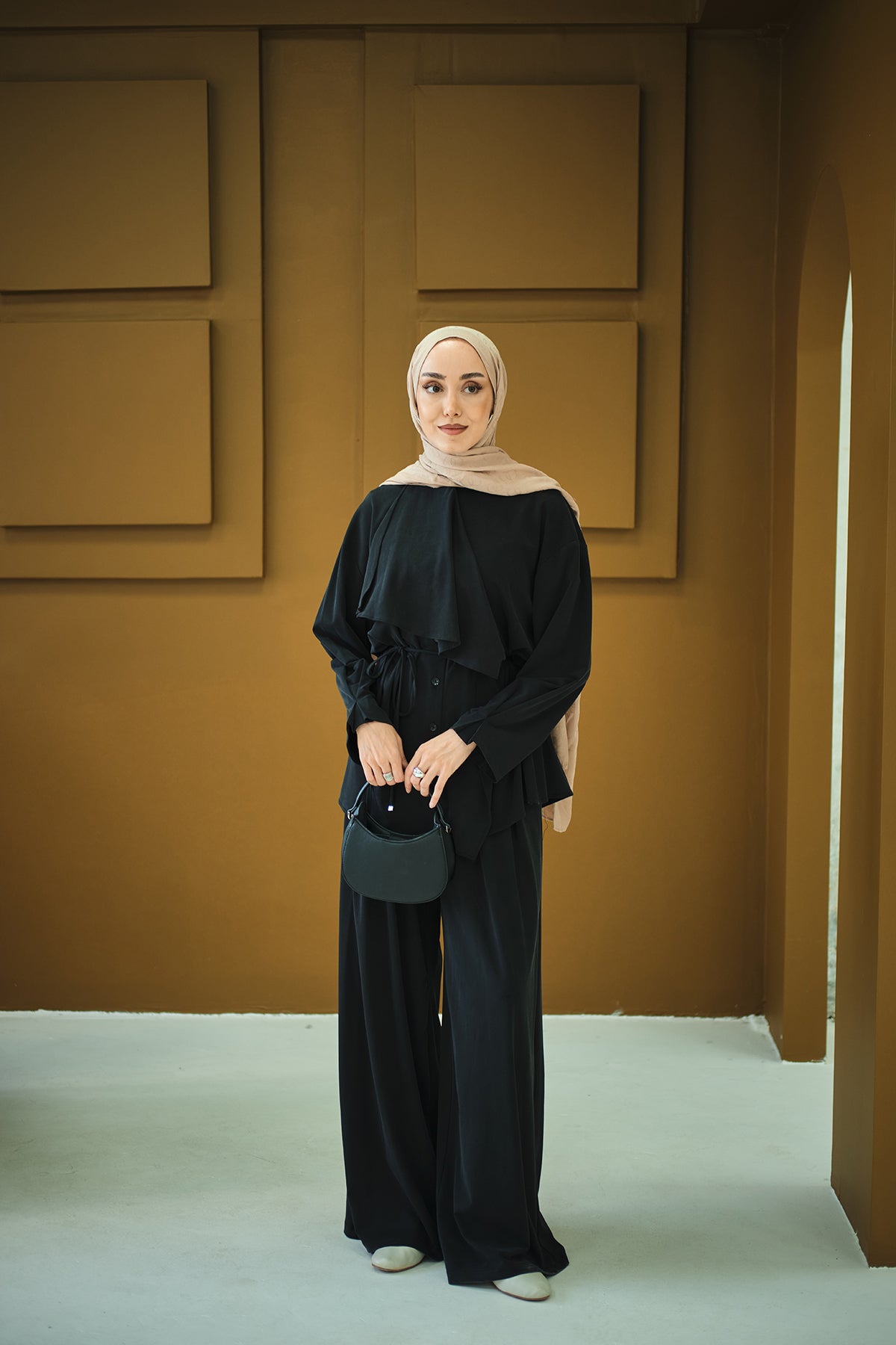 Ruffled Shoulder Ensemble - Black
