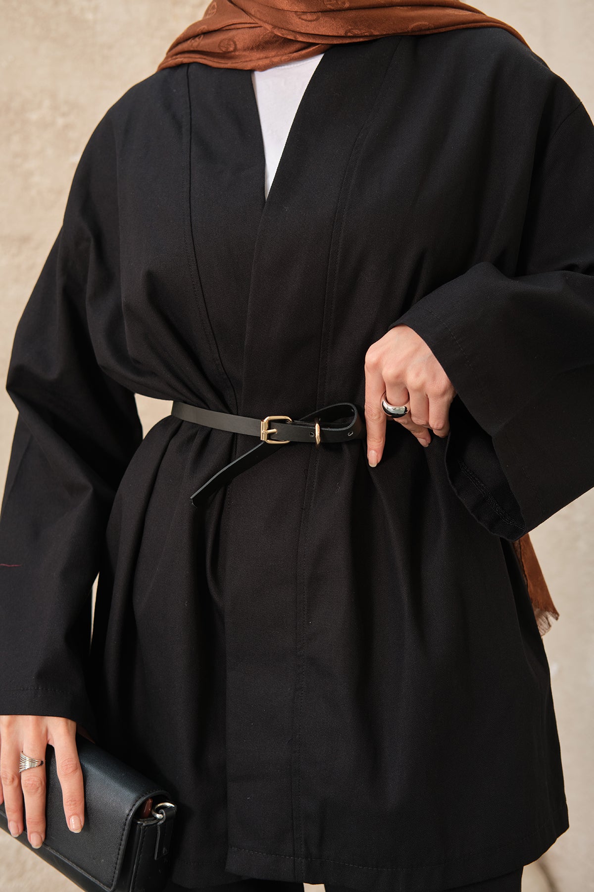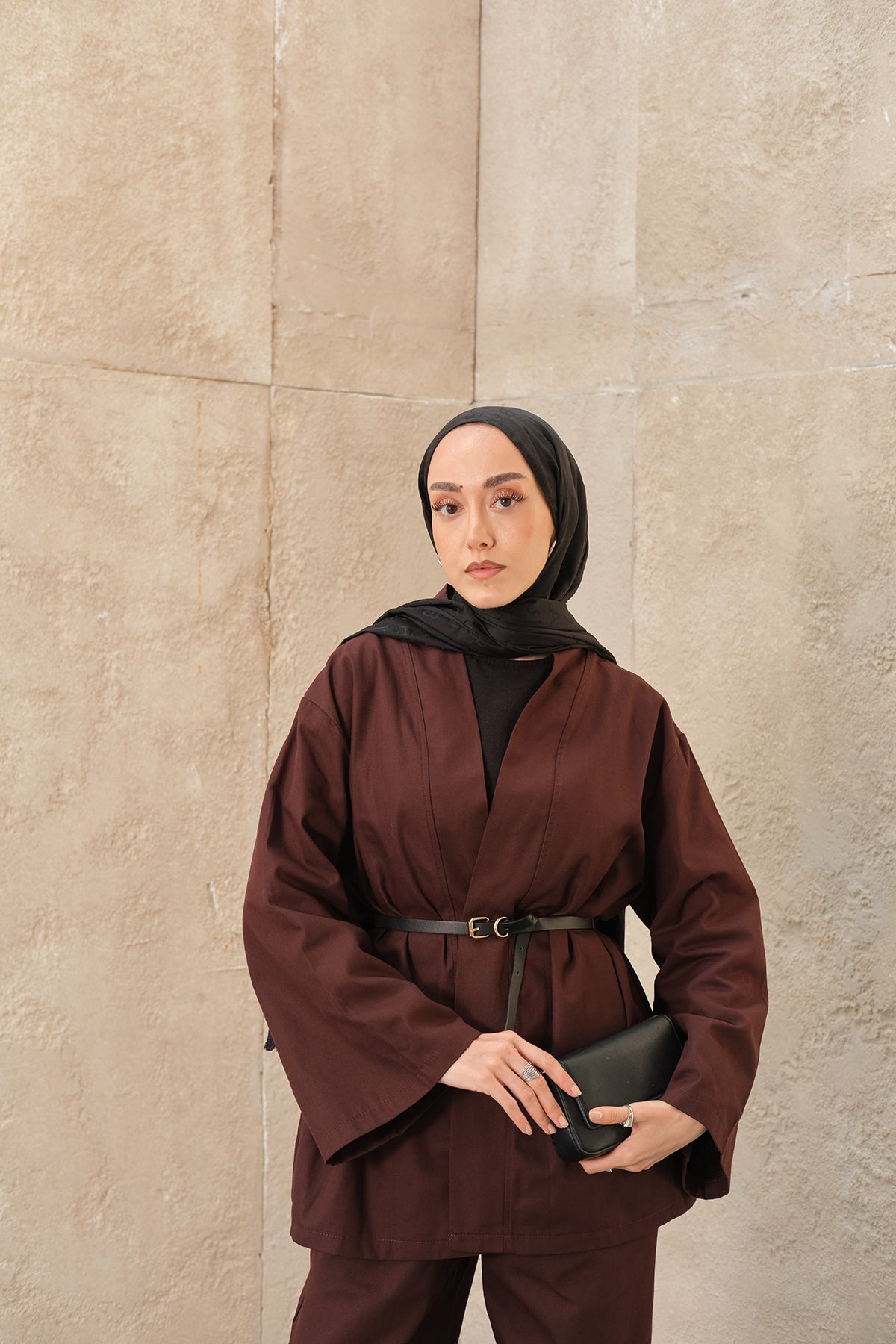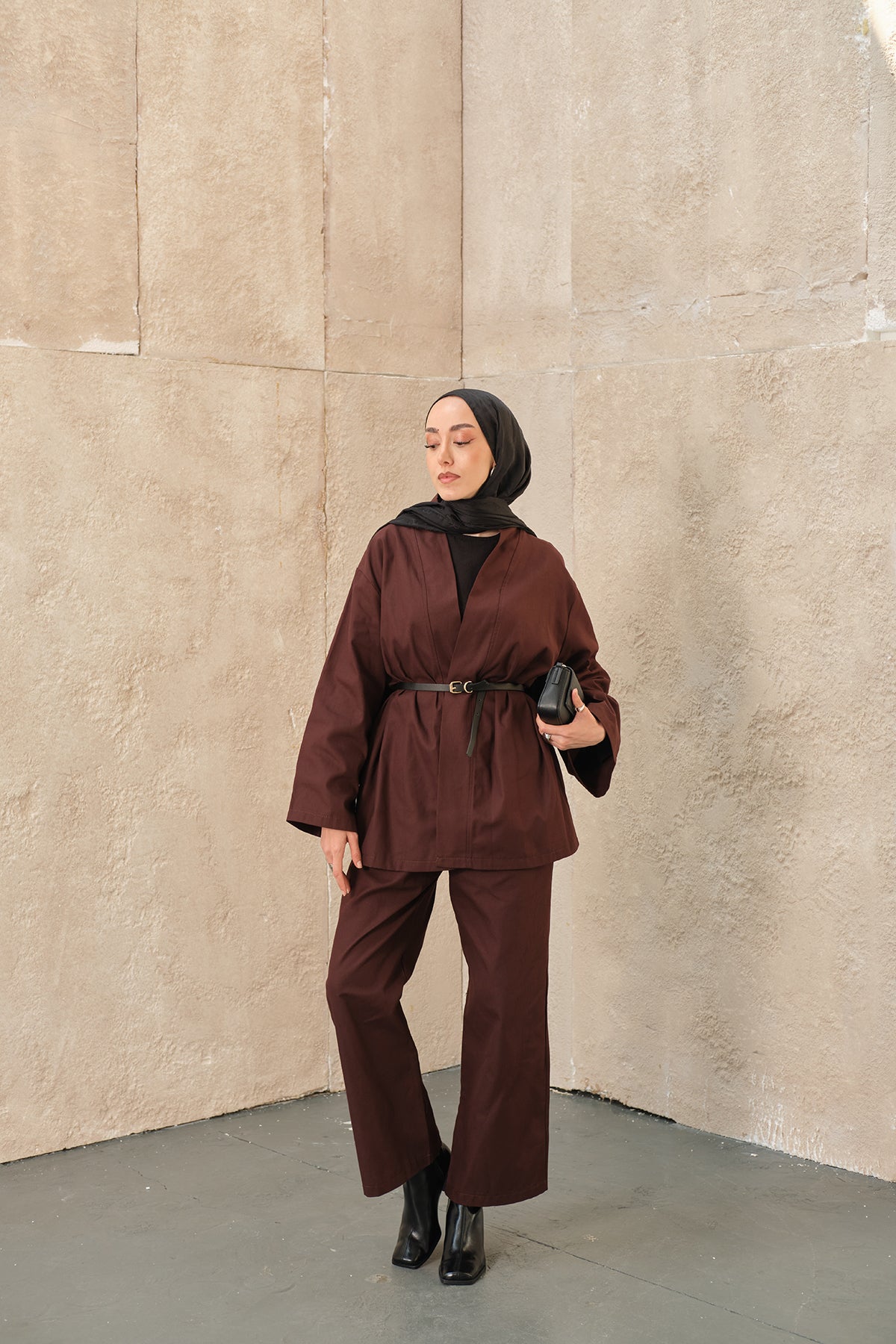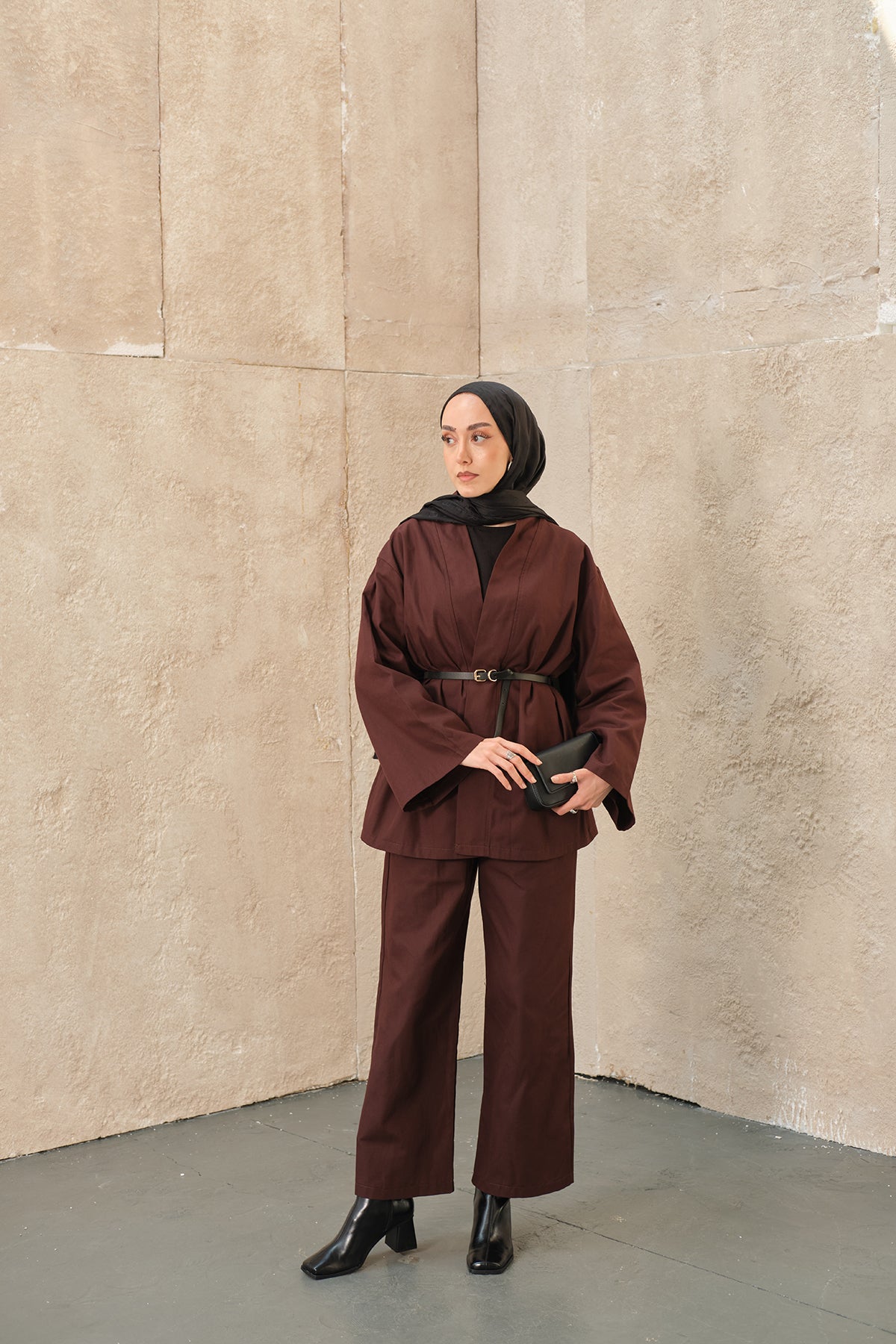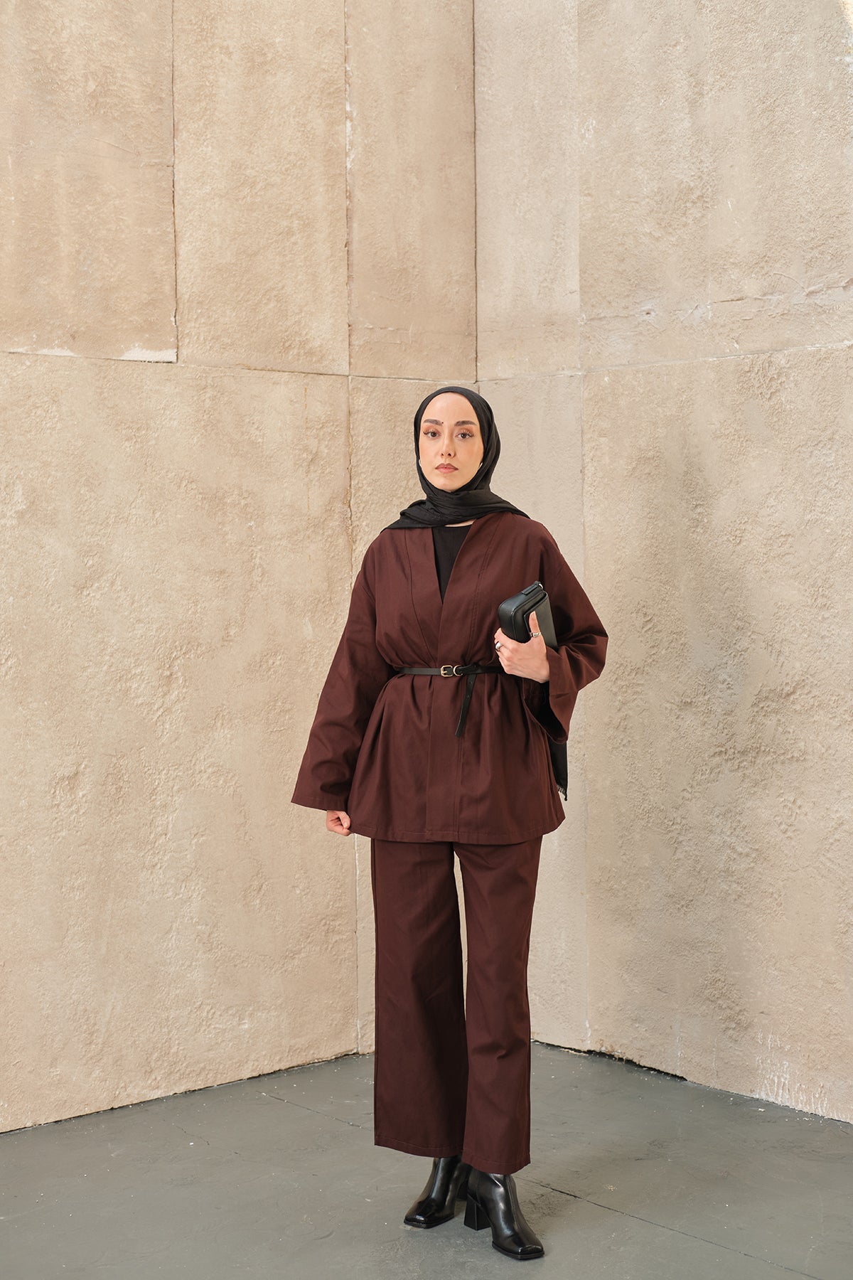 Leather Belted Kimono Set – Brown