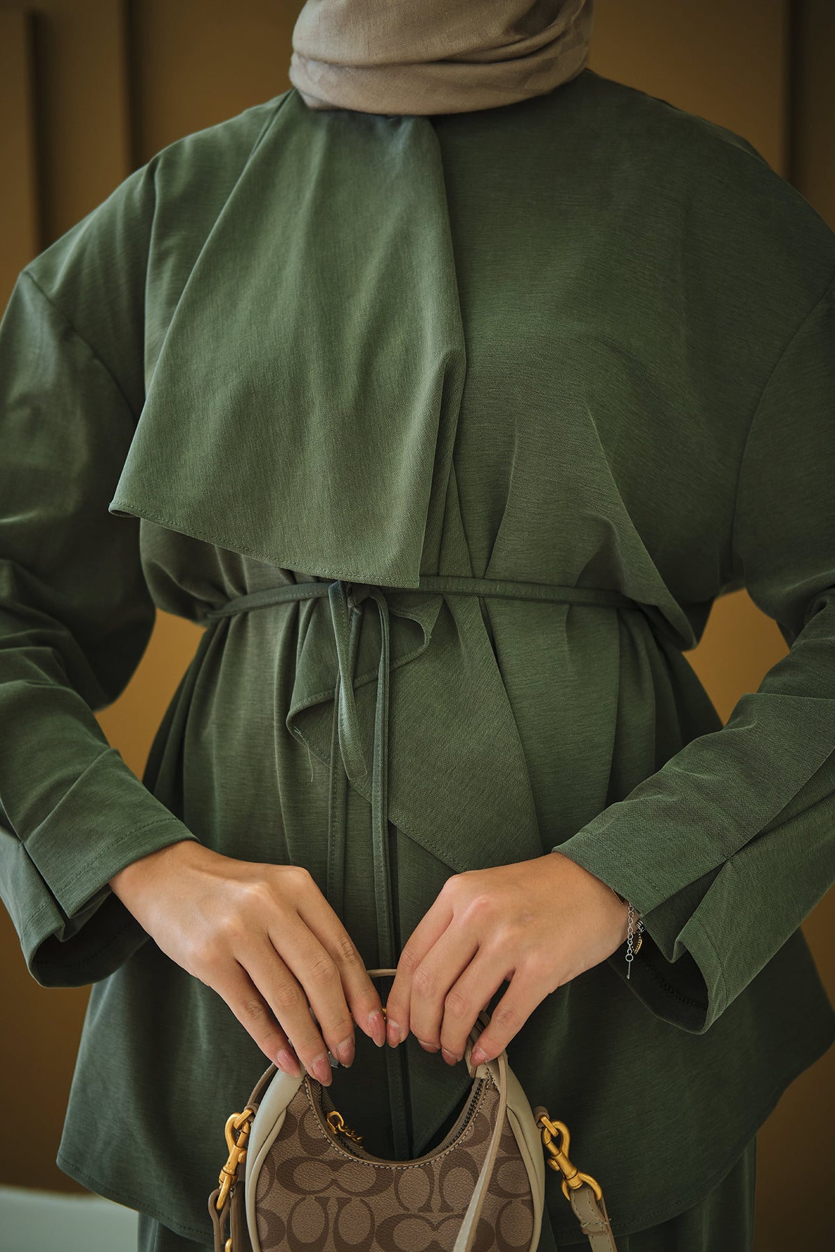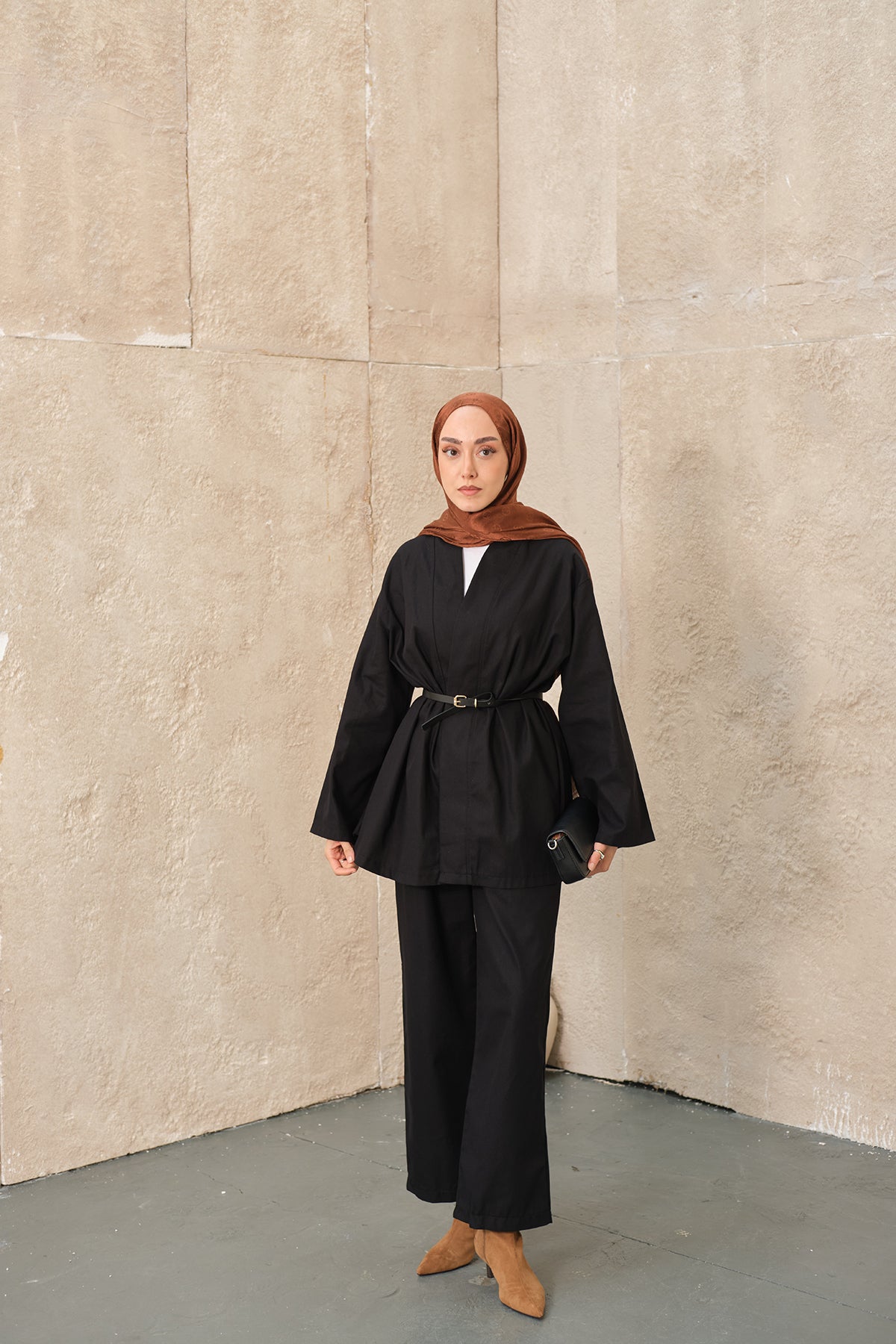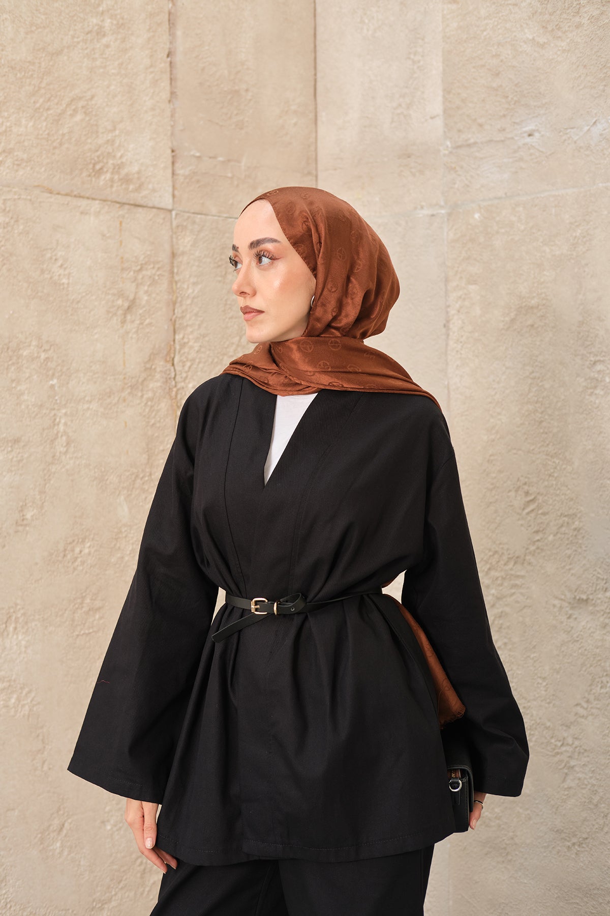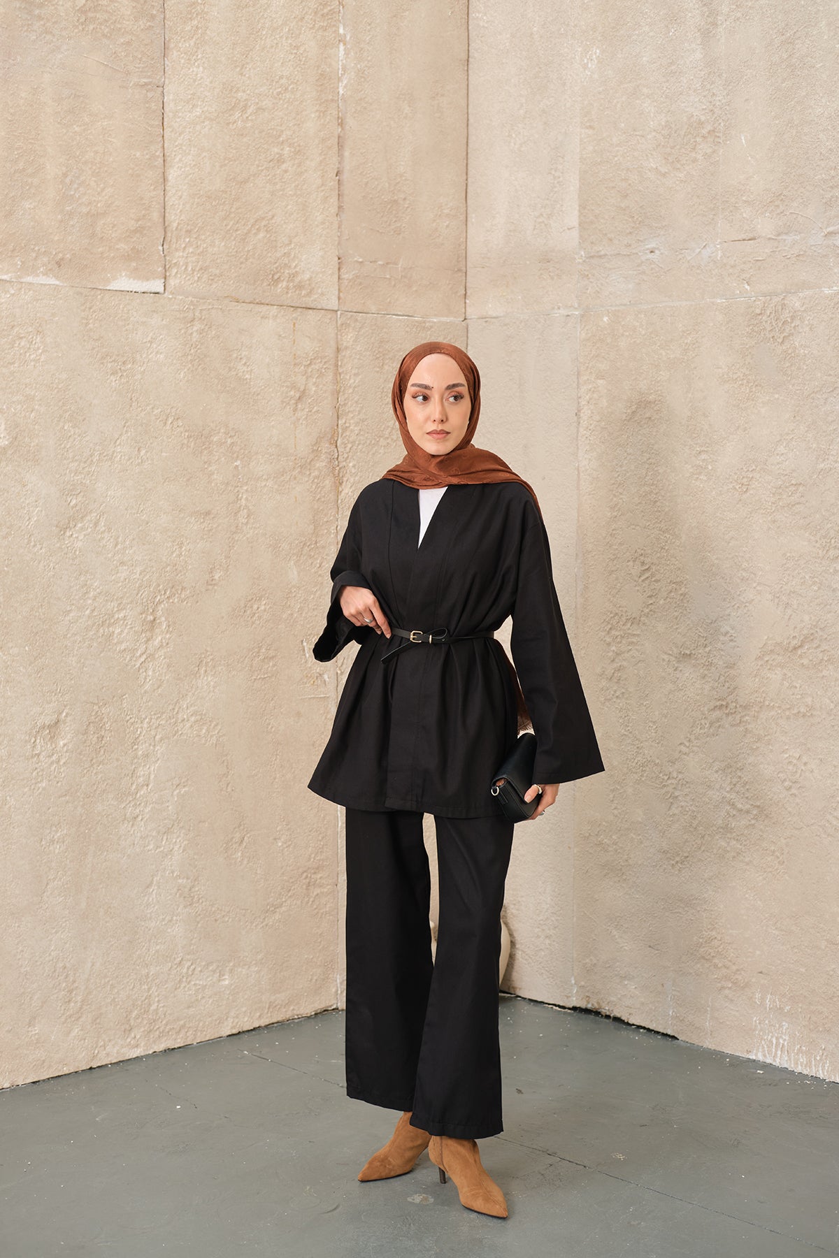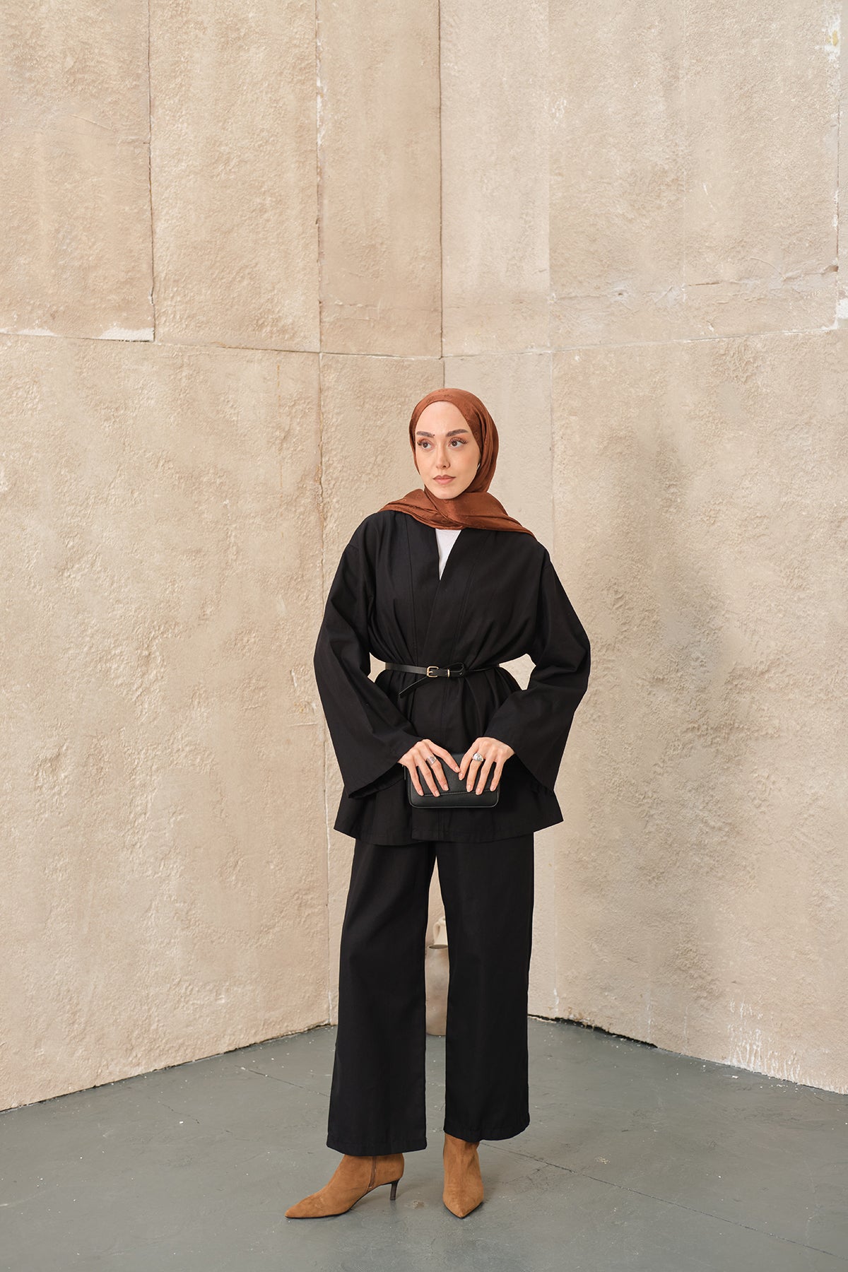 Leather Belted Kimono Set – Brown