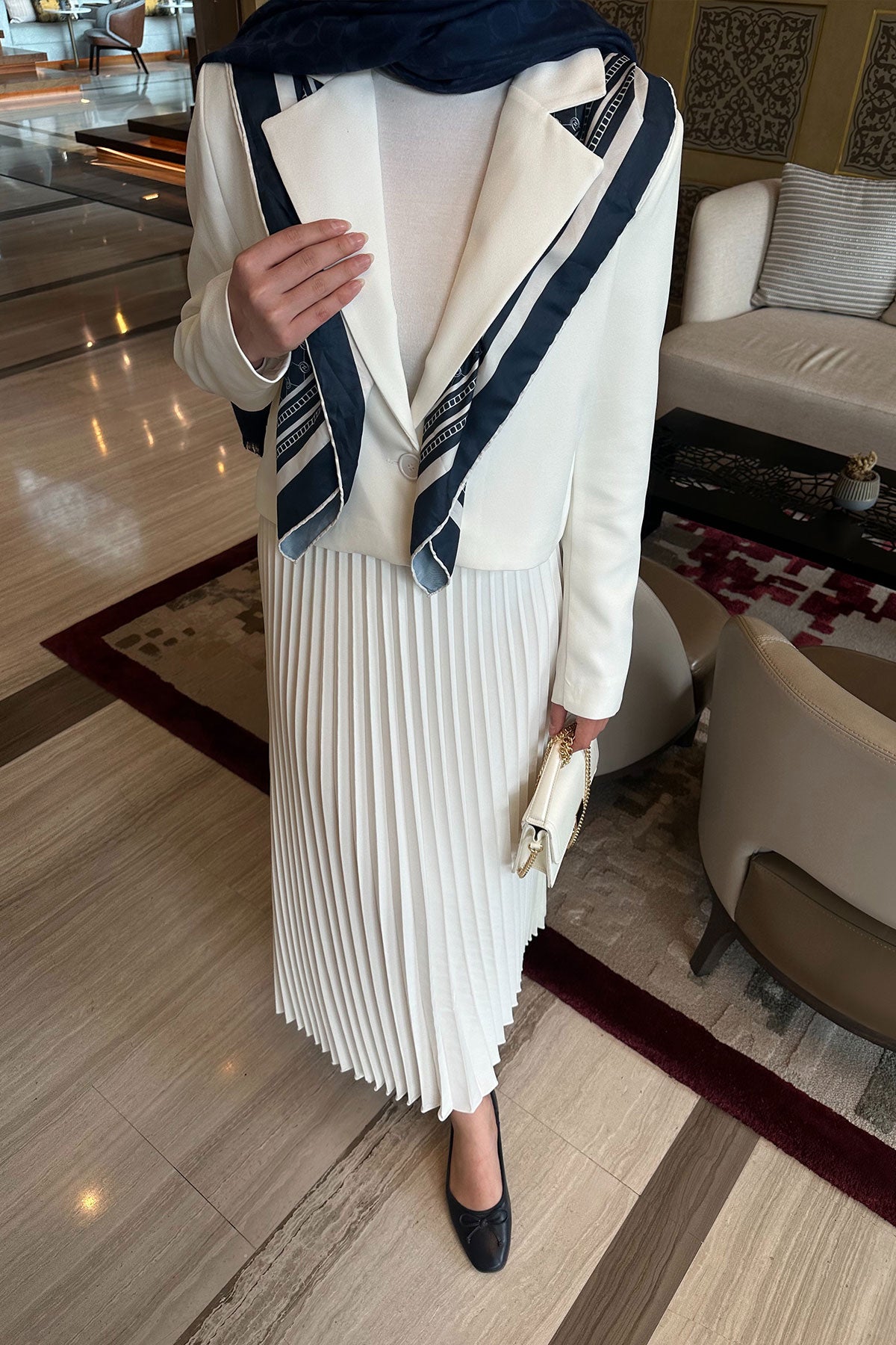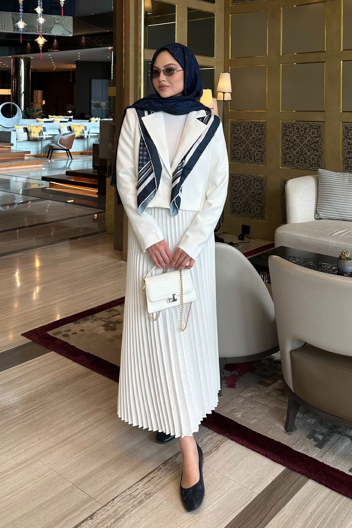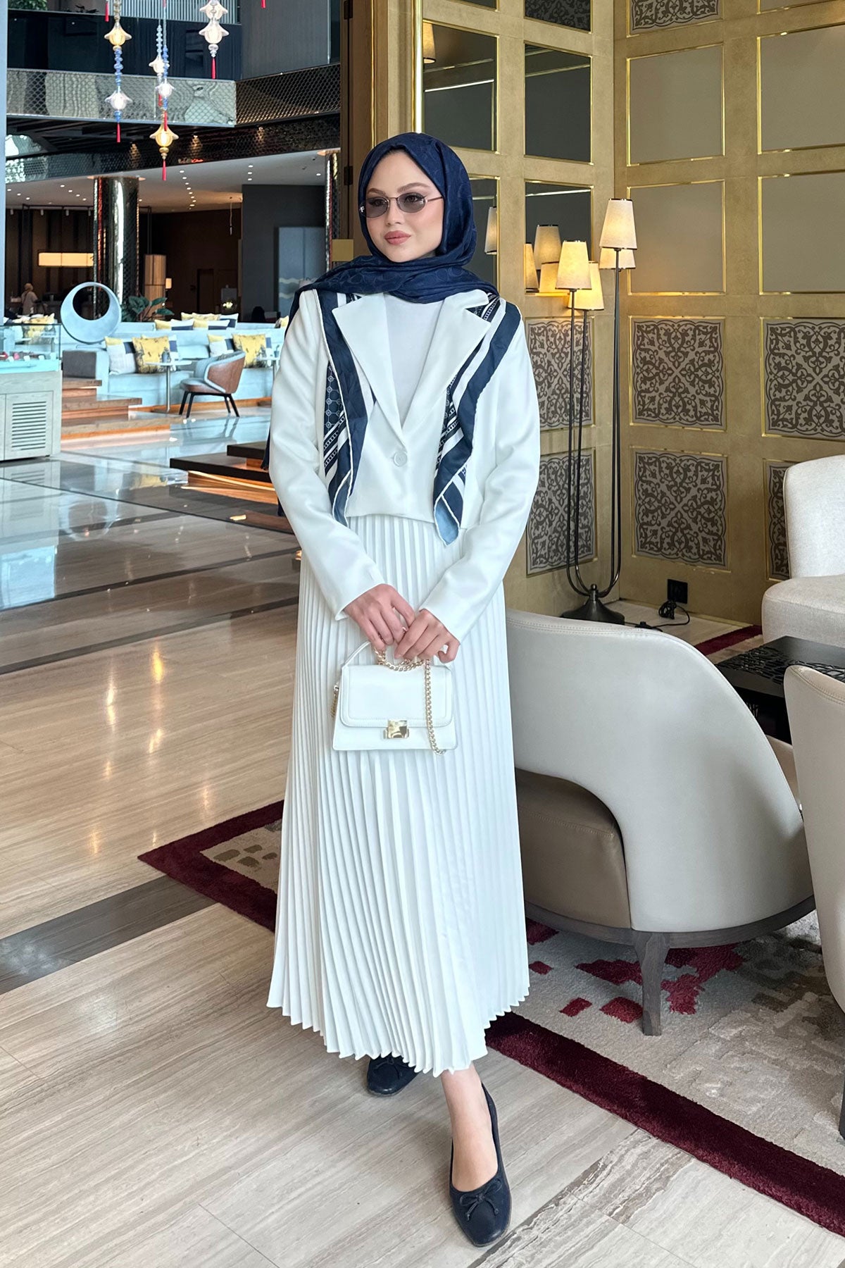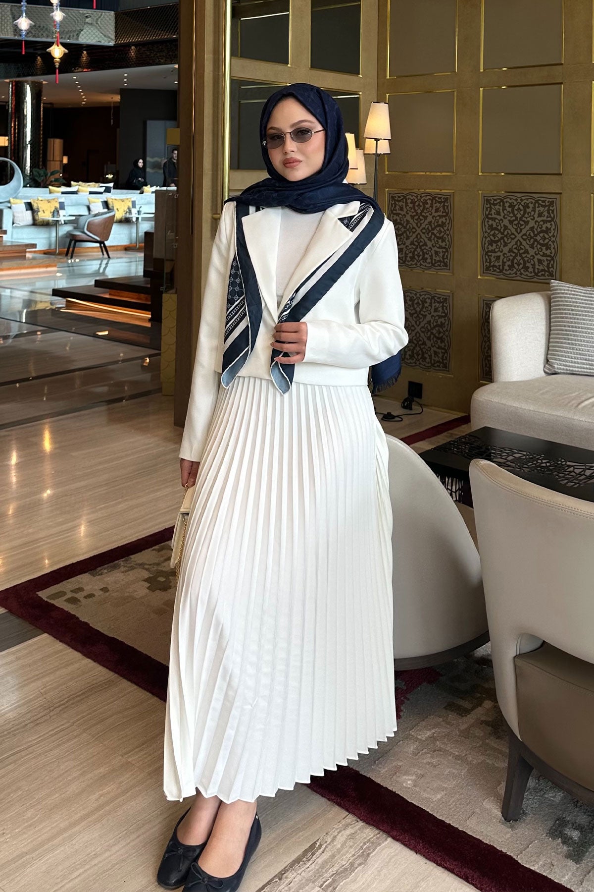 Pleated Skirt Jacket Set White