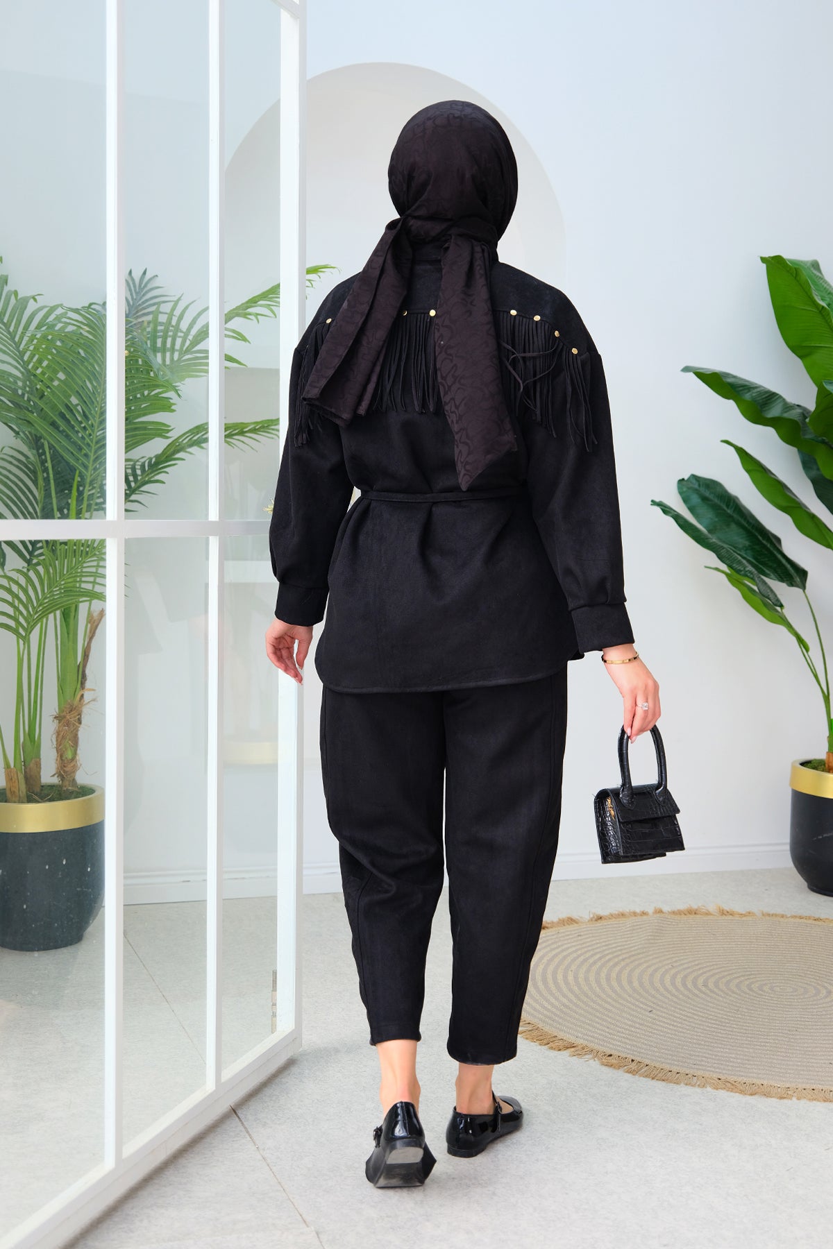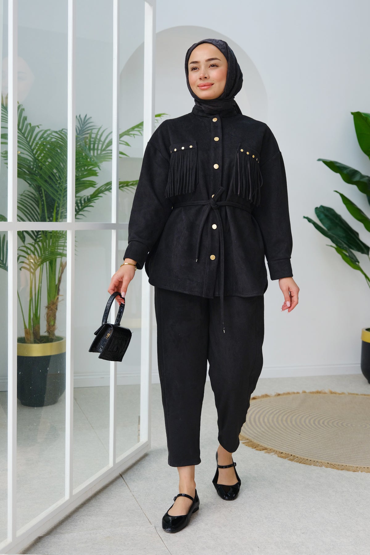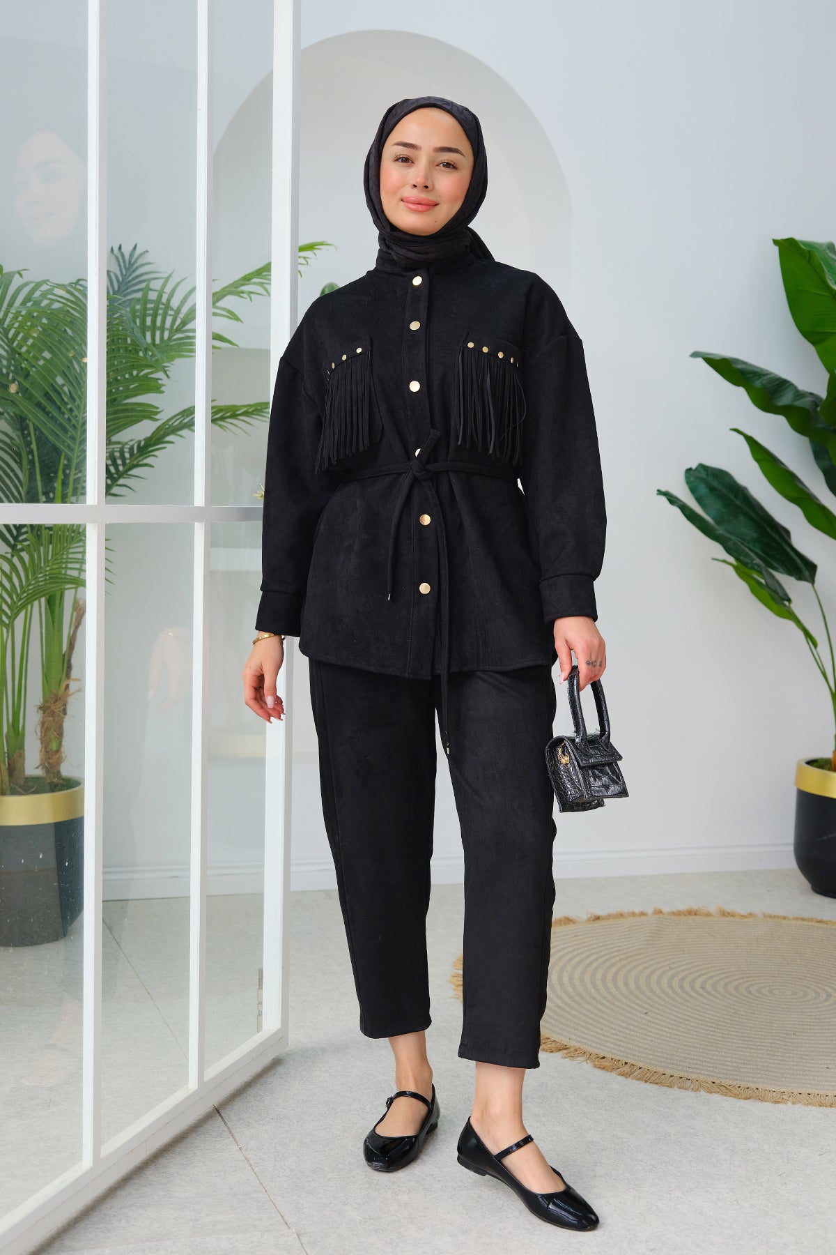 Fringe Detail Suede Set black