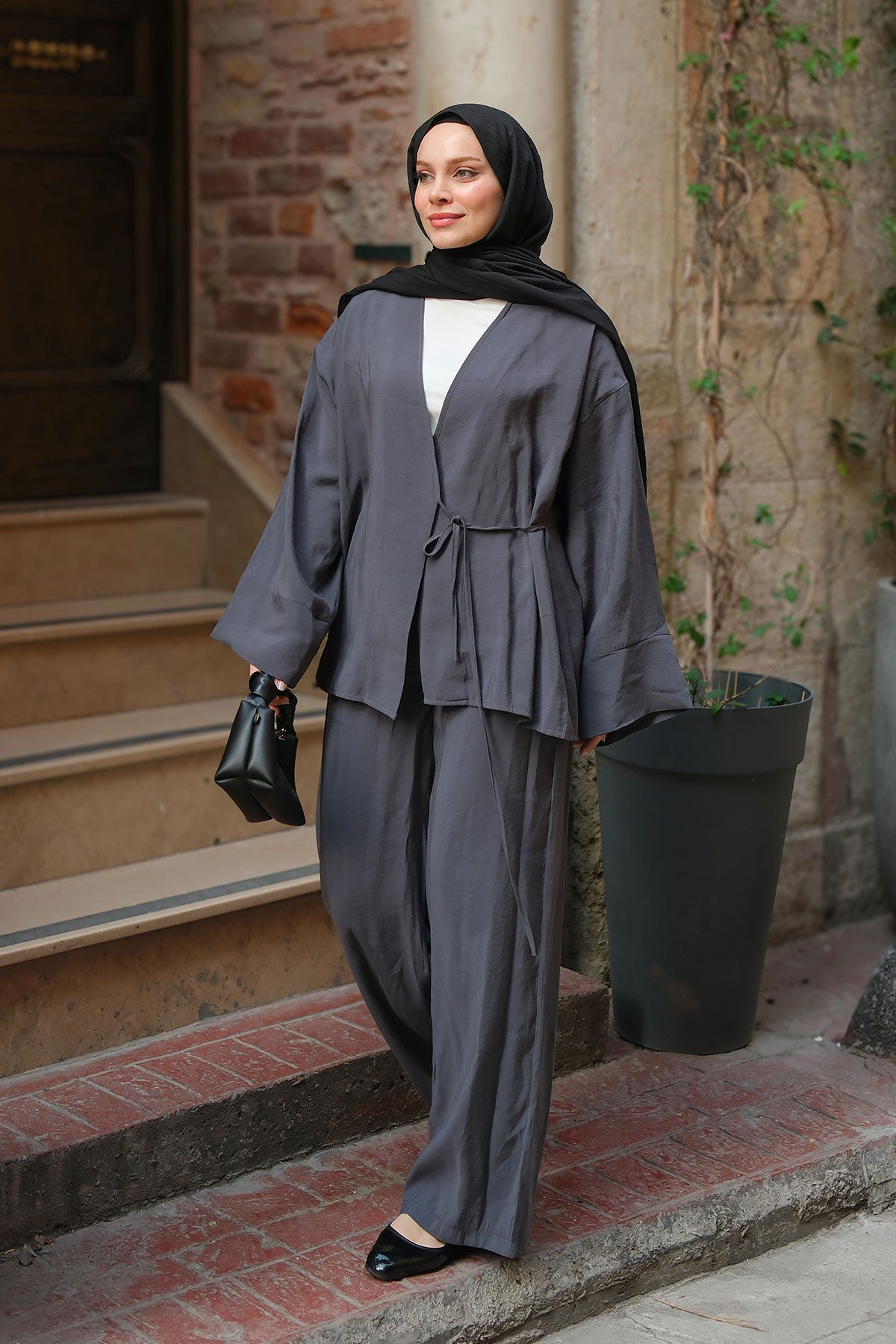 Side Connected Two Piece Kimono Set Anthracite