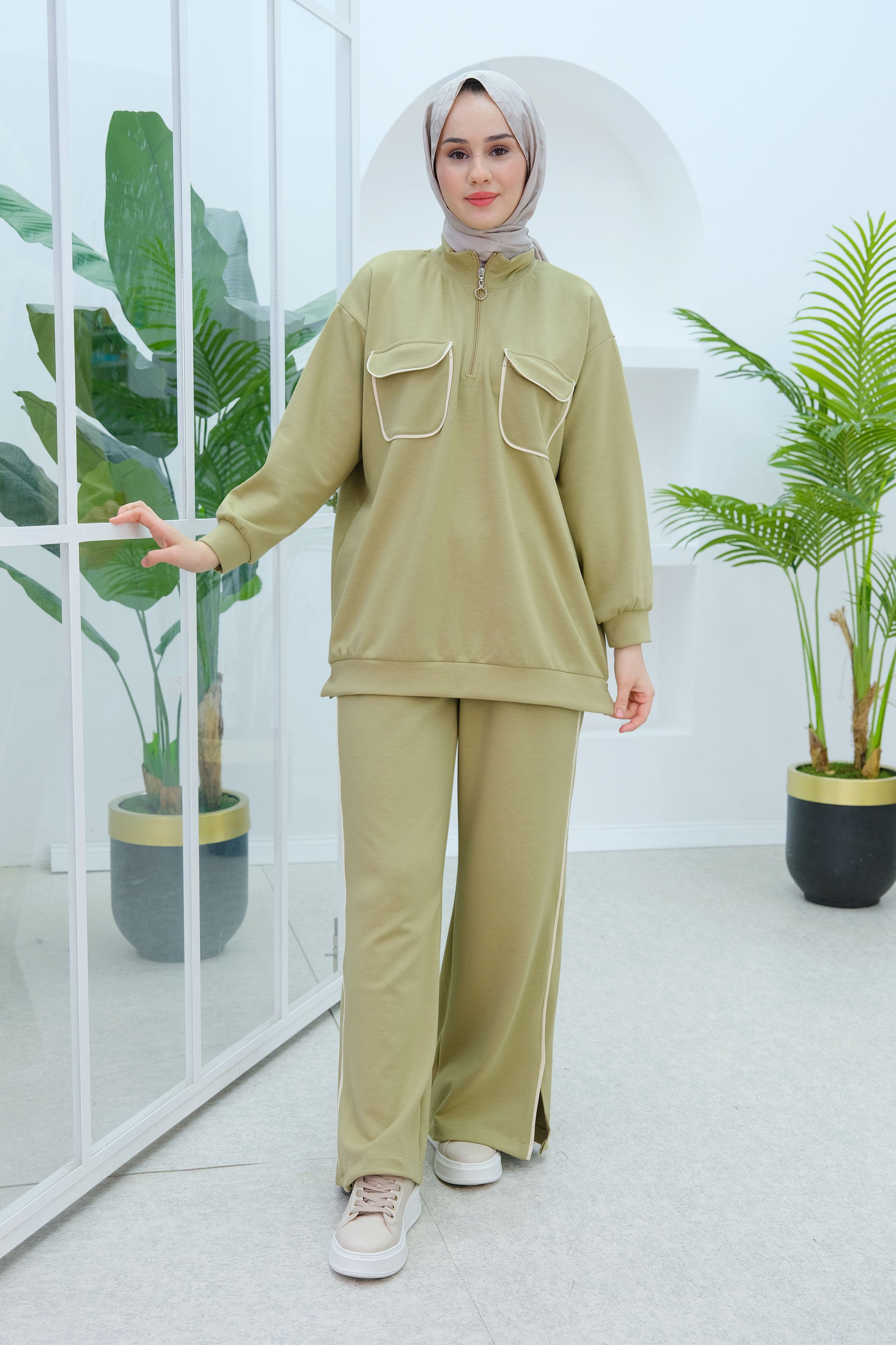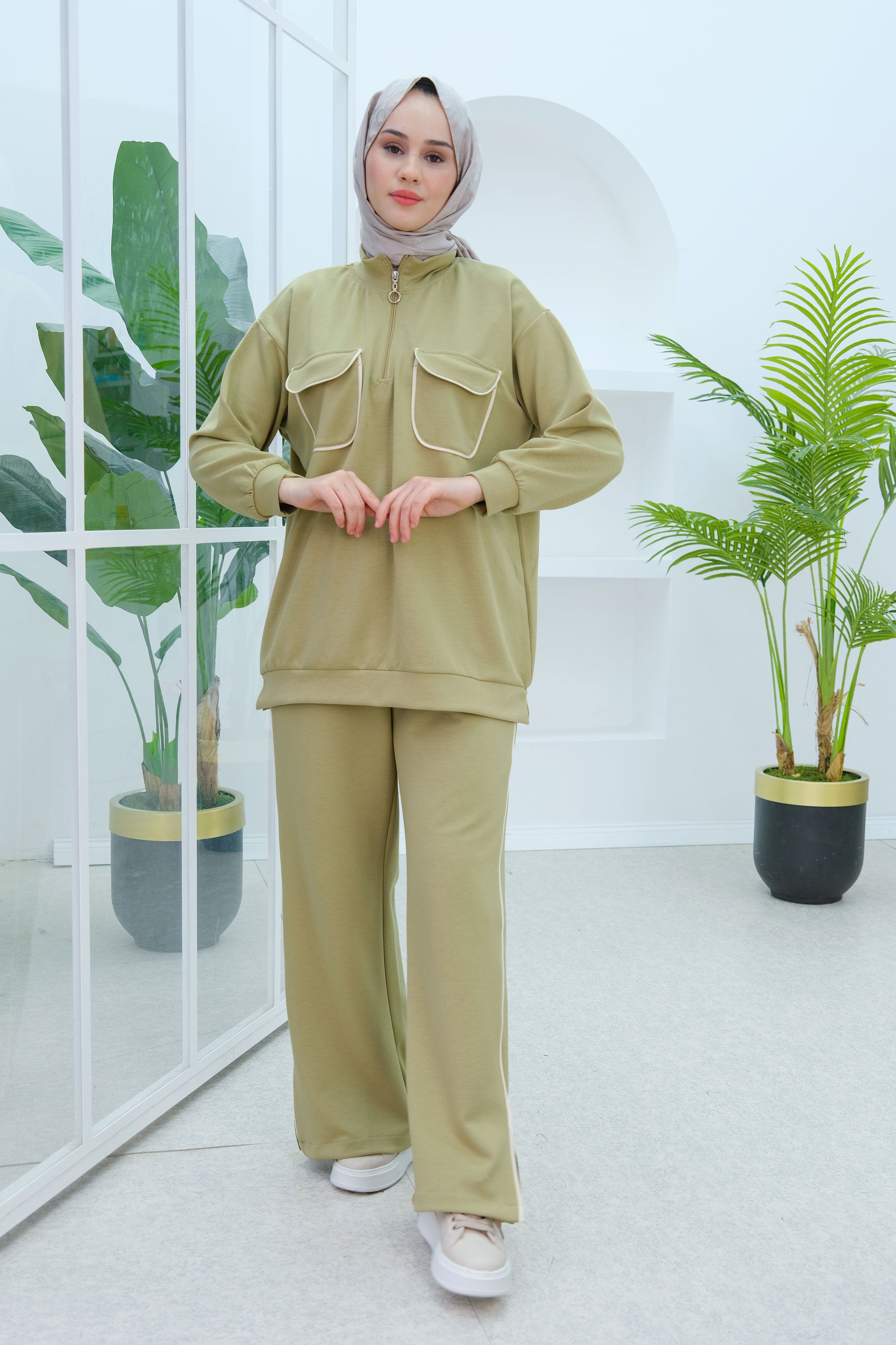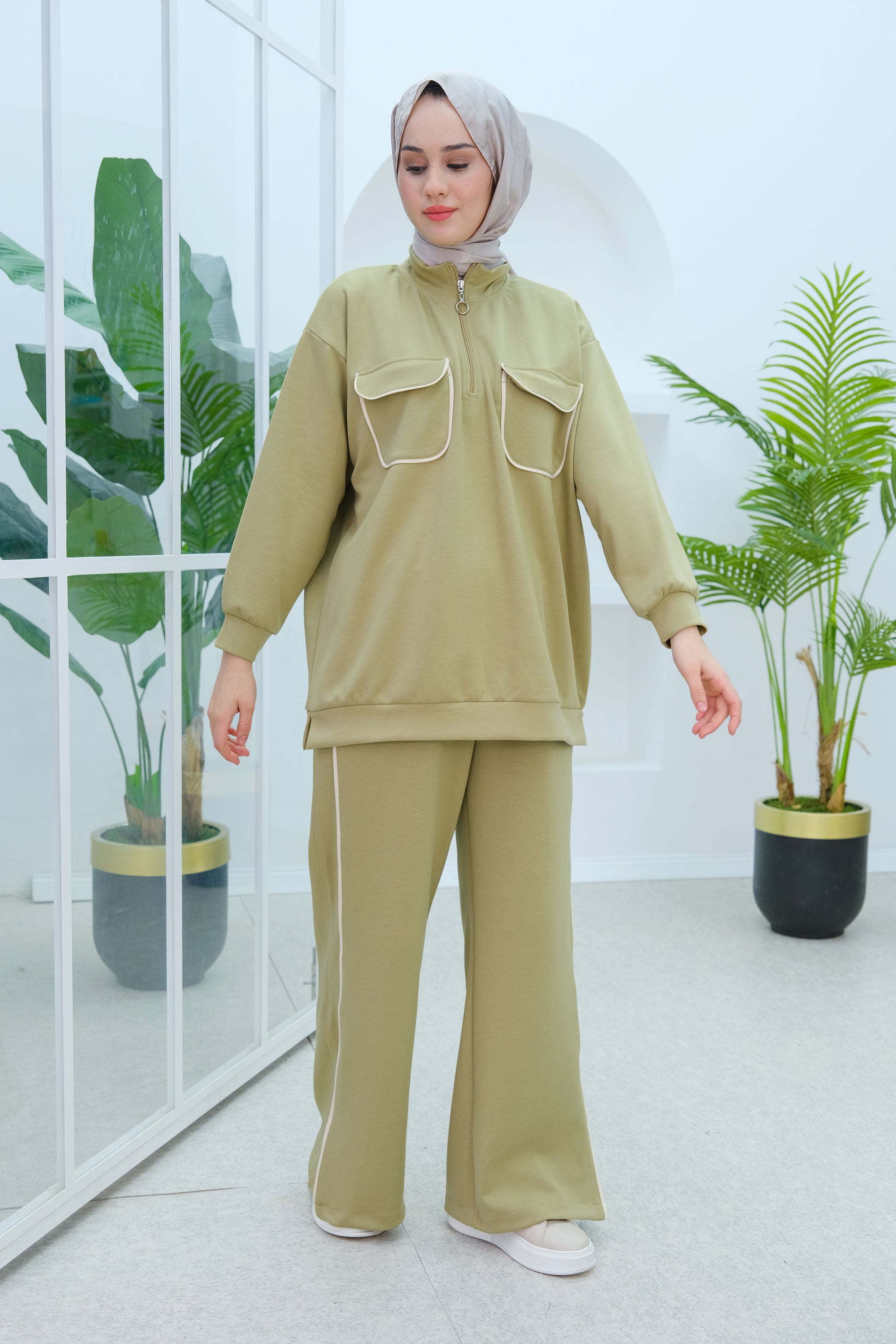Green Two-Piece Set with Double Pocket Detail on the Front