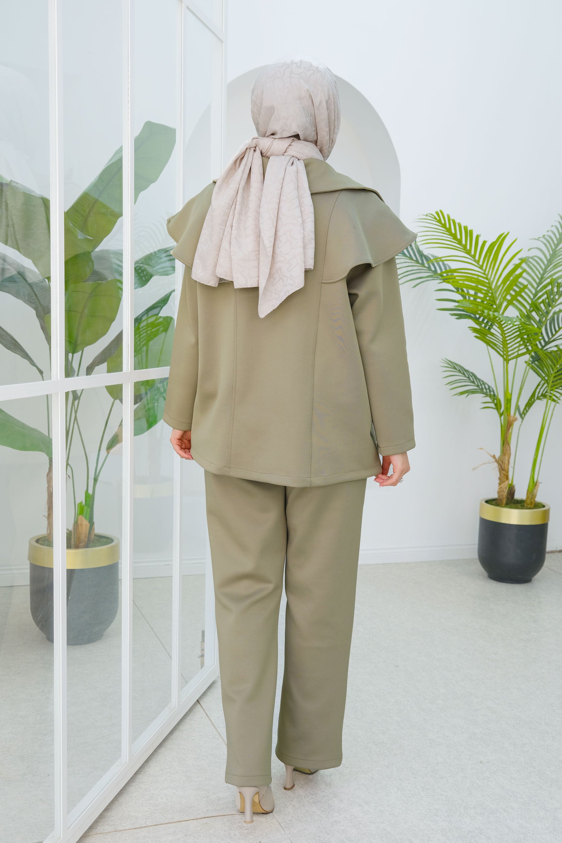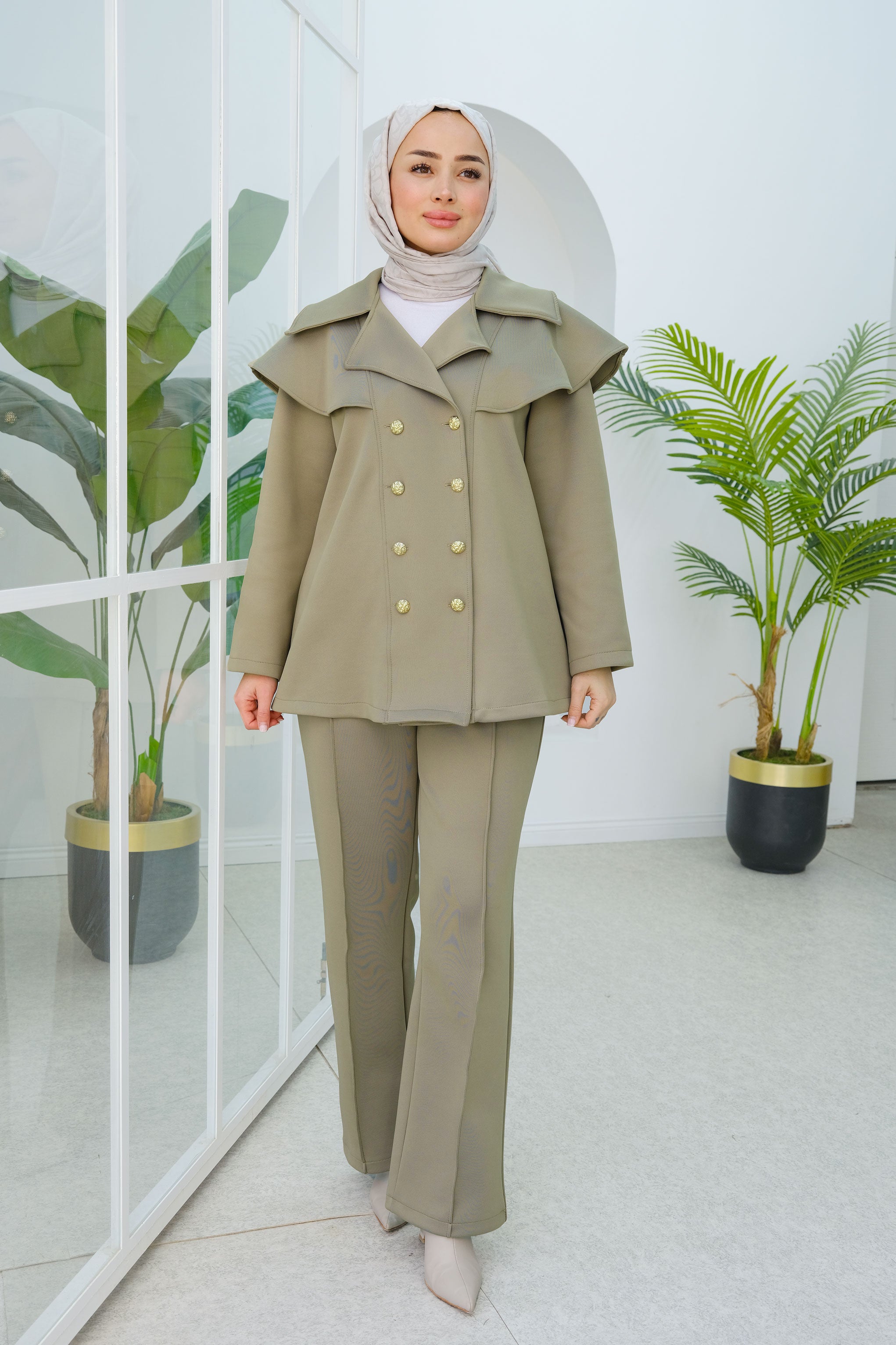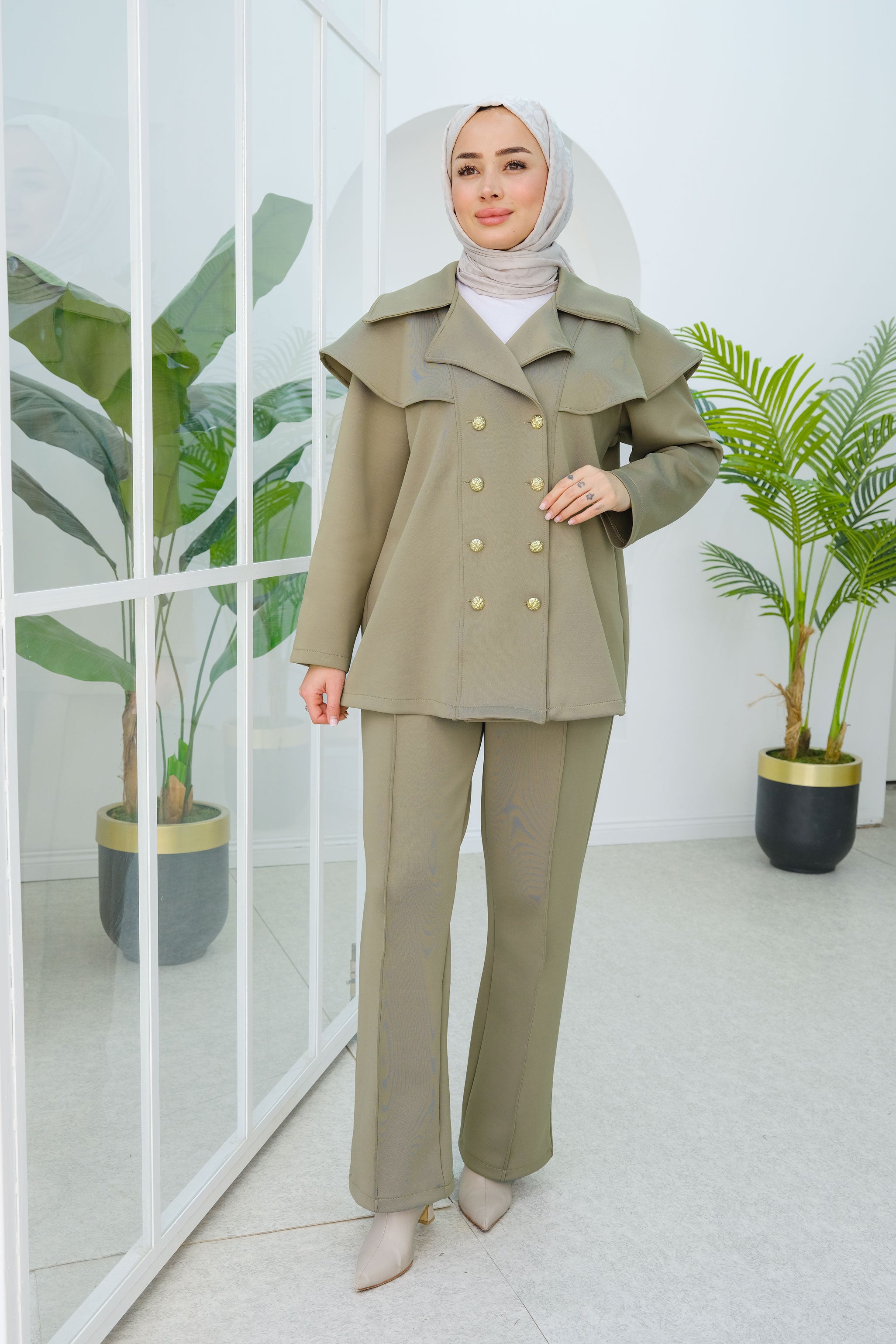 Green Two-Piece Set with Double Pocket Detail on the Front