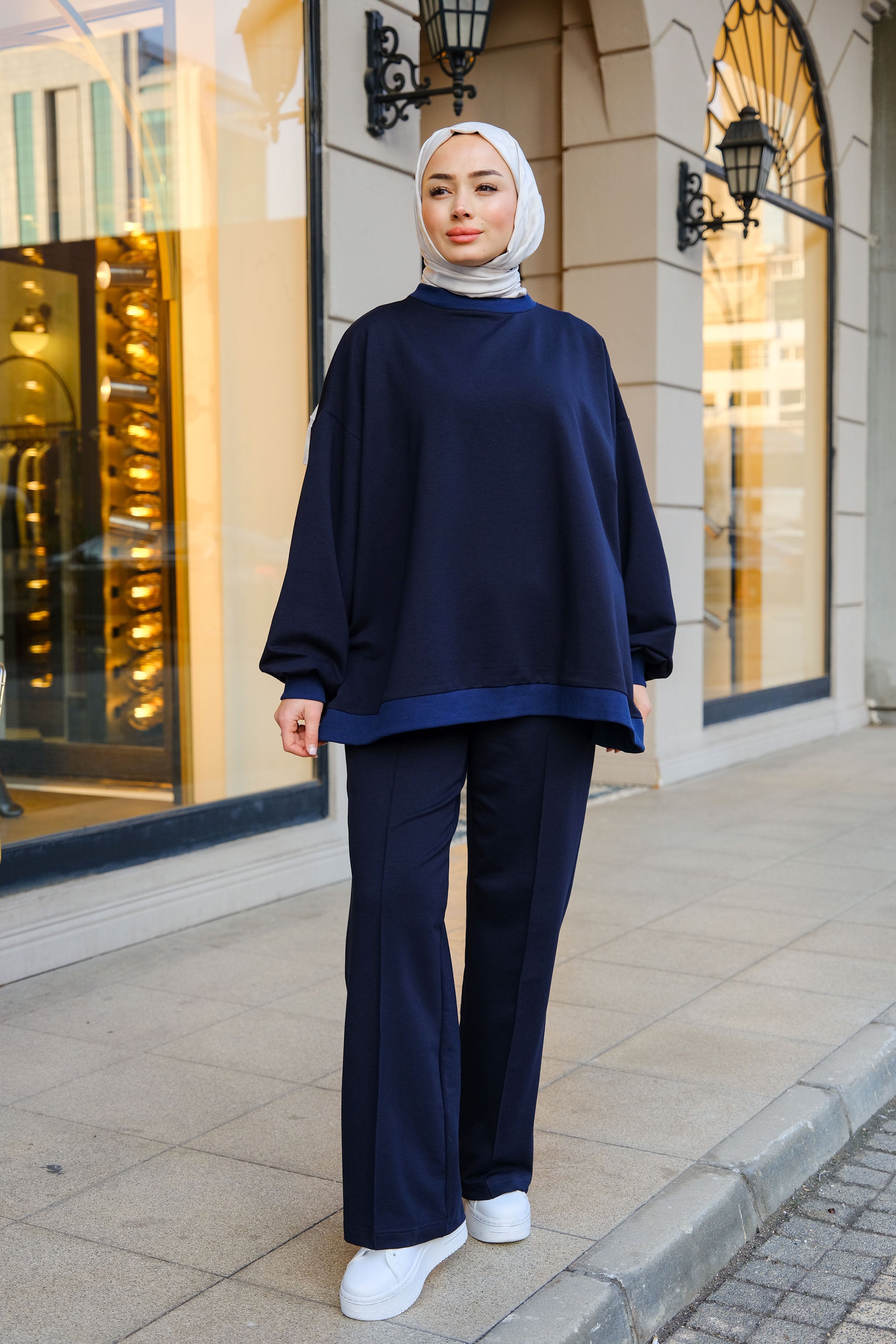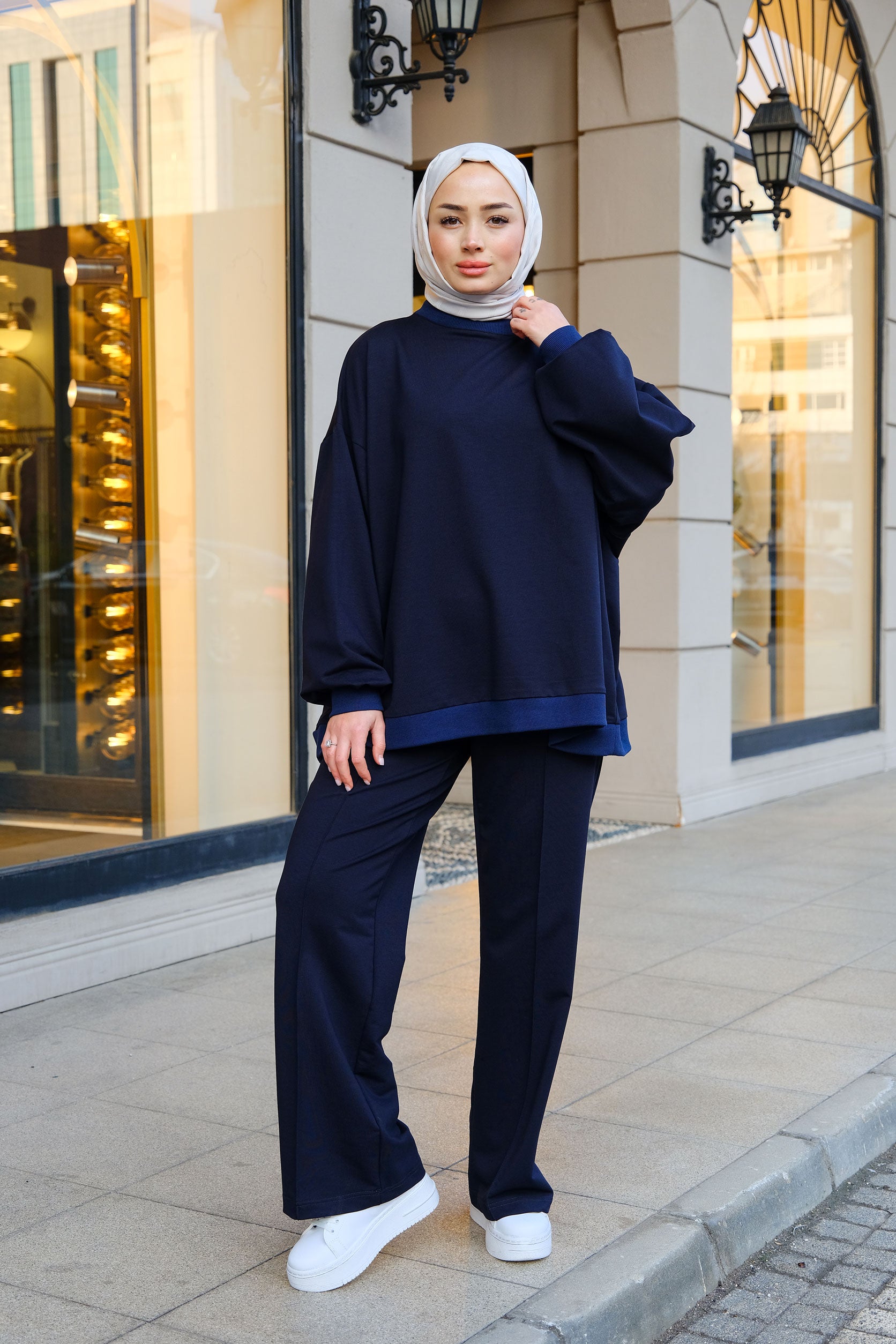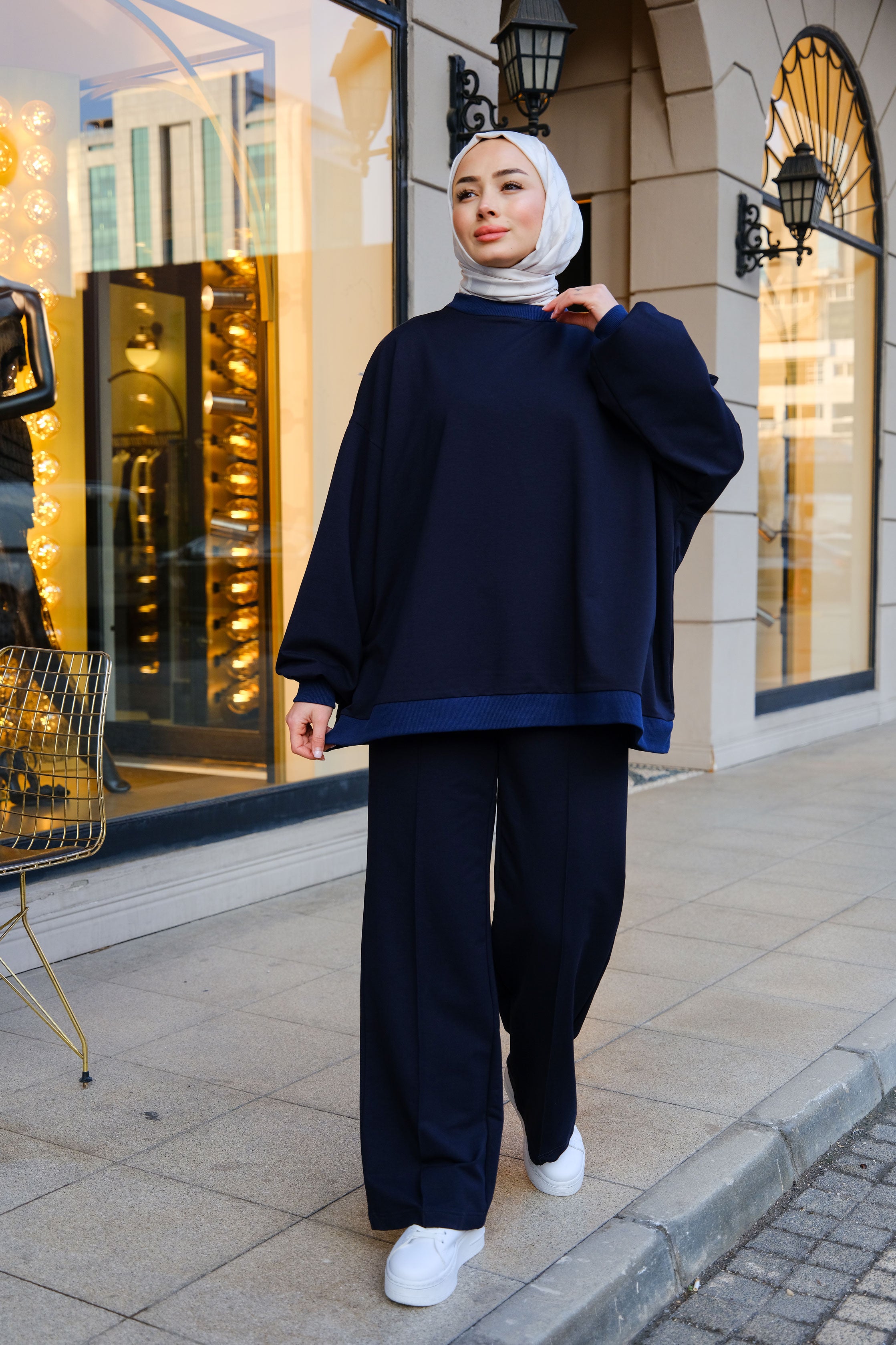 Ton-sur-Ton Ribbed Detail Oversized Two-Piece Set Navy Blue