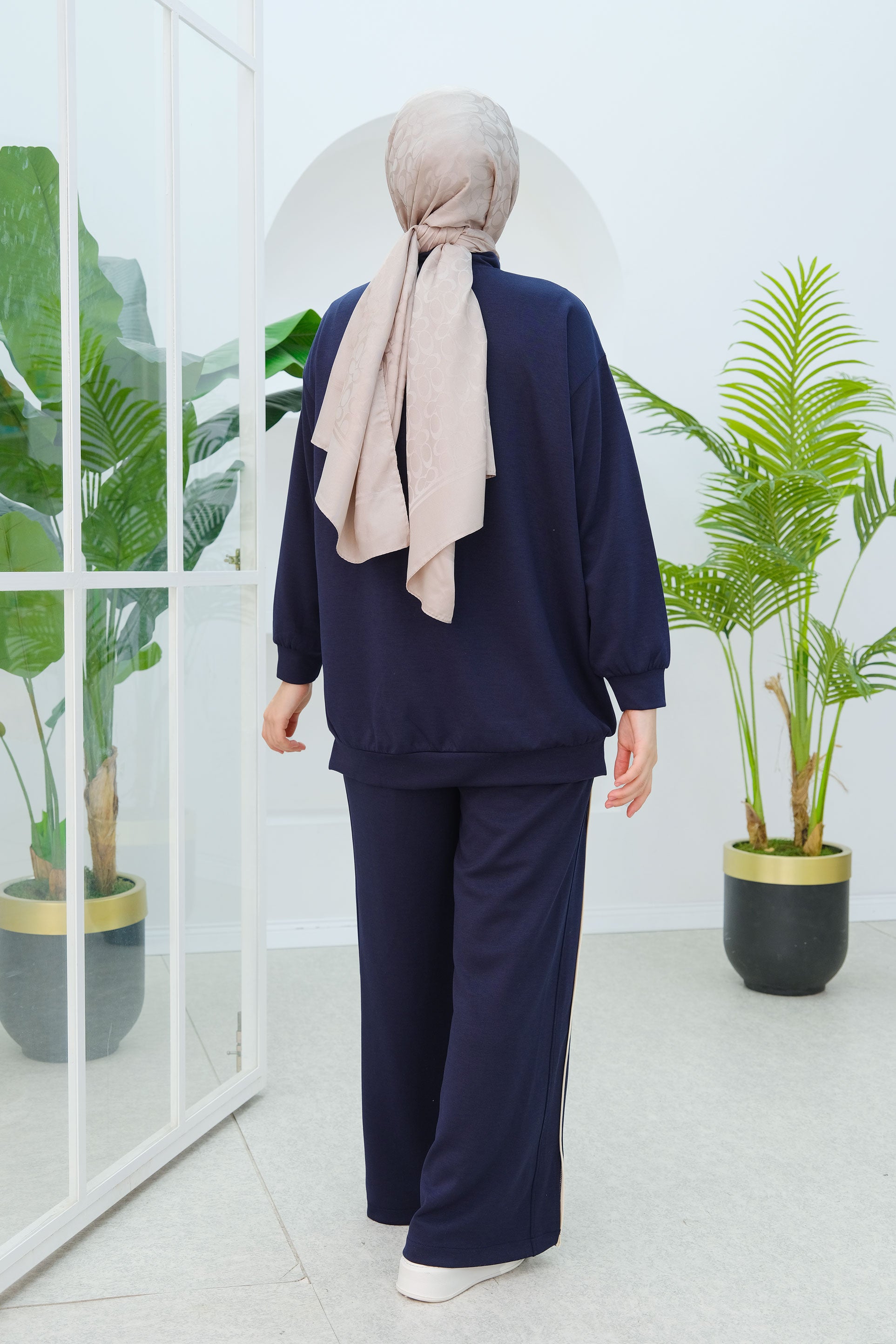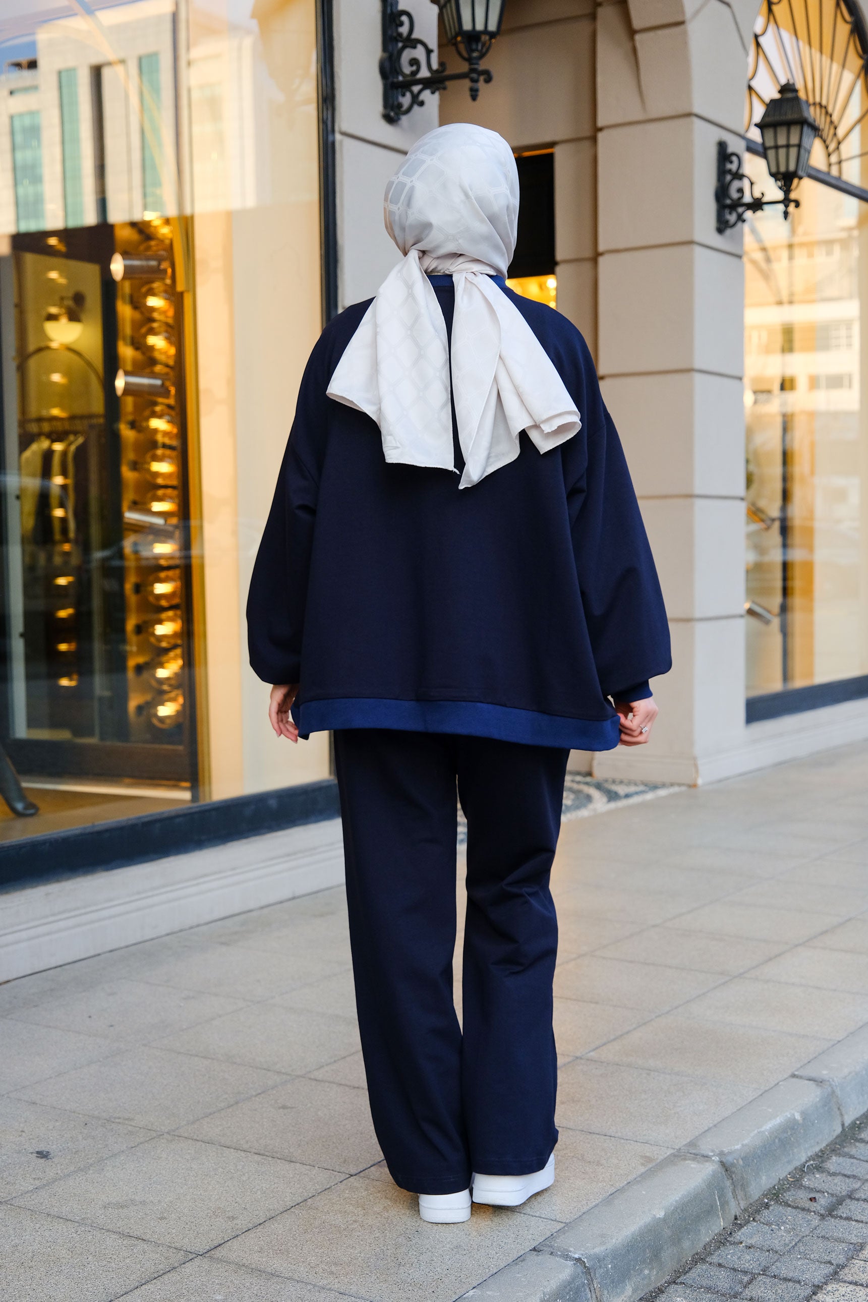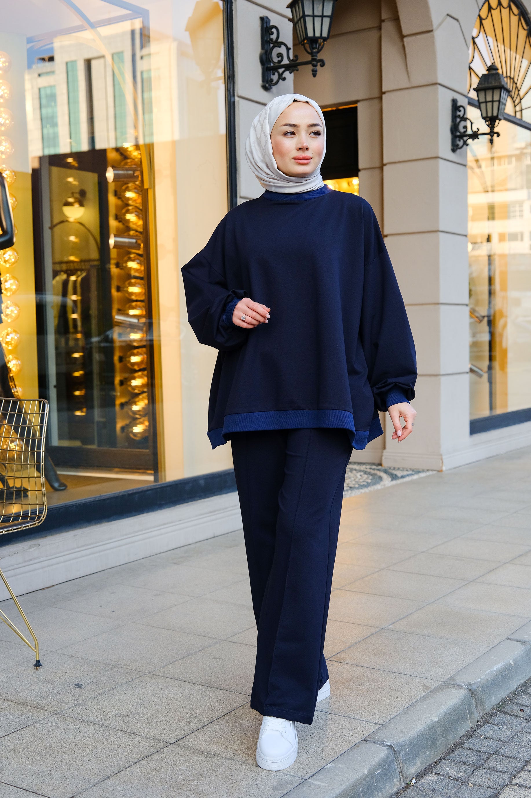 Ton-sur-Ton Ribbed Detail Oversized Two-Piece Set Navy Blue