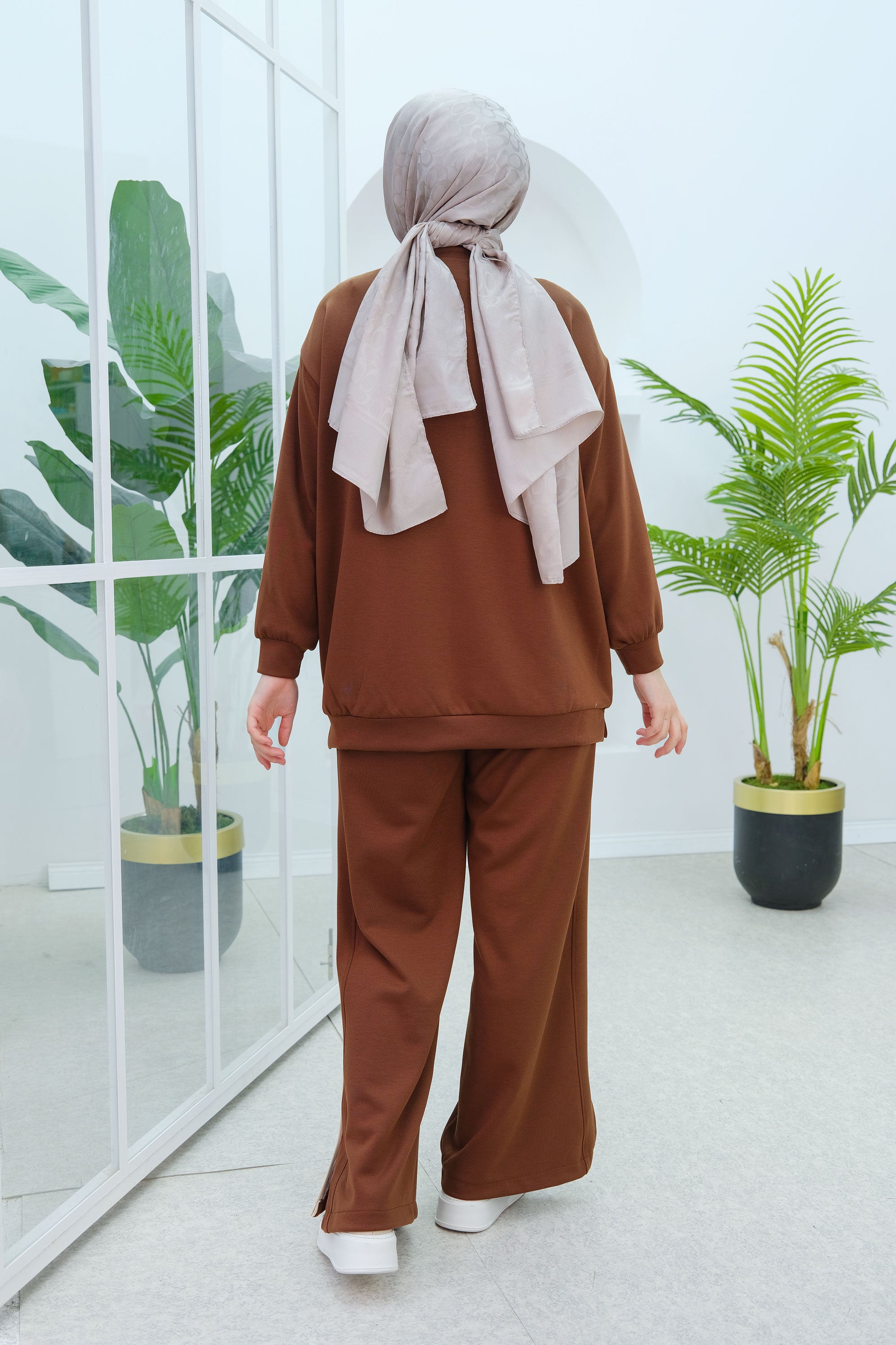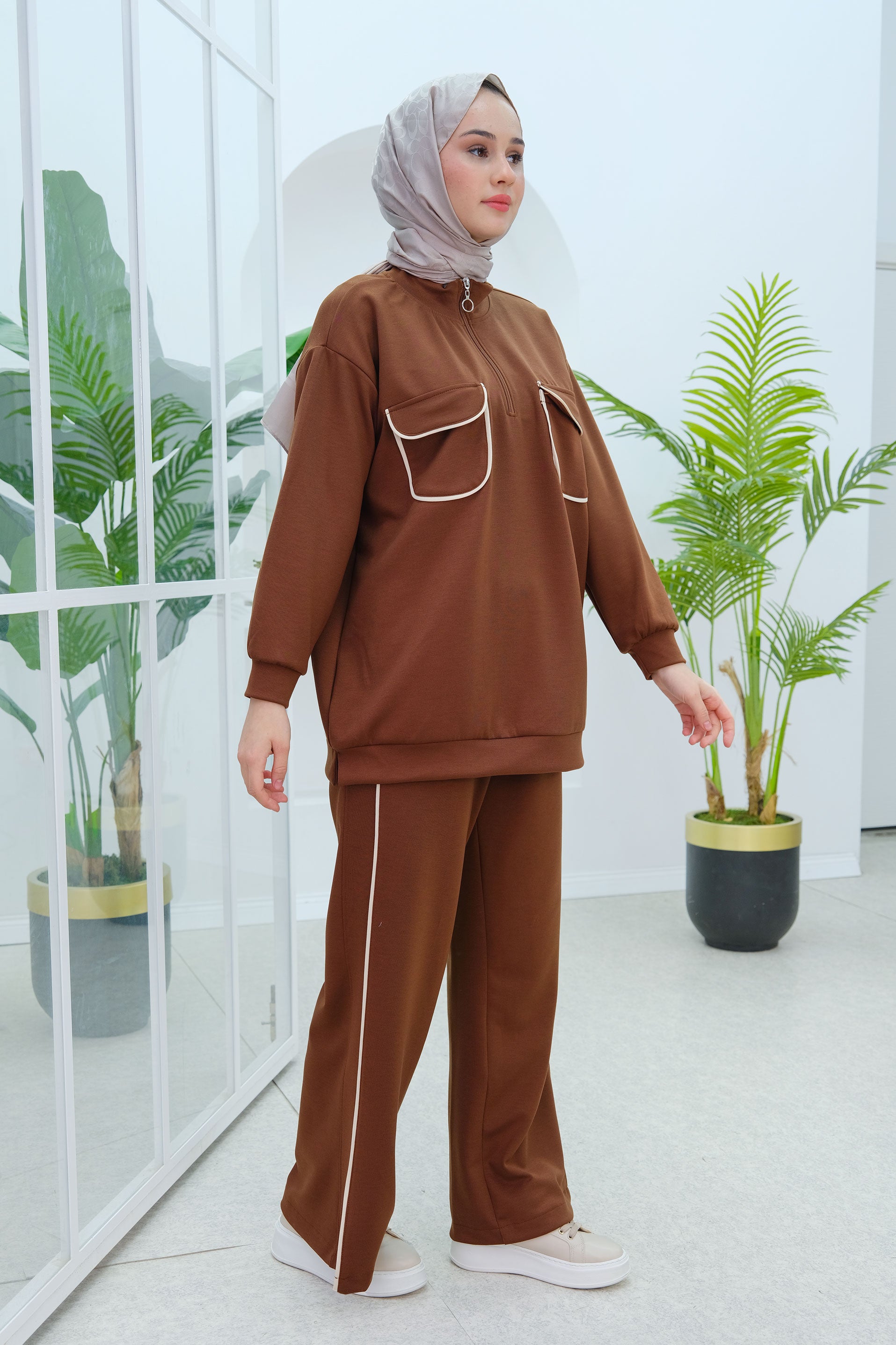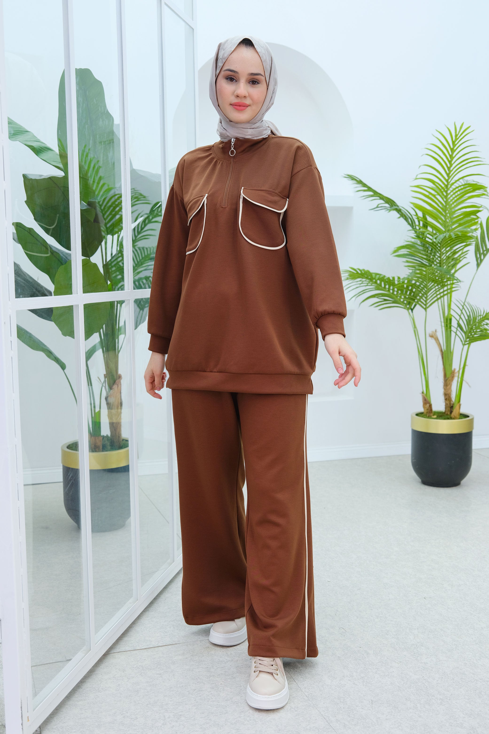 Brown Two-Piece Set with Double Pocket Detail on the Front