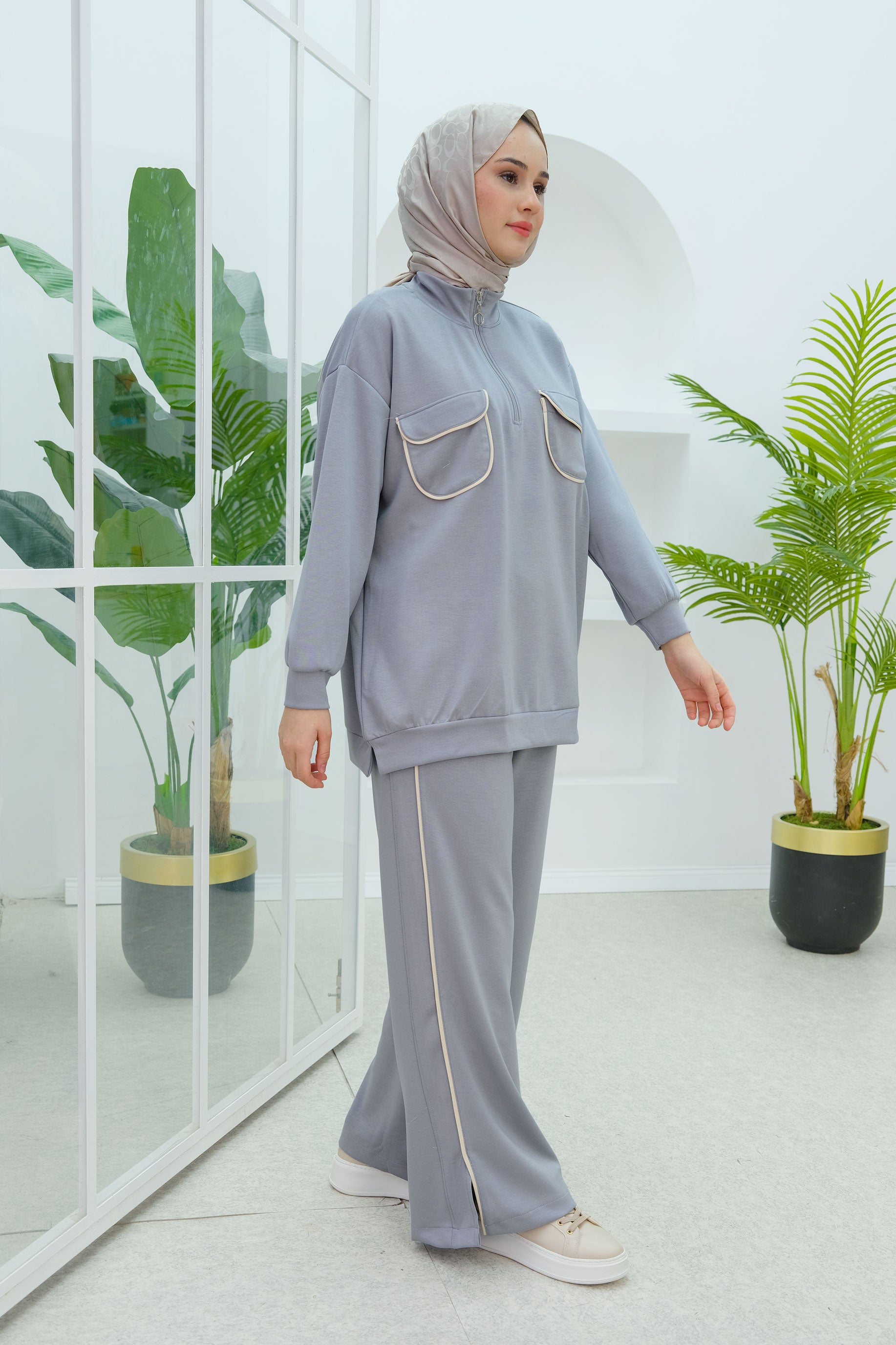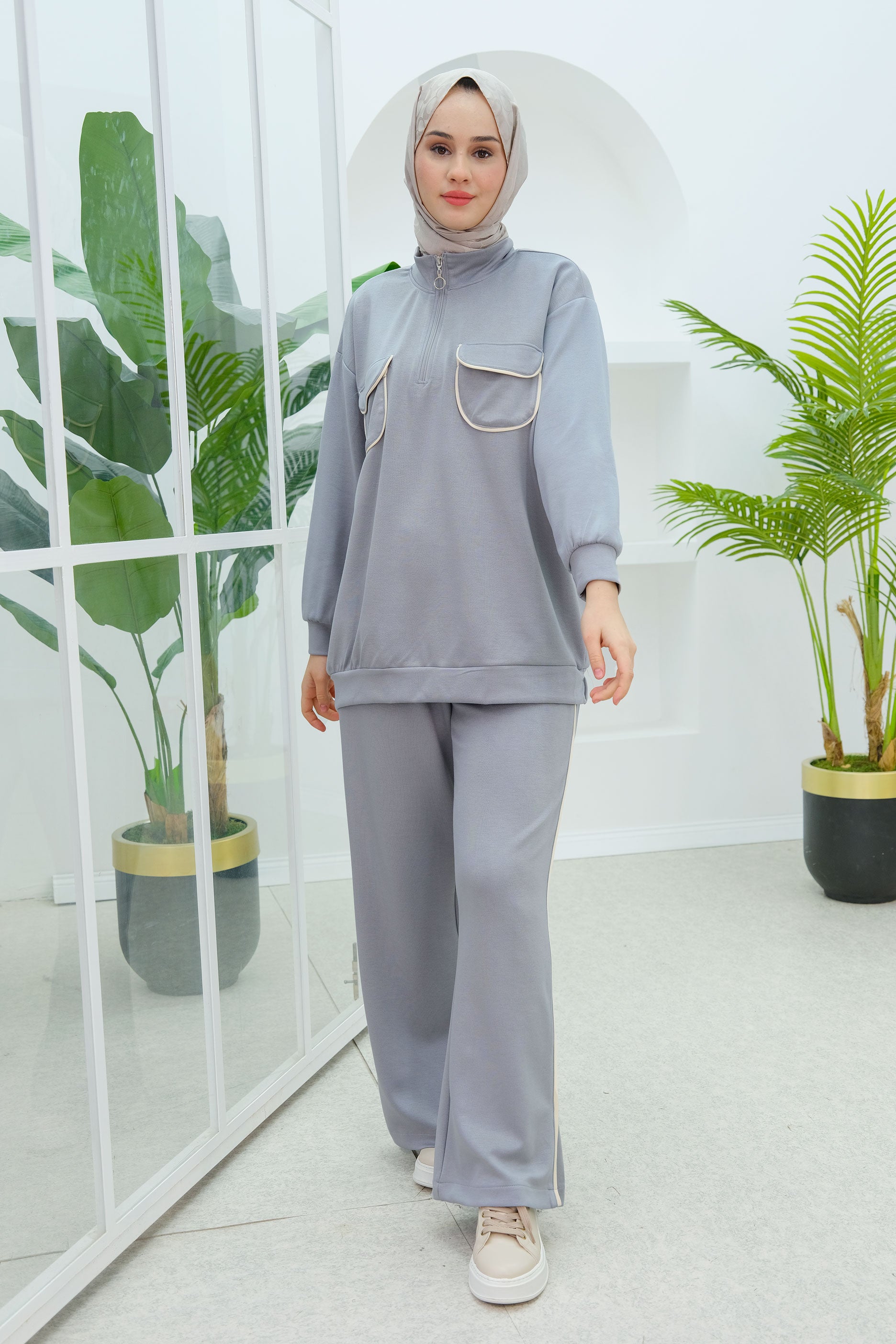 Double Pocket Detailed Set in Gray