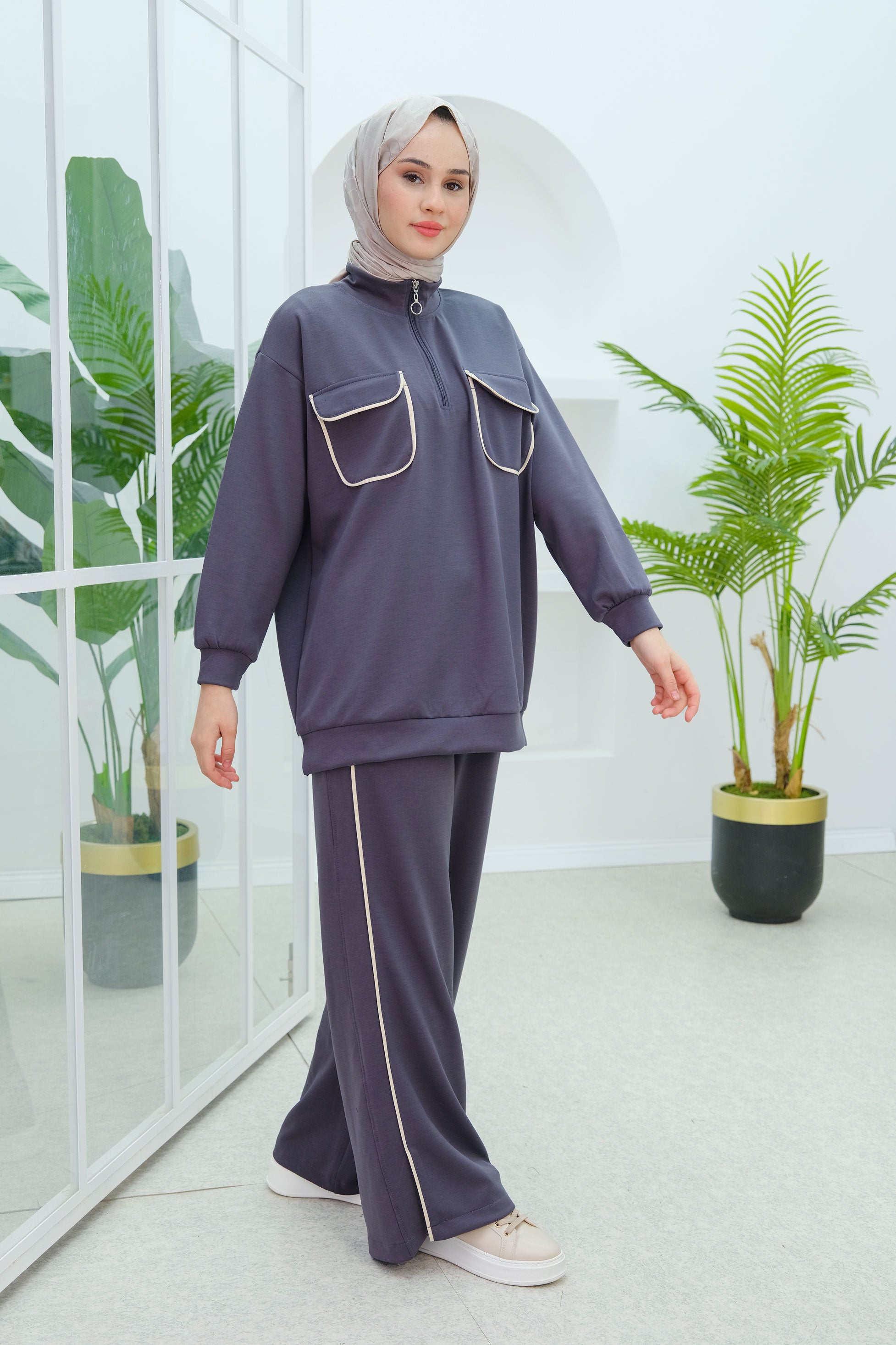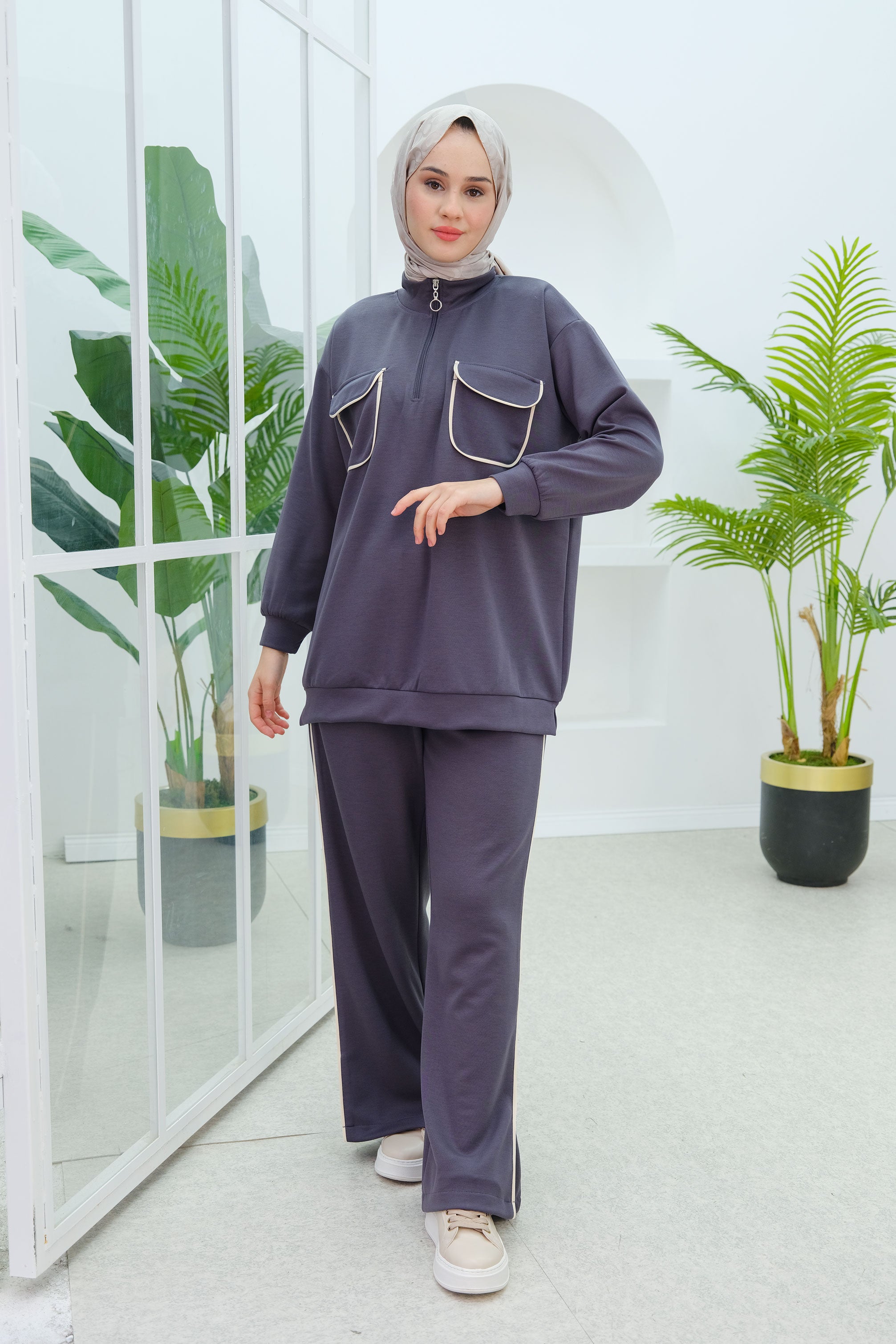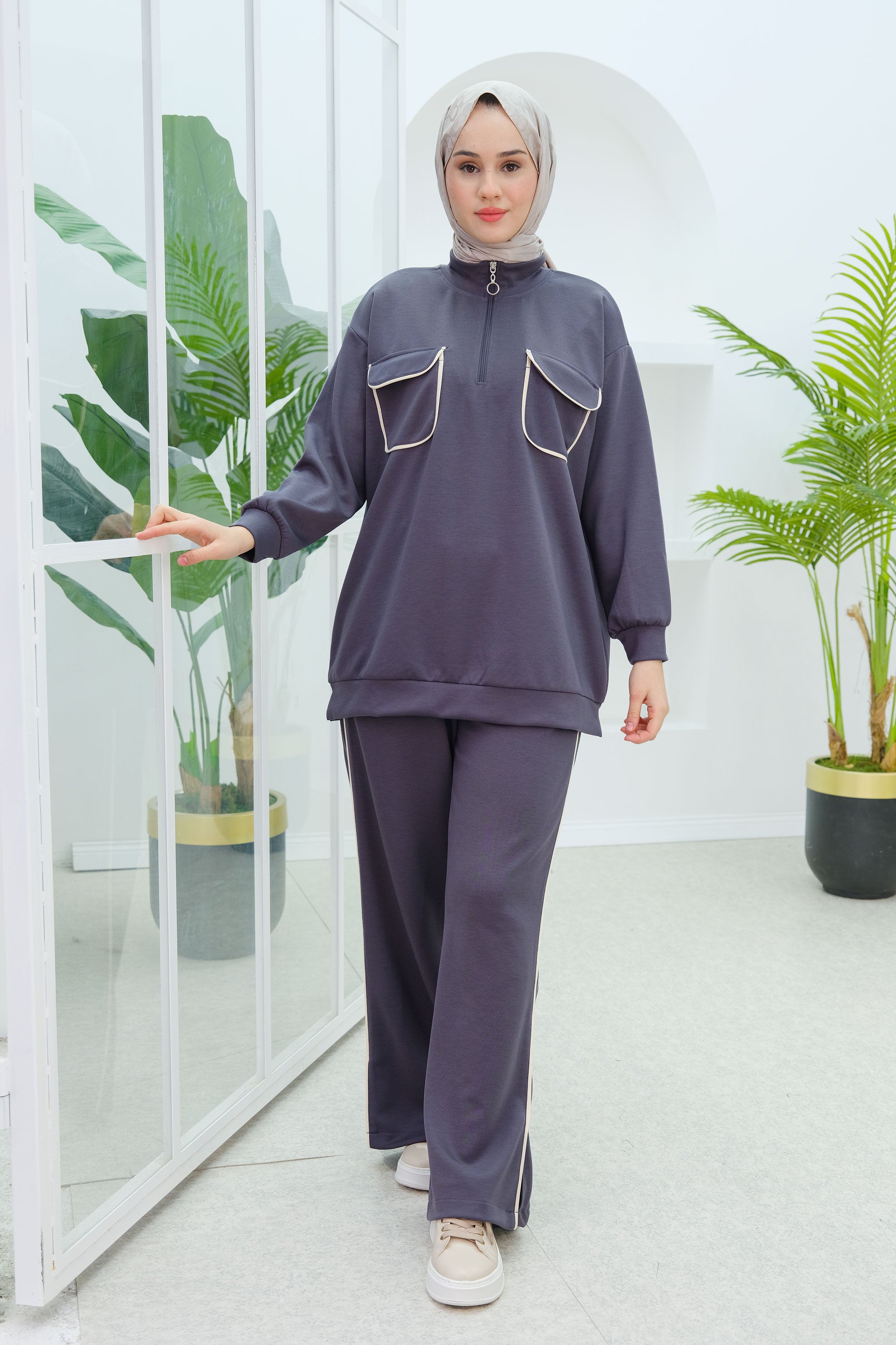 Double Pocket Detailed Set in Charcoal Gray
