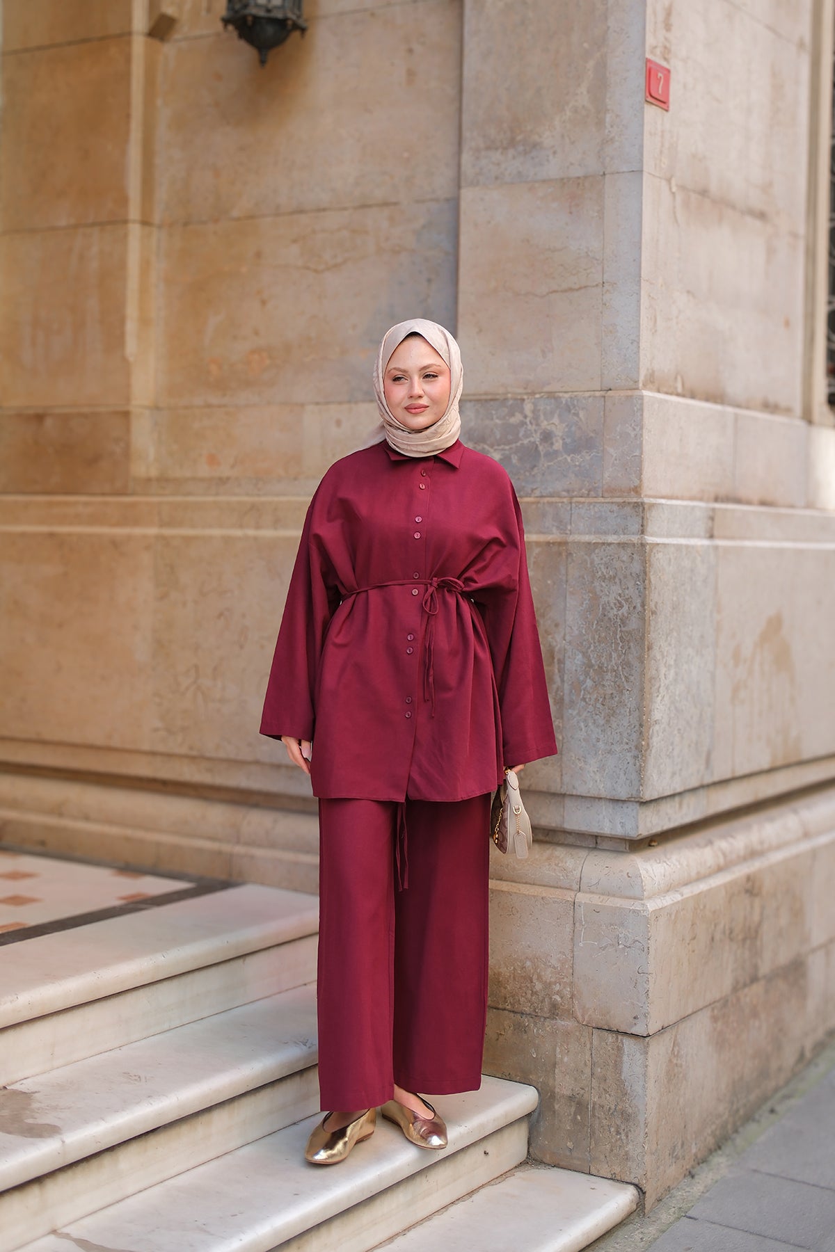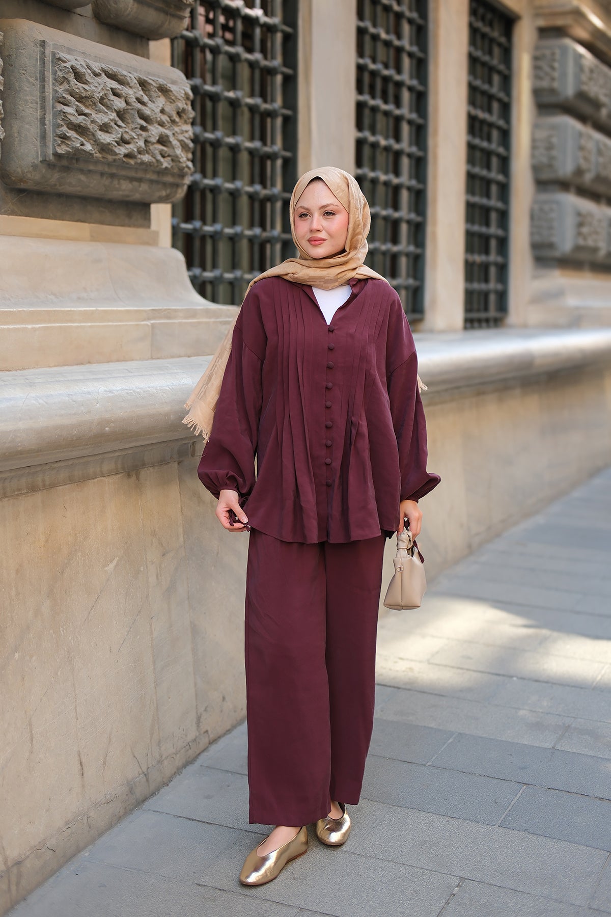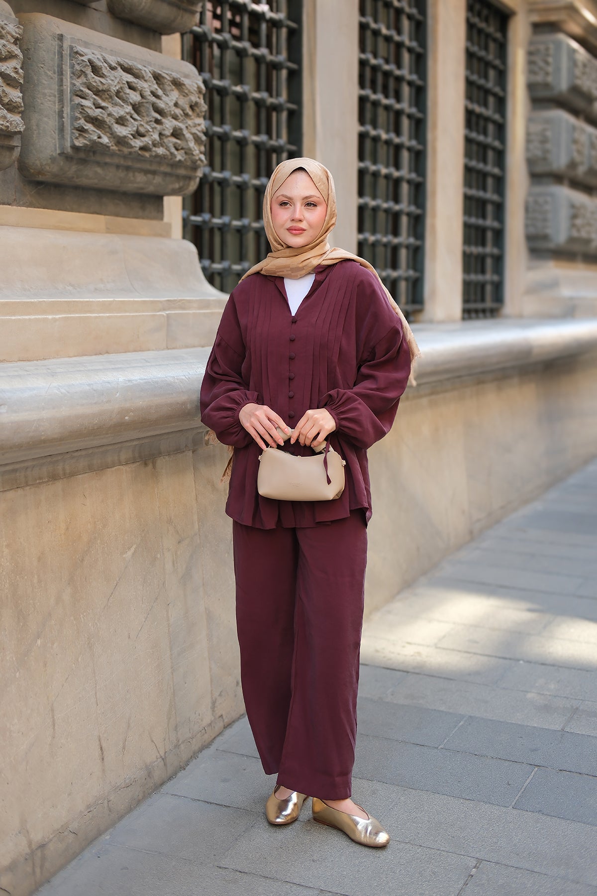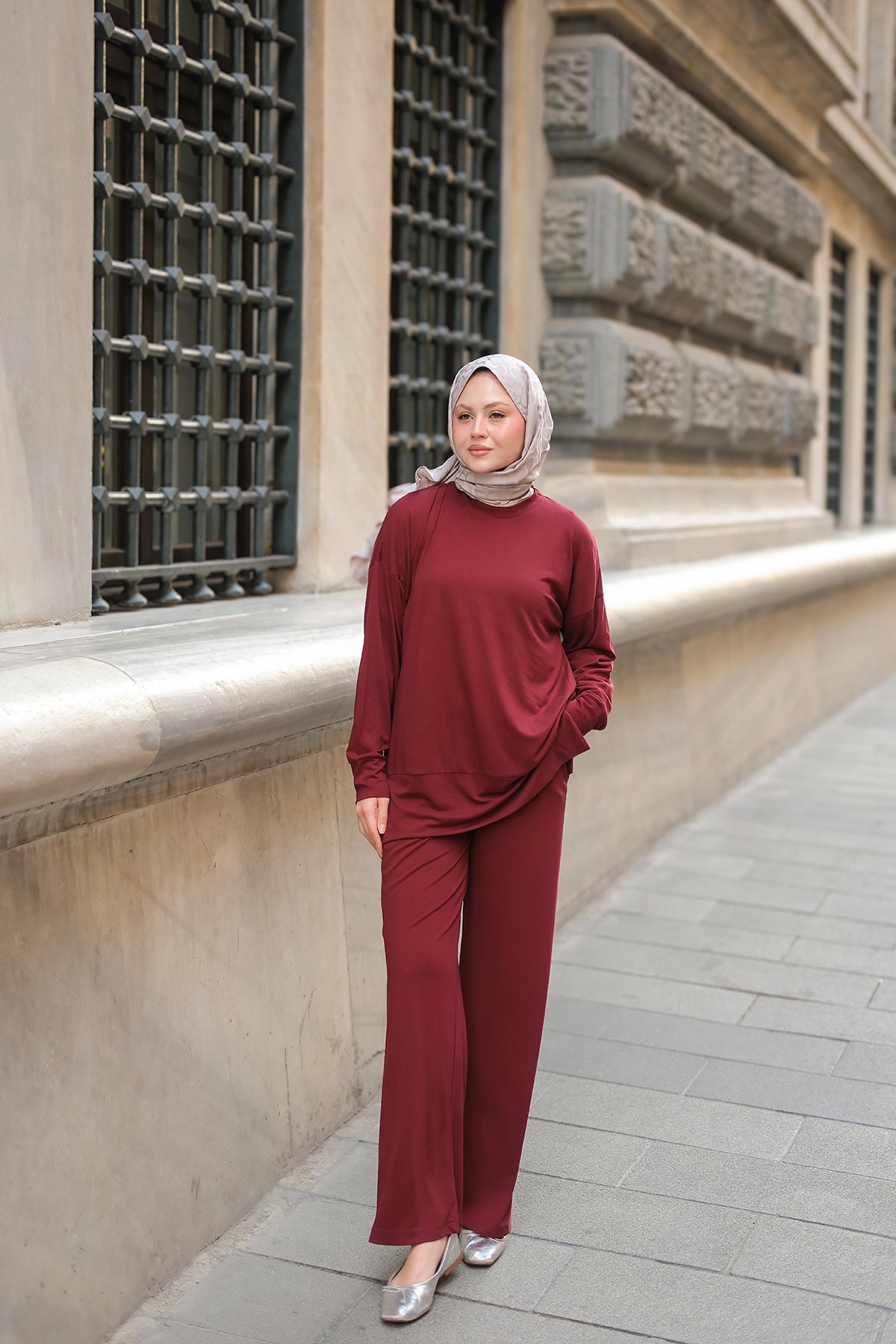 Kaftan Basic Suit - Burgundy