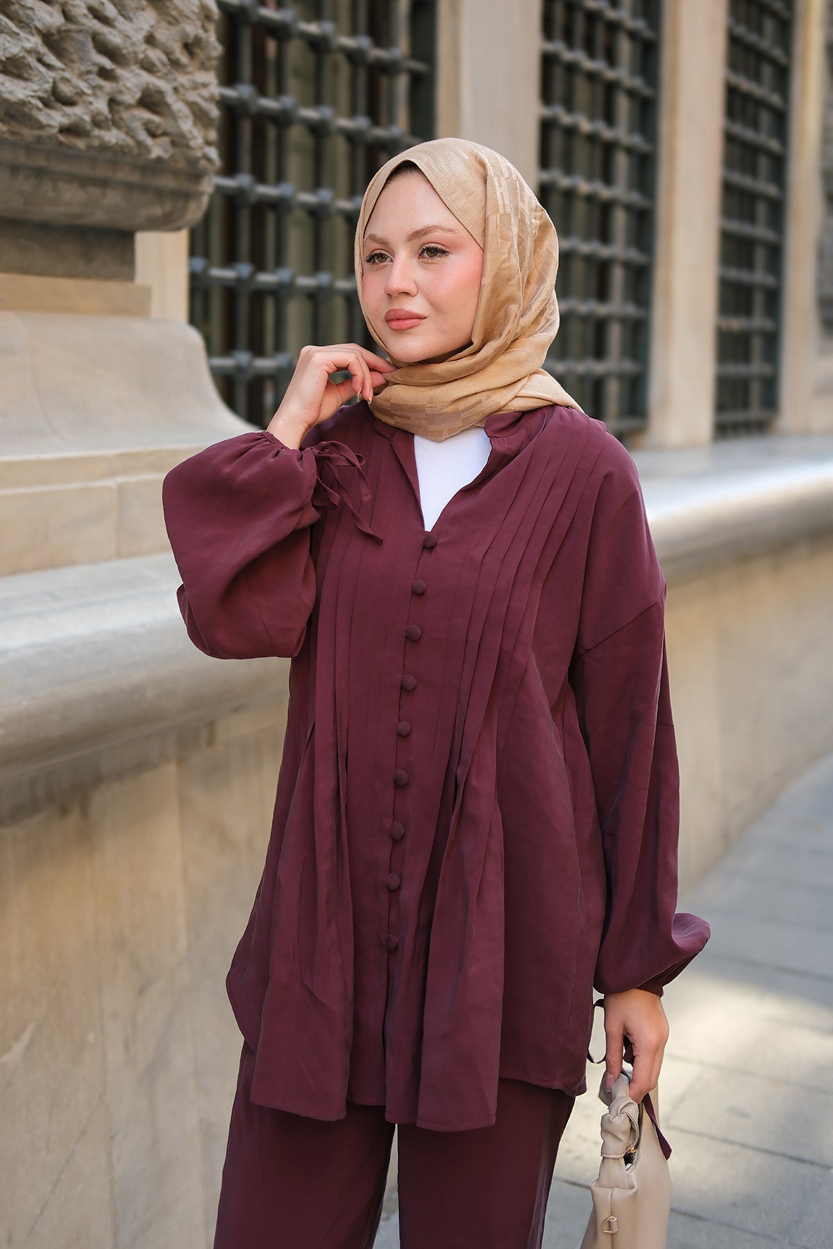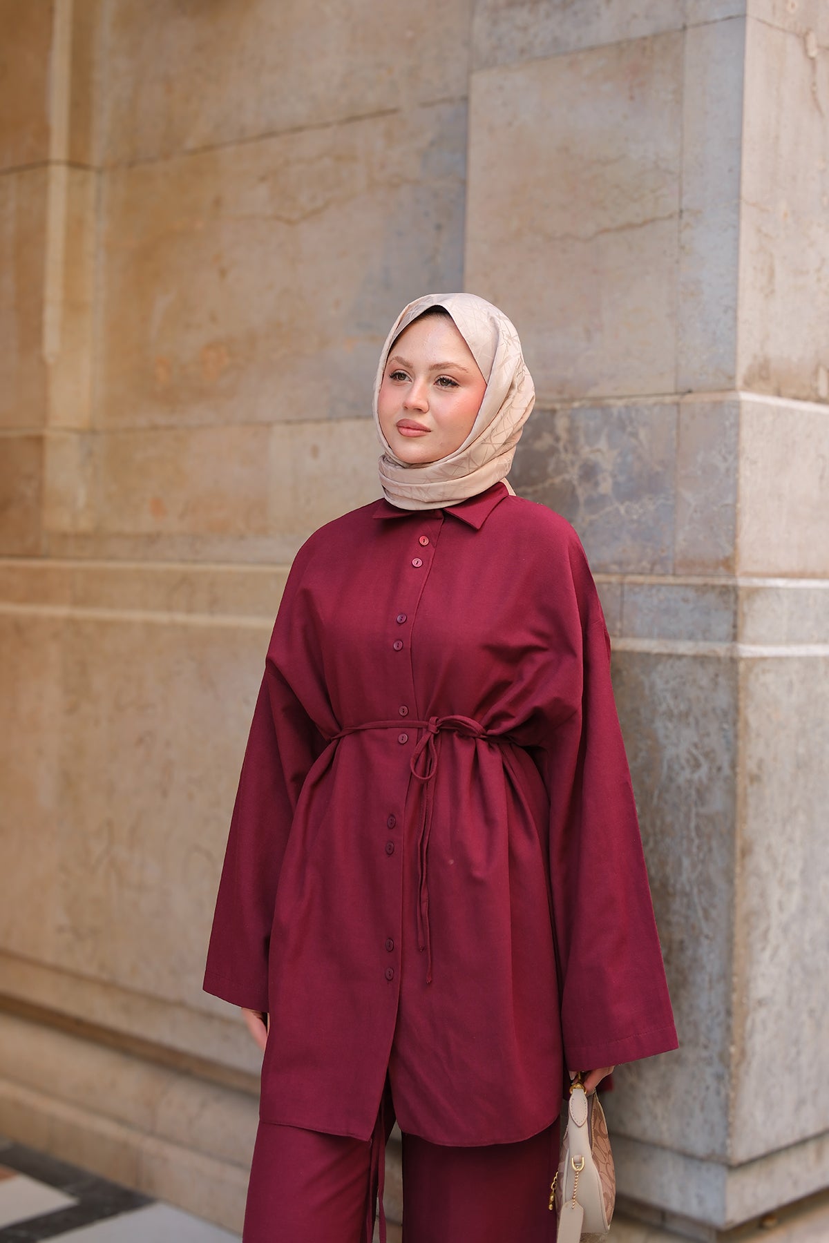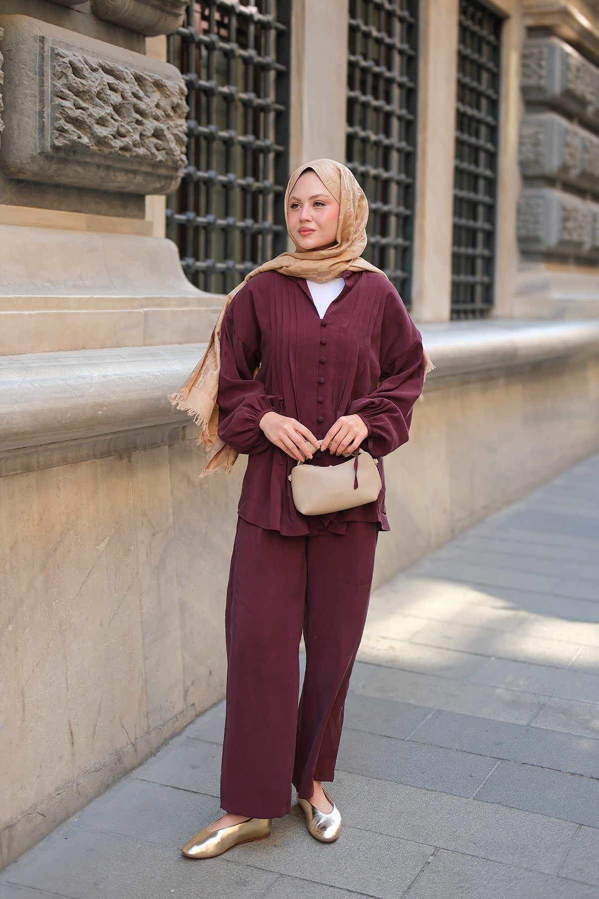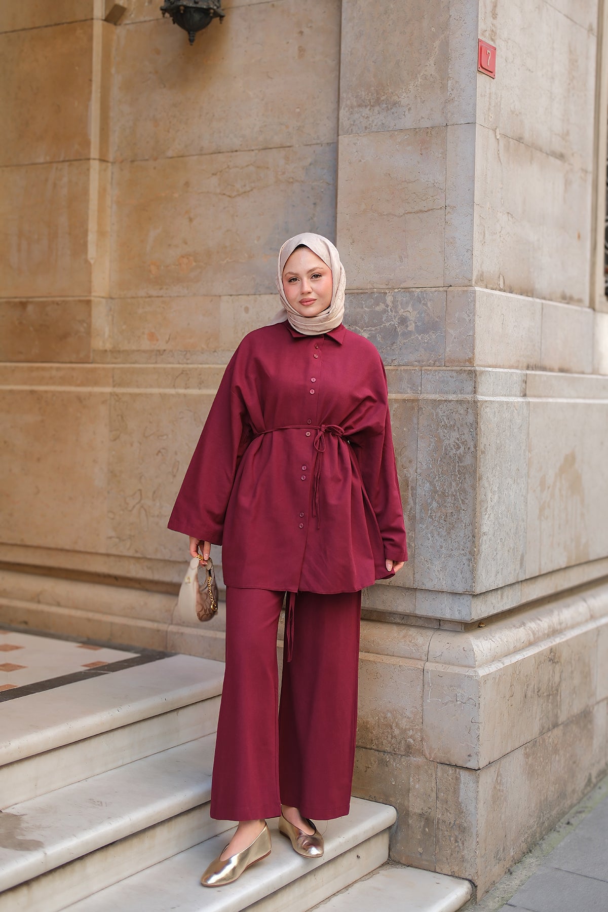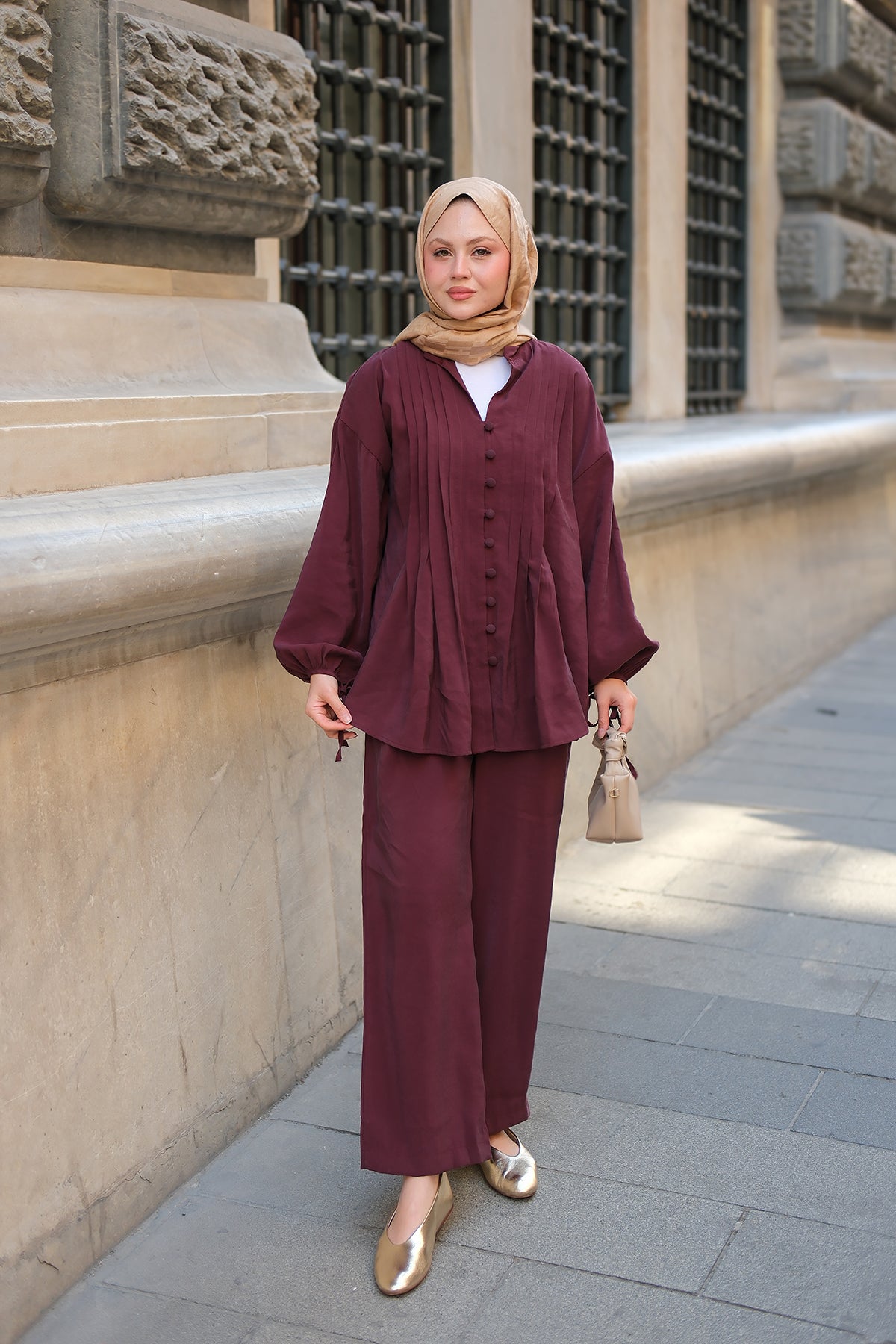 Kaftan Basic Suit - Burgundy