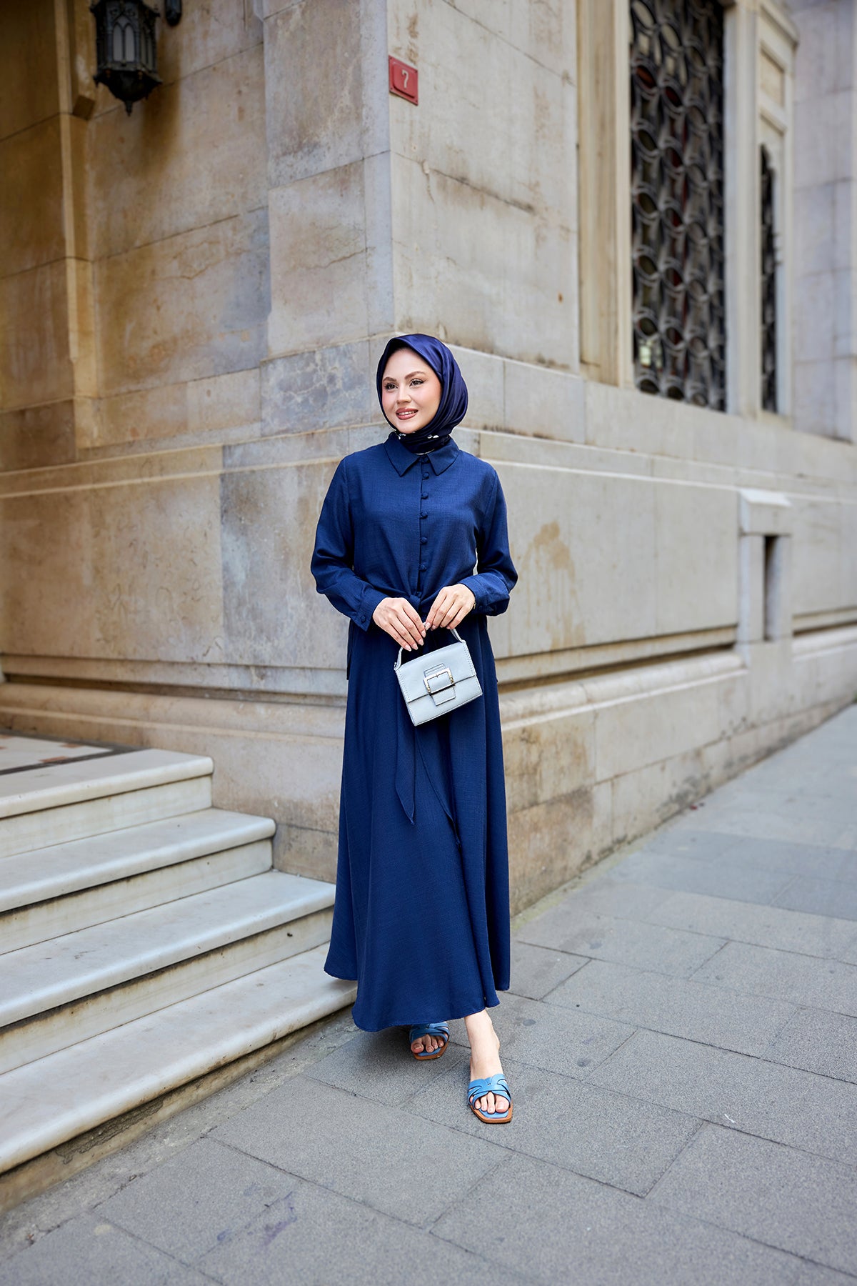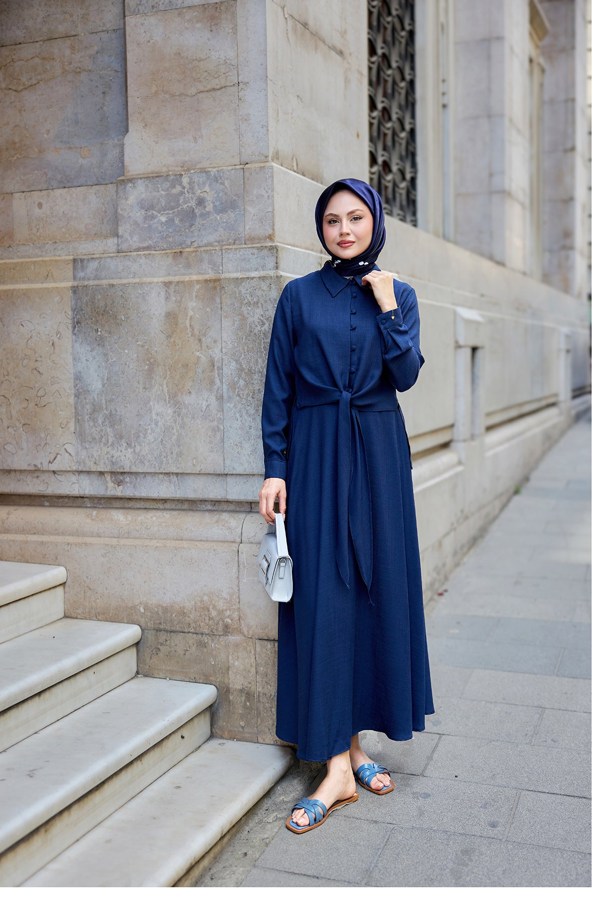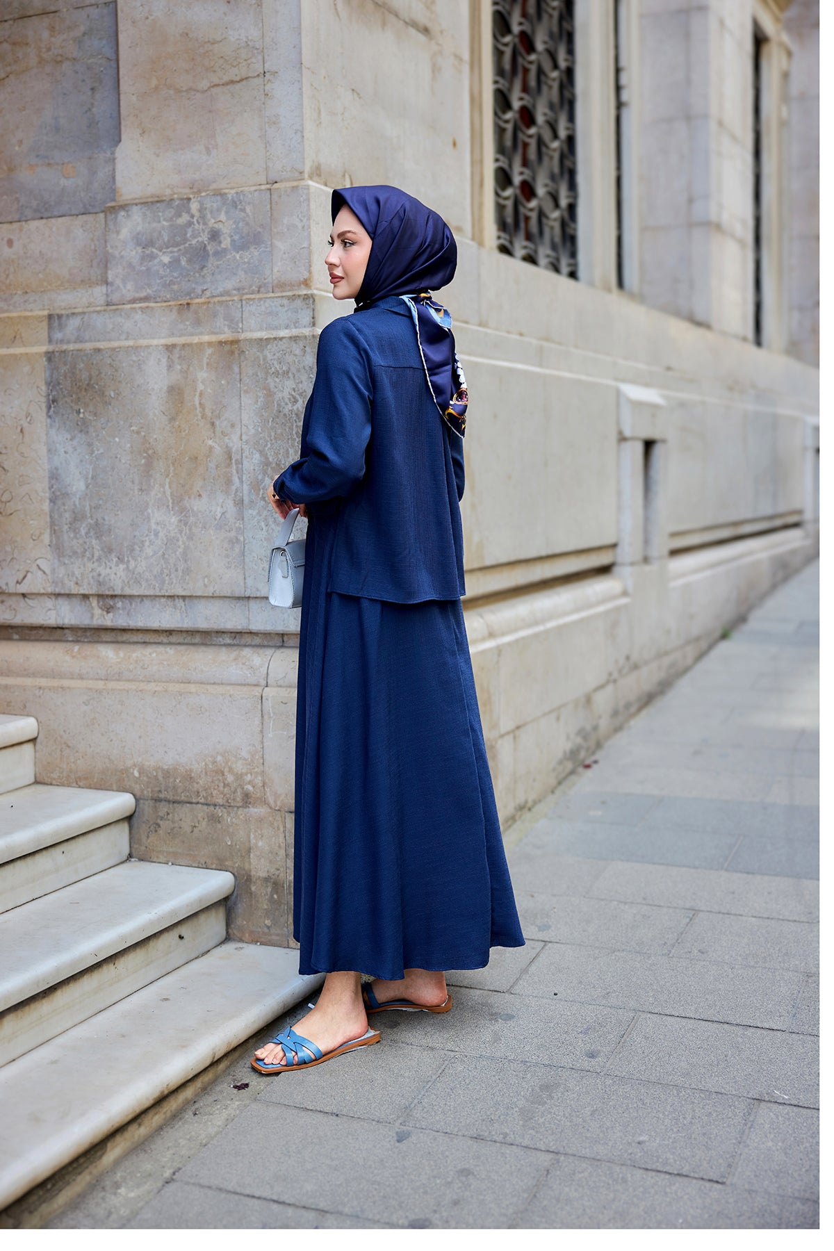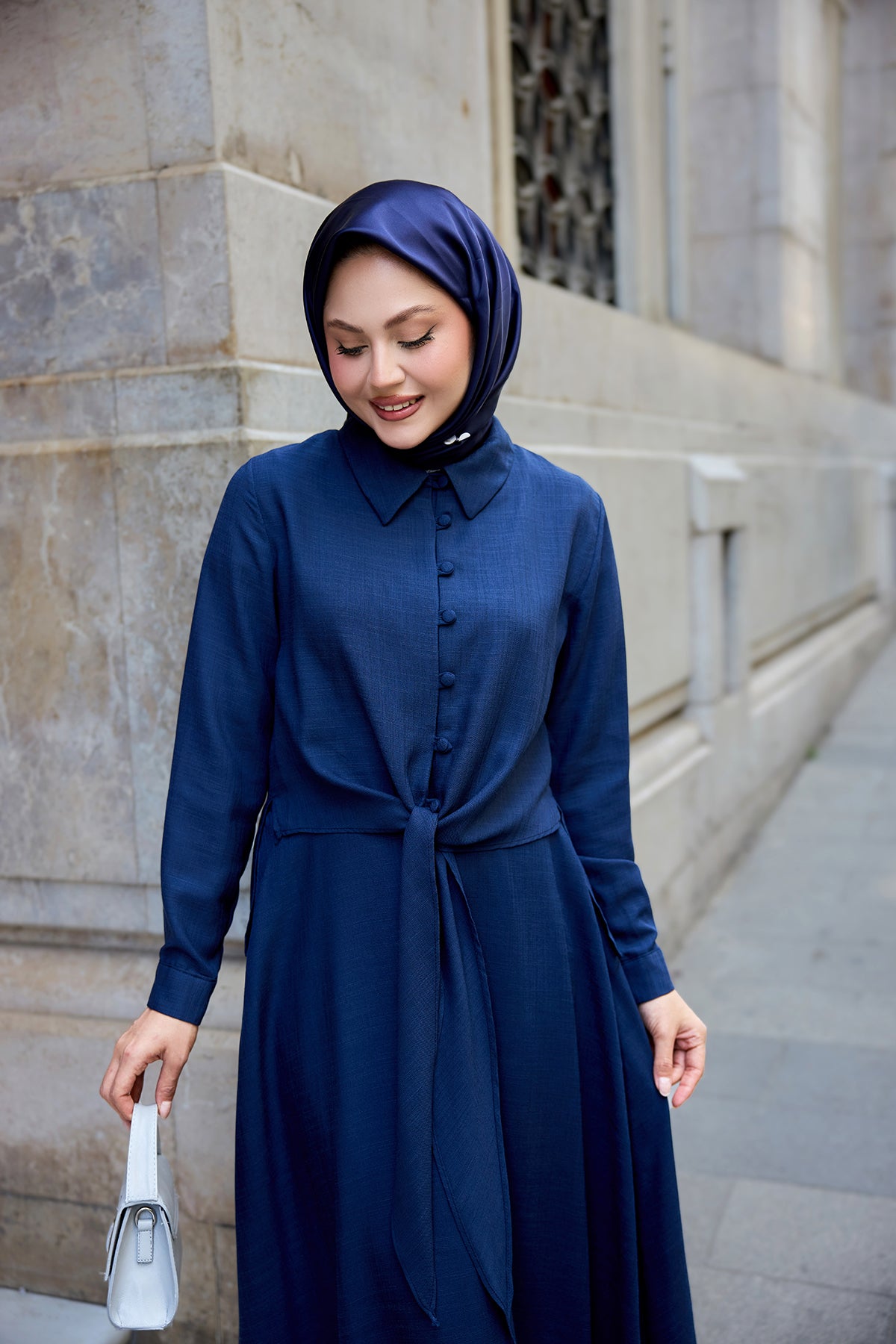 Shirt-Tied Linen Suit - Navy Blue
