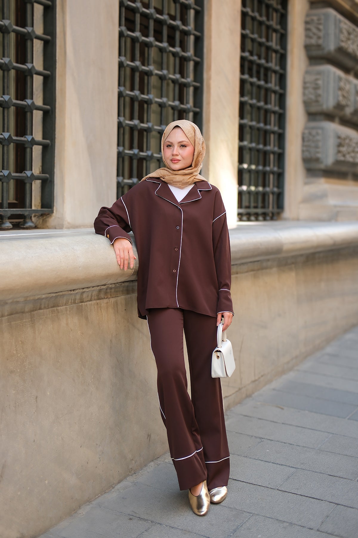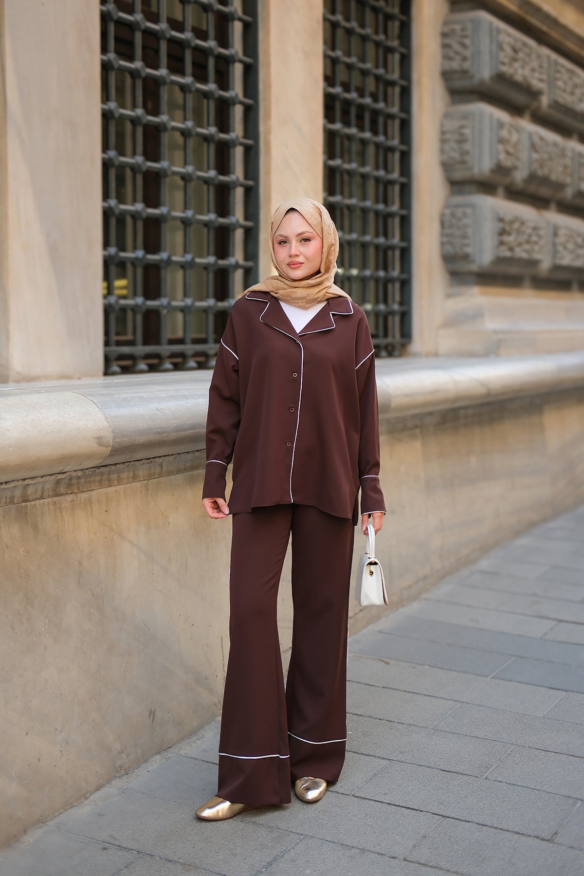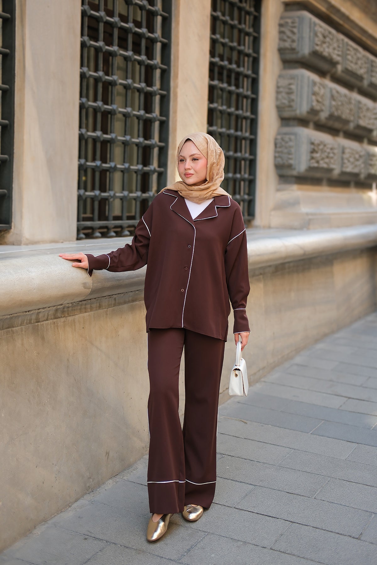 Wrap Collar Suit - Brown