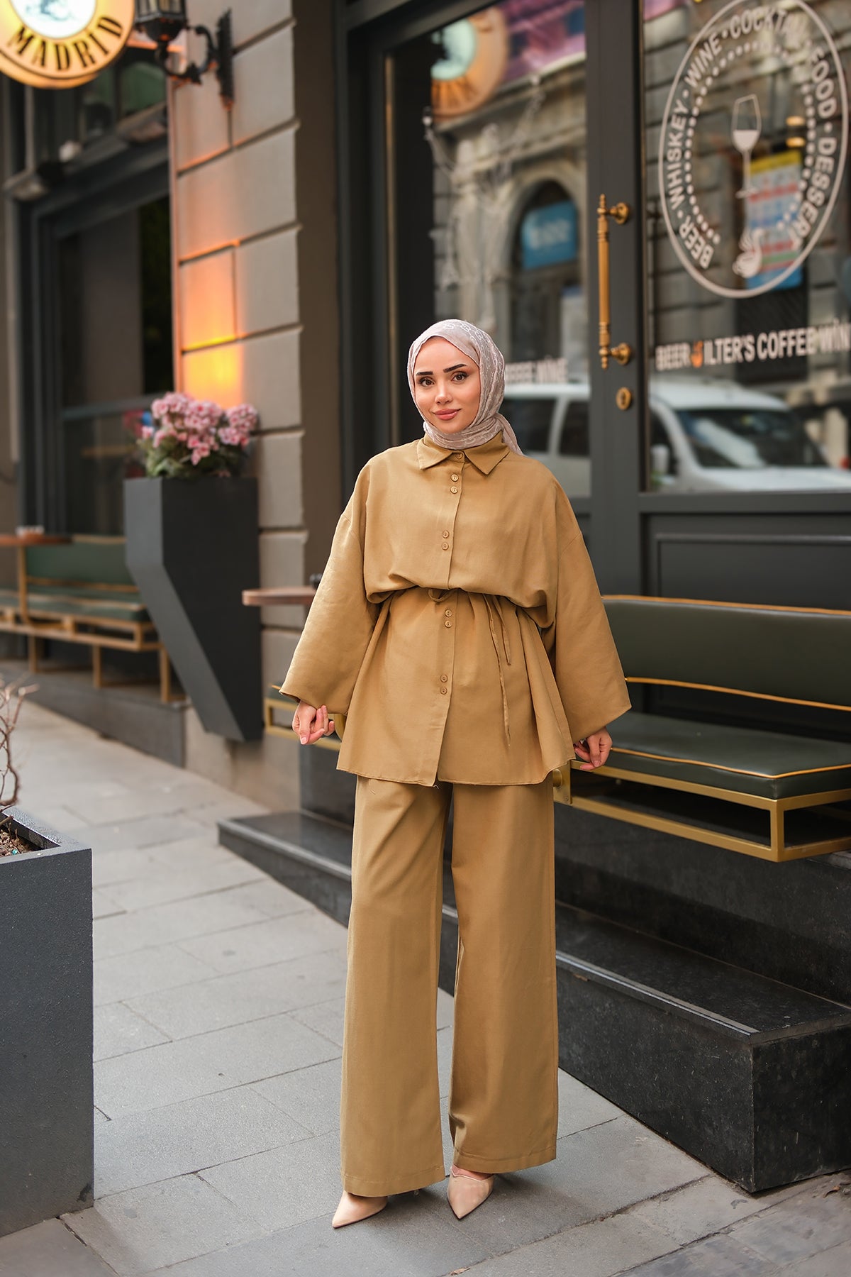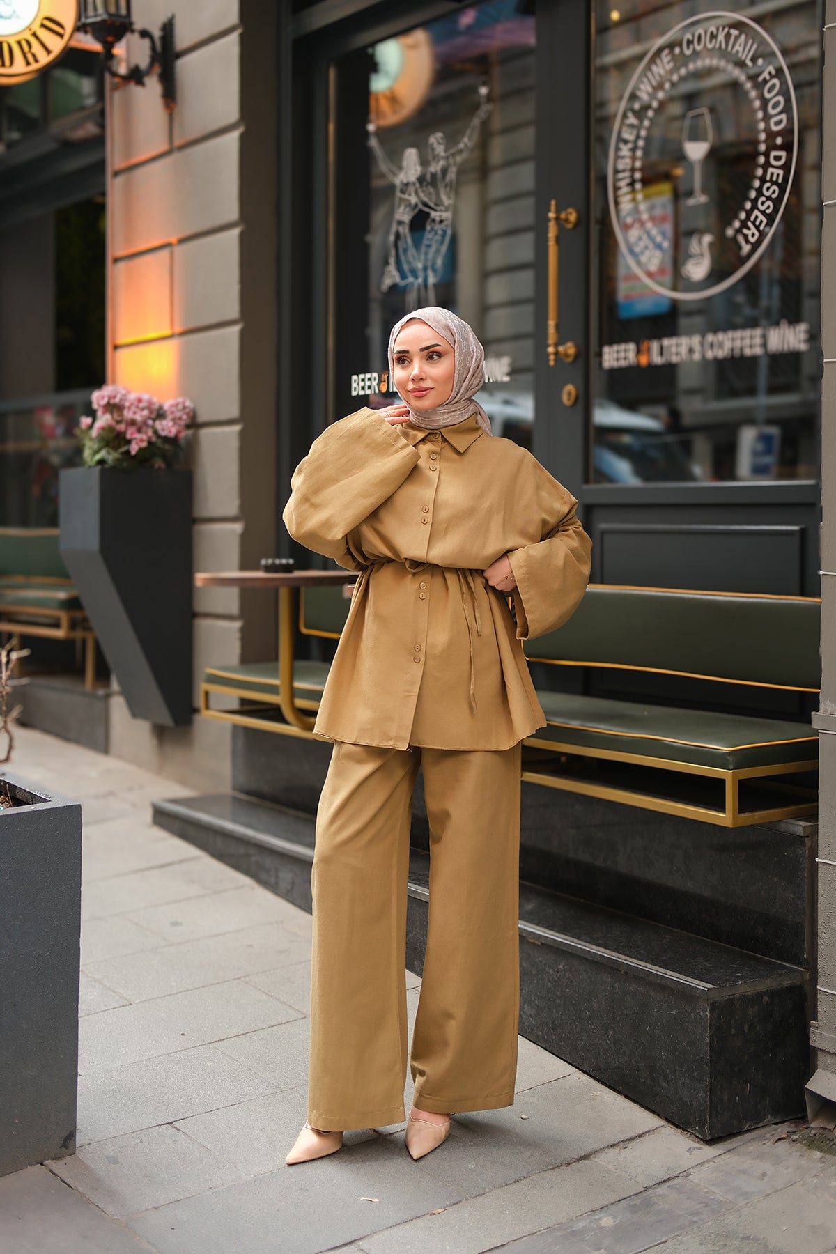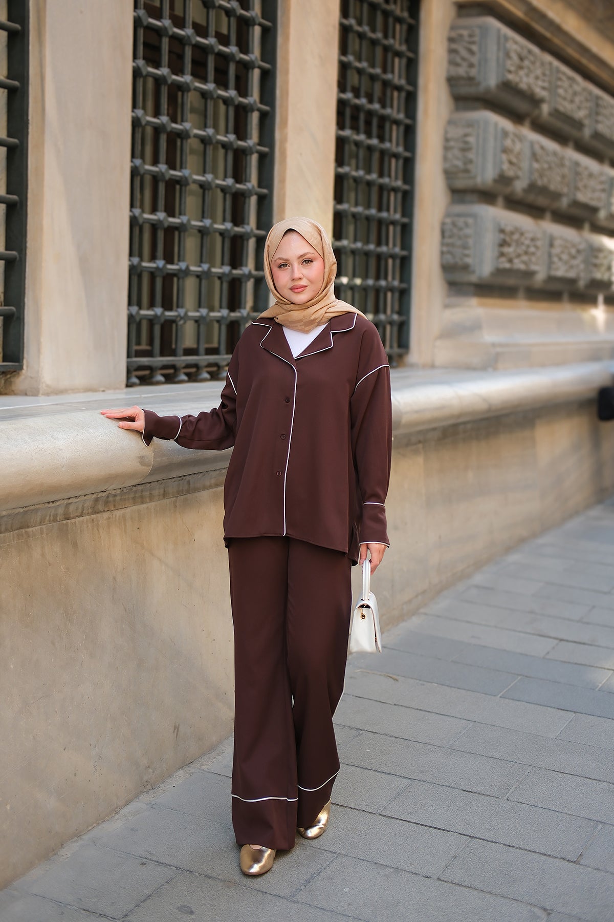 Wrap Collar Suit - Brown