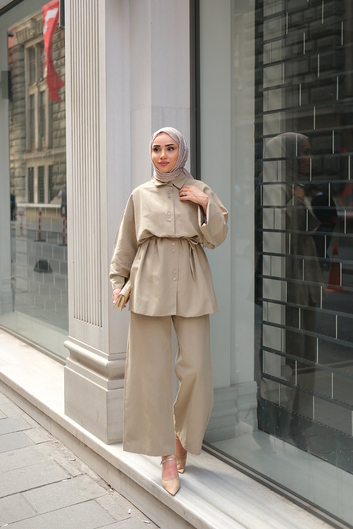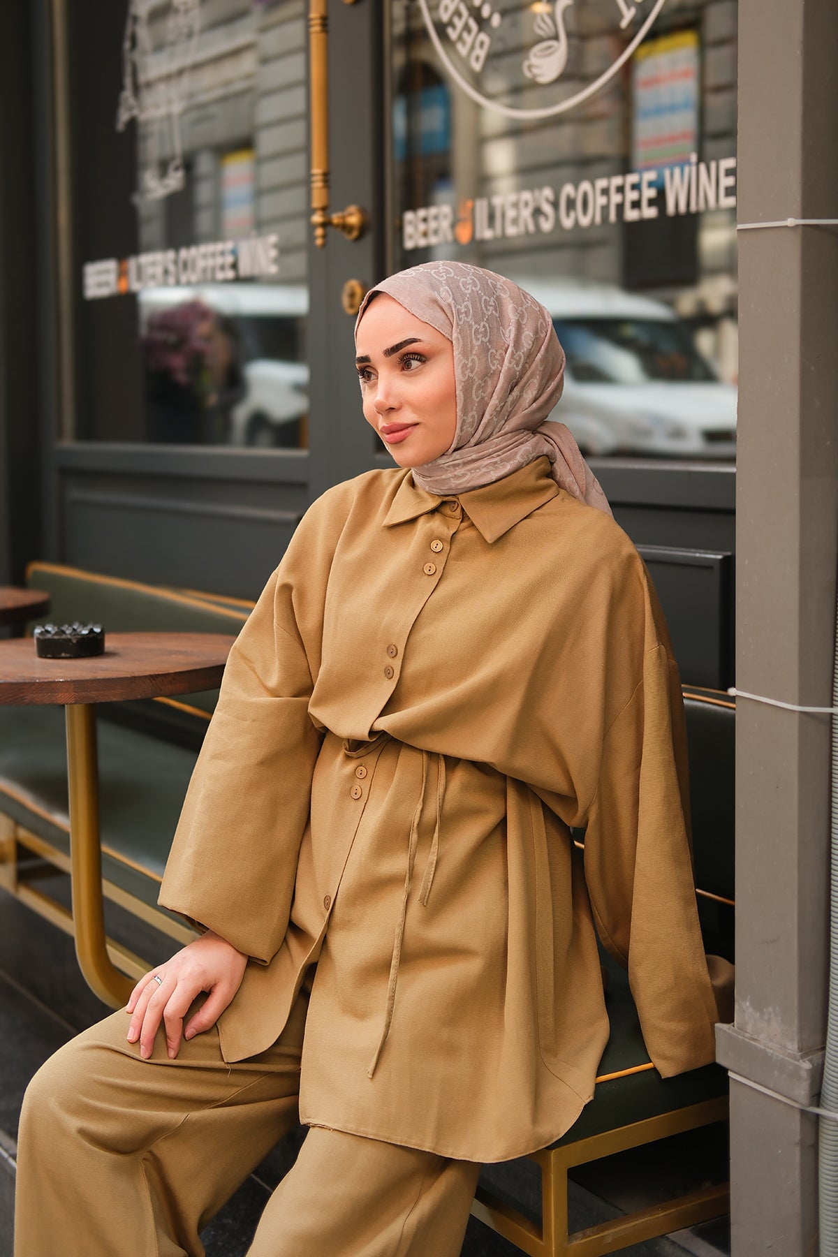 Double Button Detailed Suit Beige
