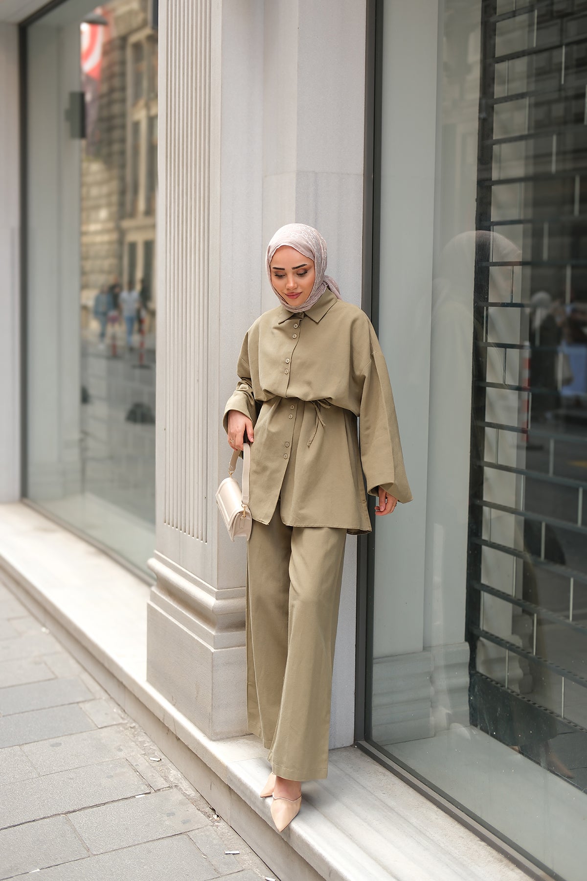 Waist Tied Two-Piece Set Cream