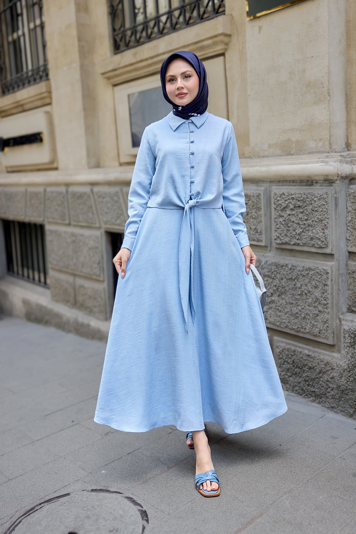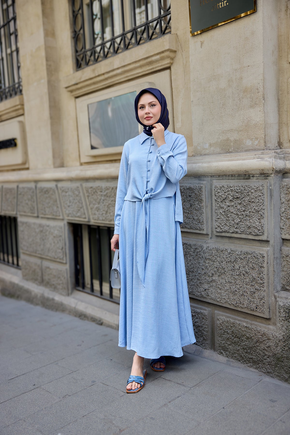 Shirt-Tied Linen Suit - Light Blue
