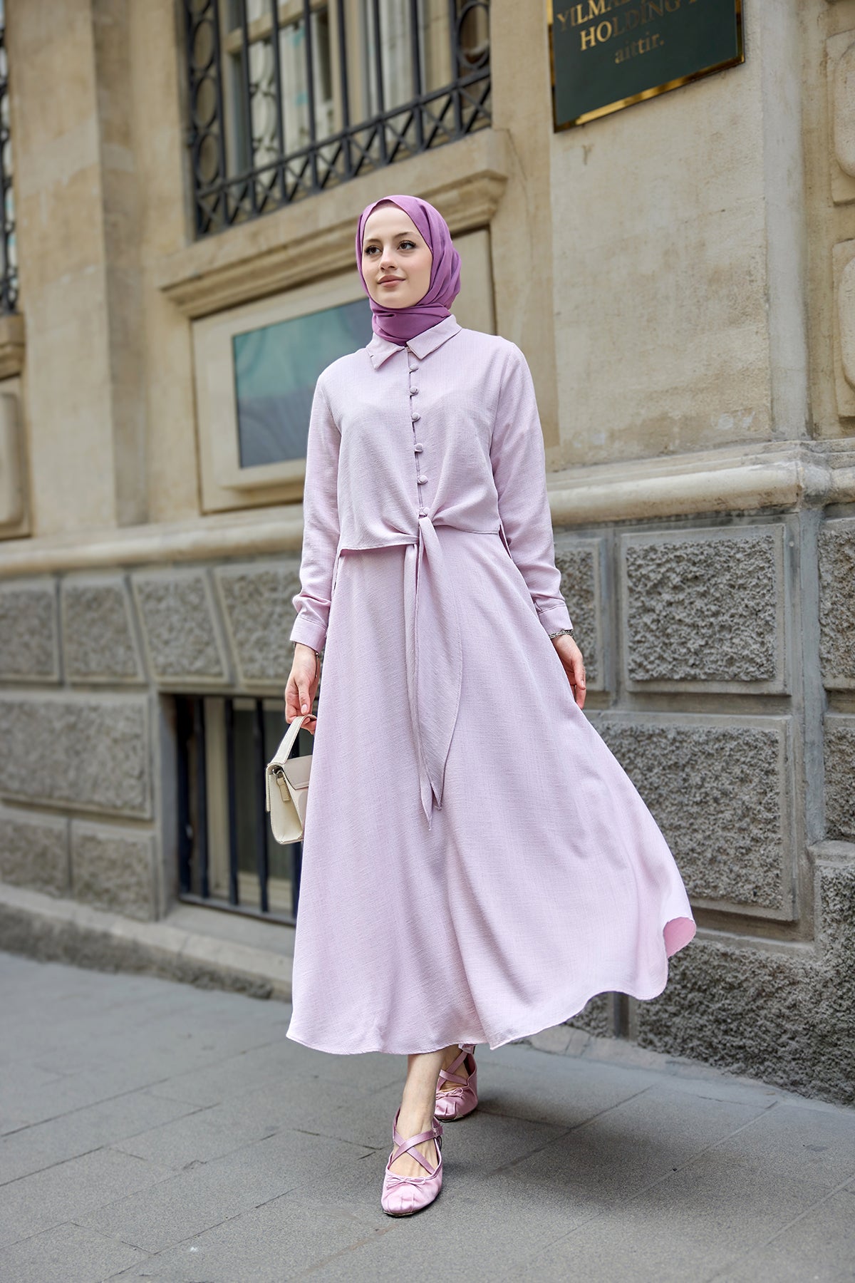 Shirt-Tied Linen Suit Pink