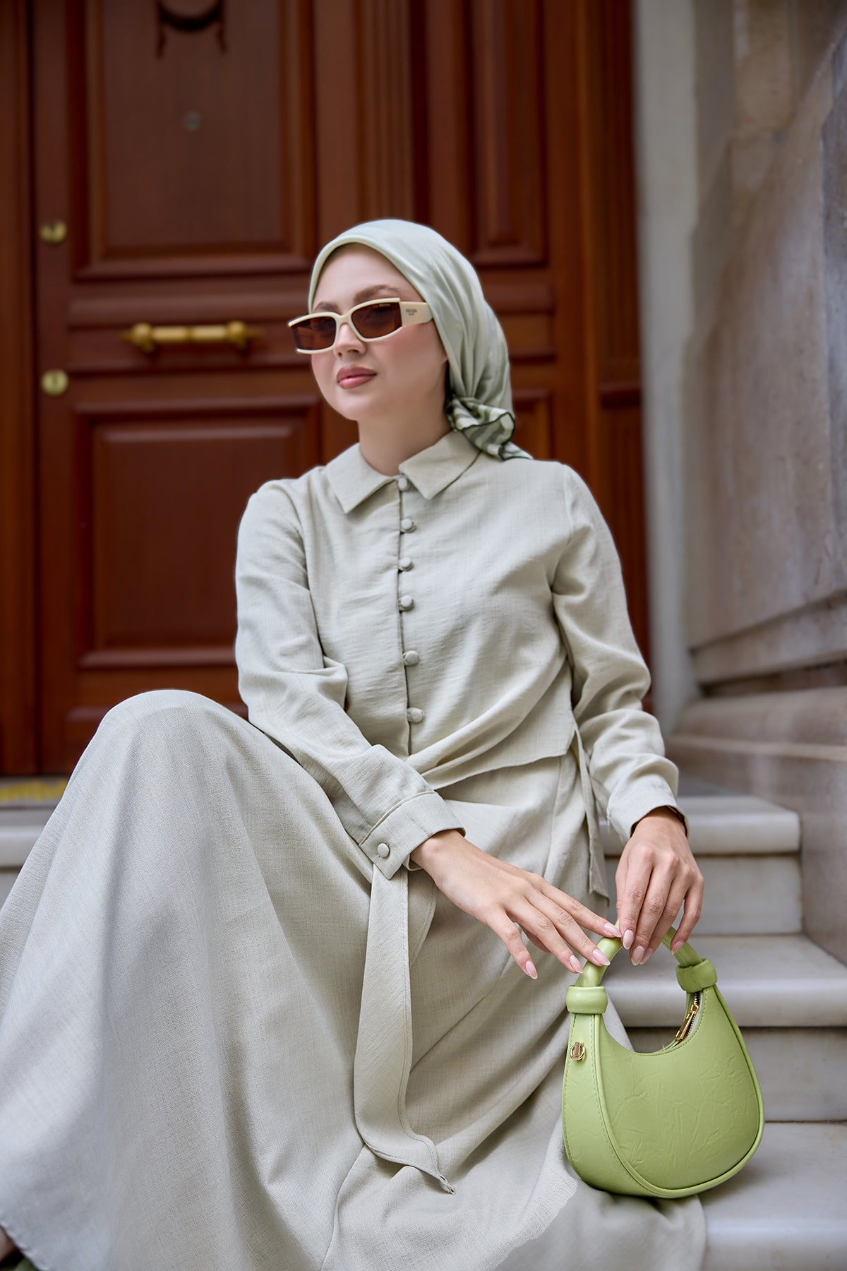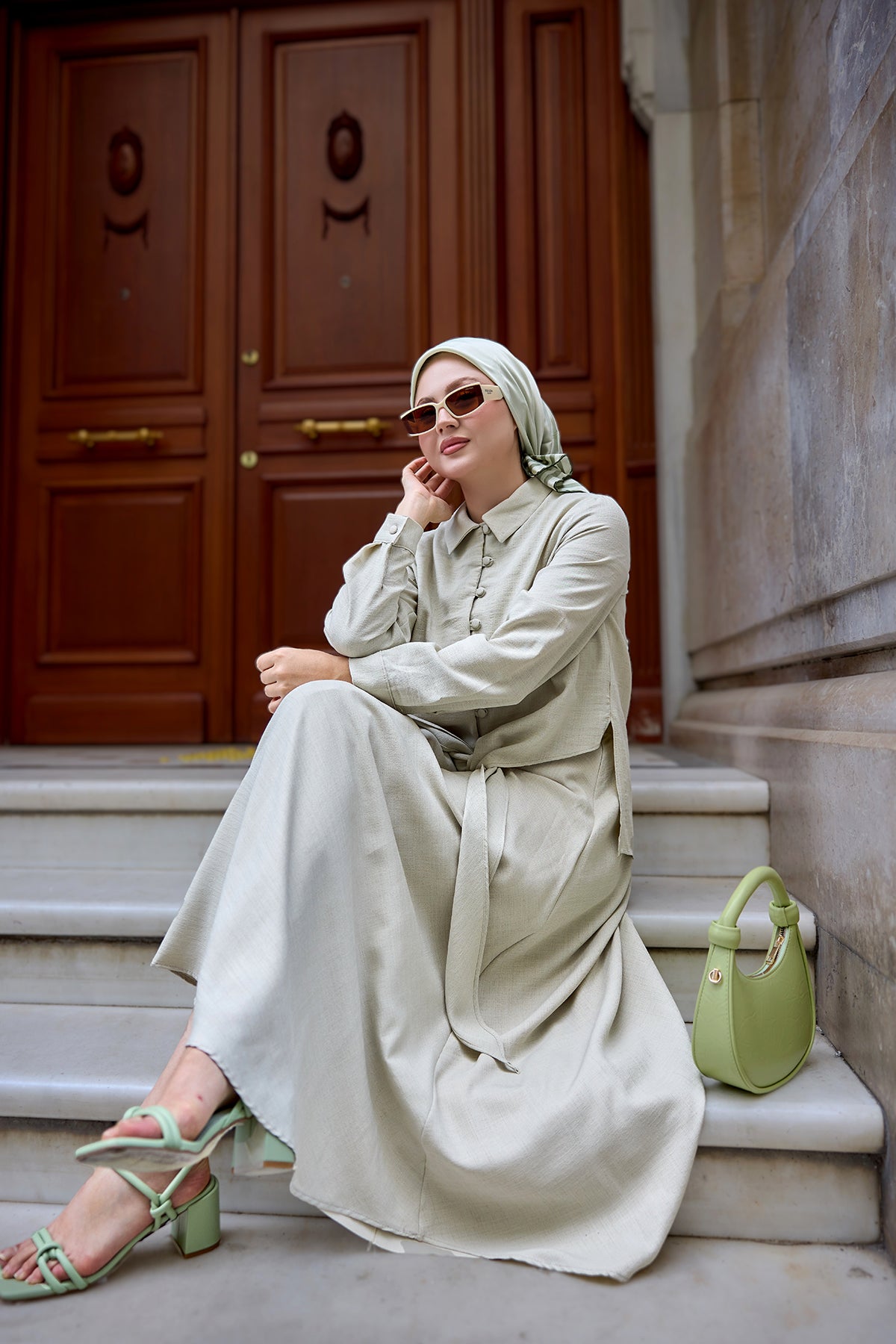 Double Button Detailed Suit Moss Green