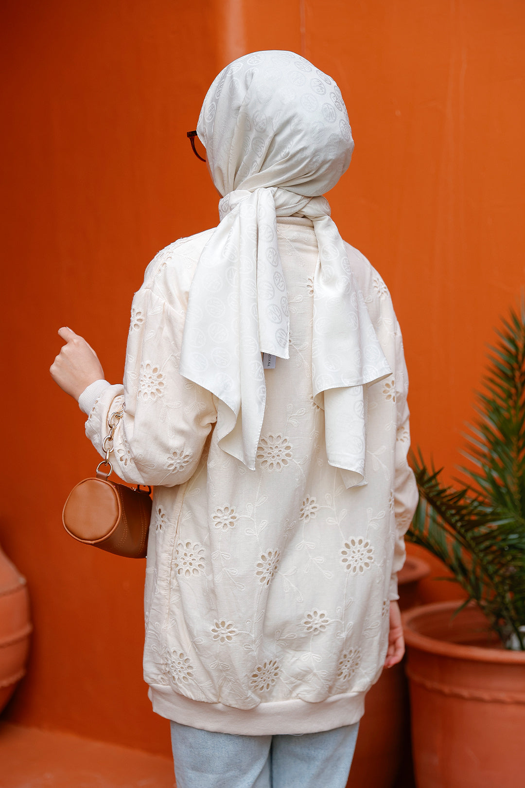 White Cardigan with Stone Embroidery and Brocade Details