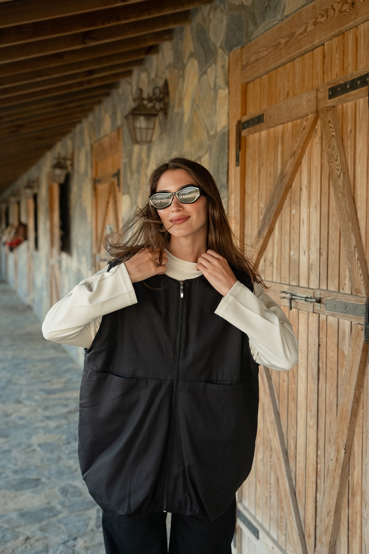 Waist-Tie Wool Vest – Black