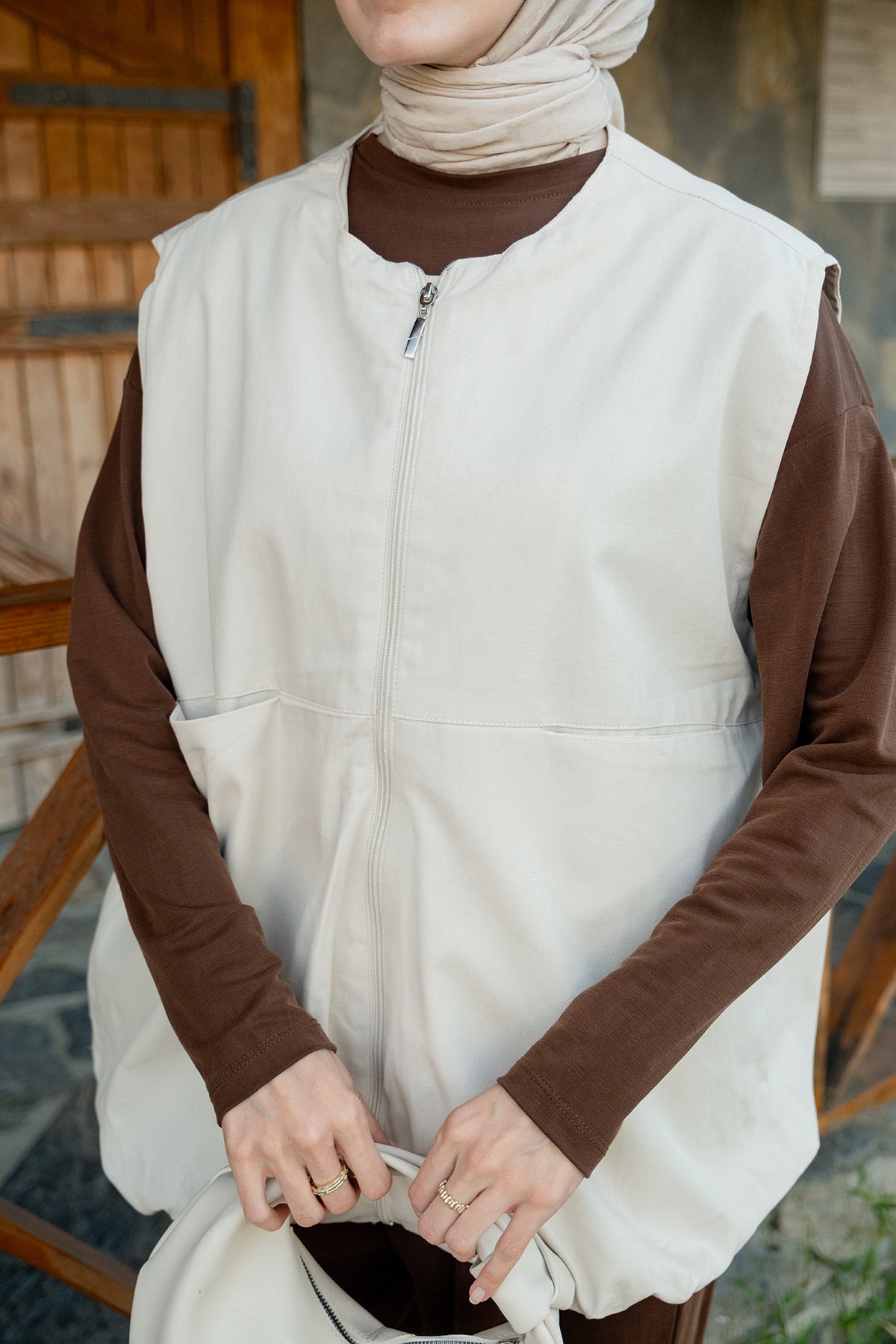 Crew Neck Vest – Ecru