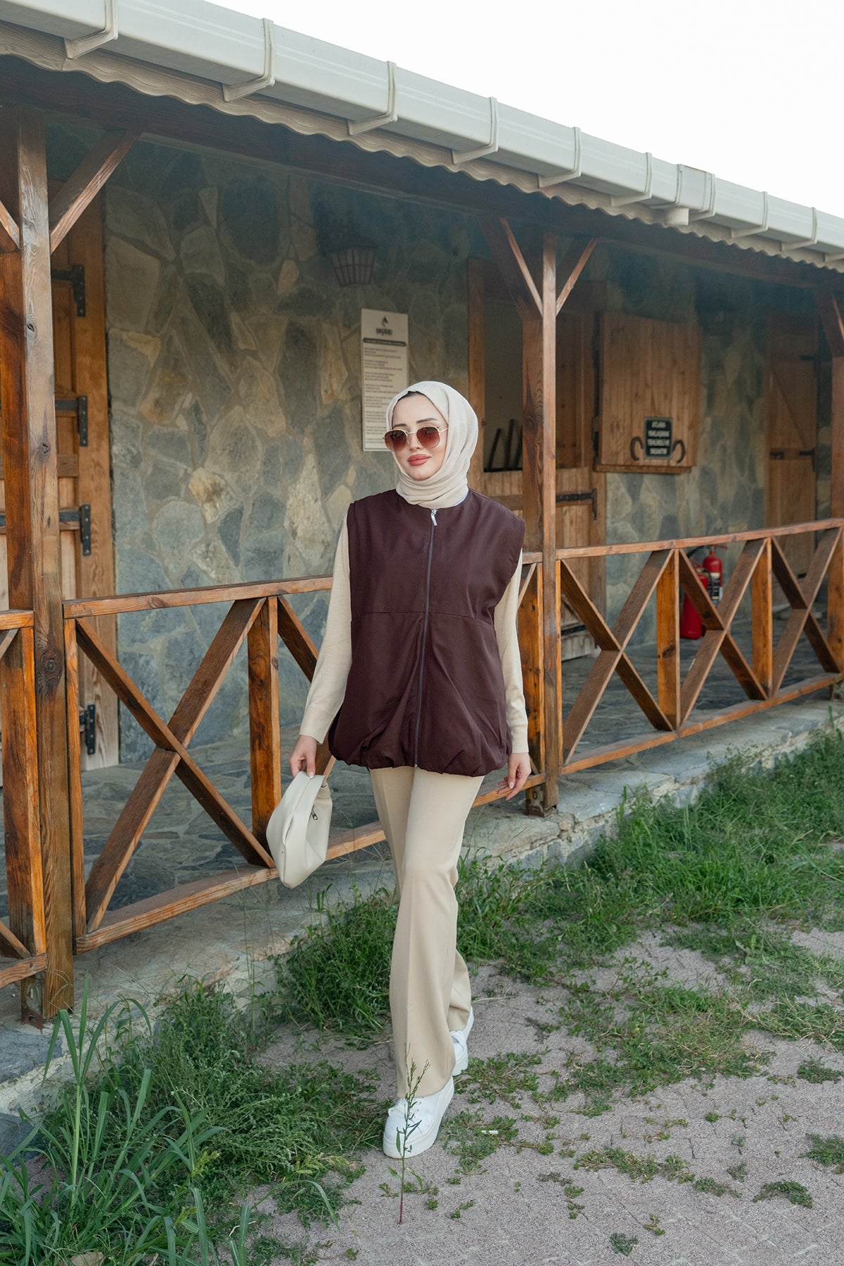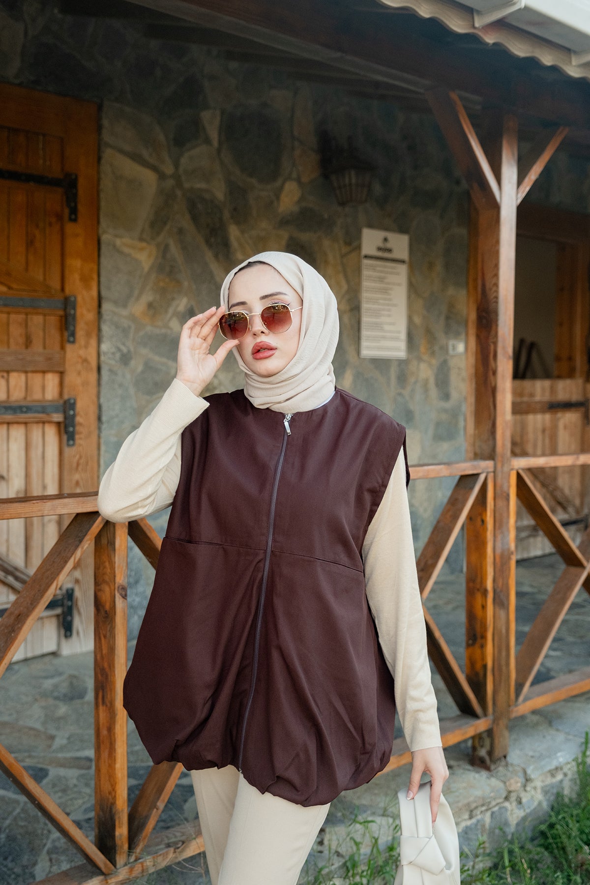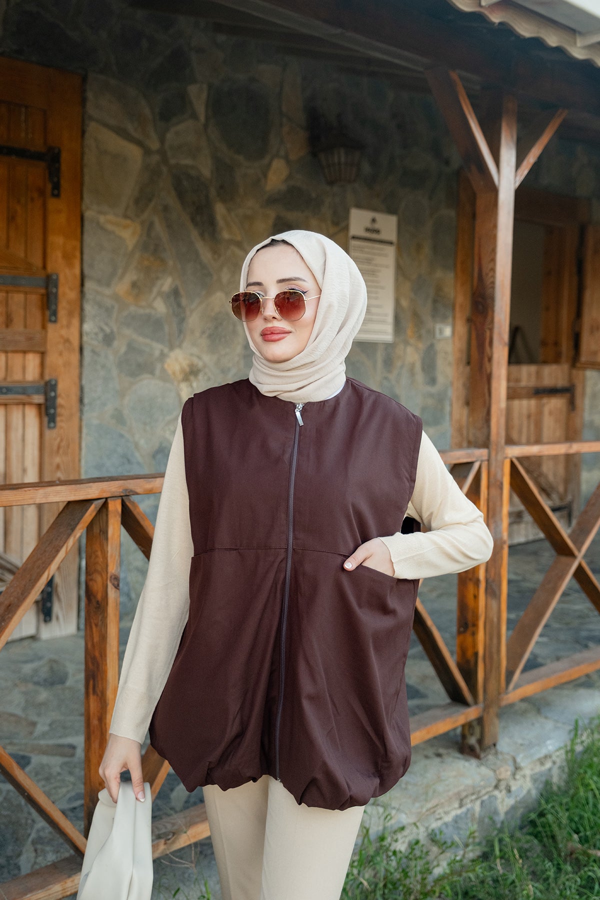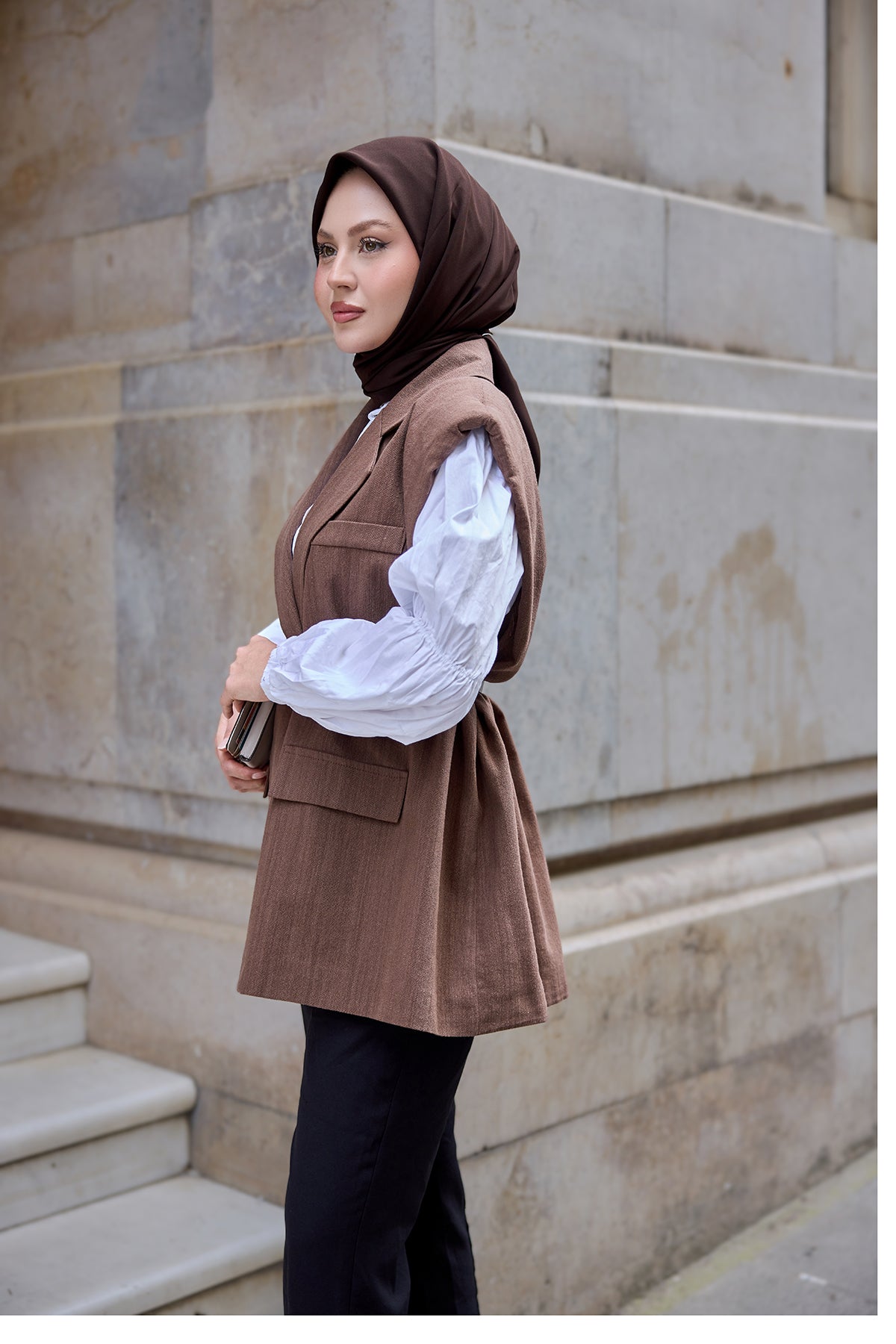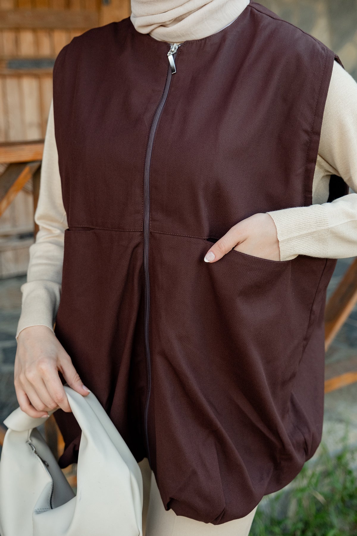 Crew Neck Vest – Brown