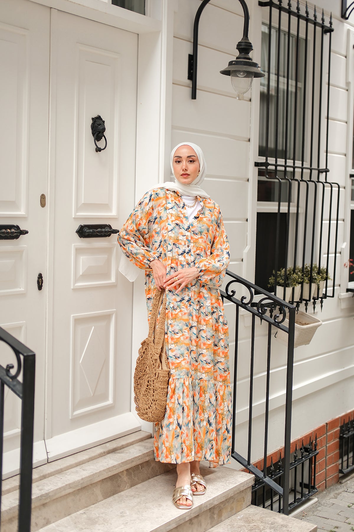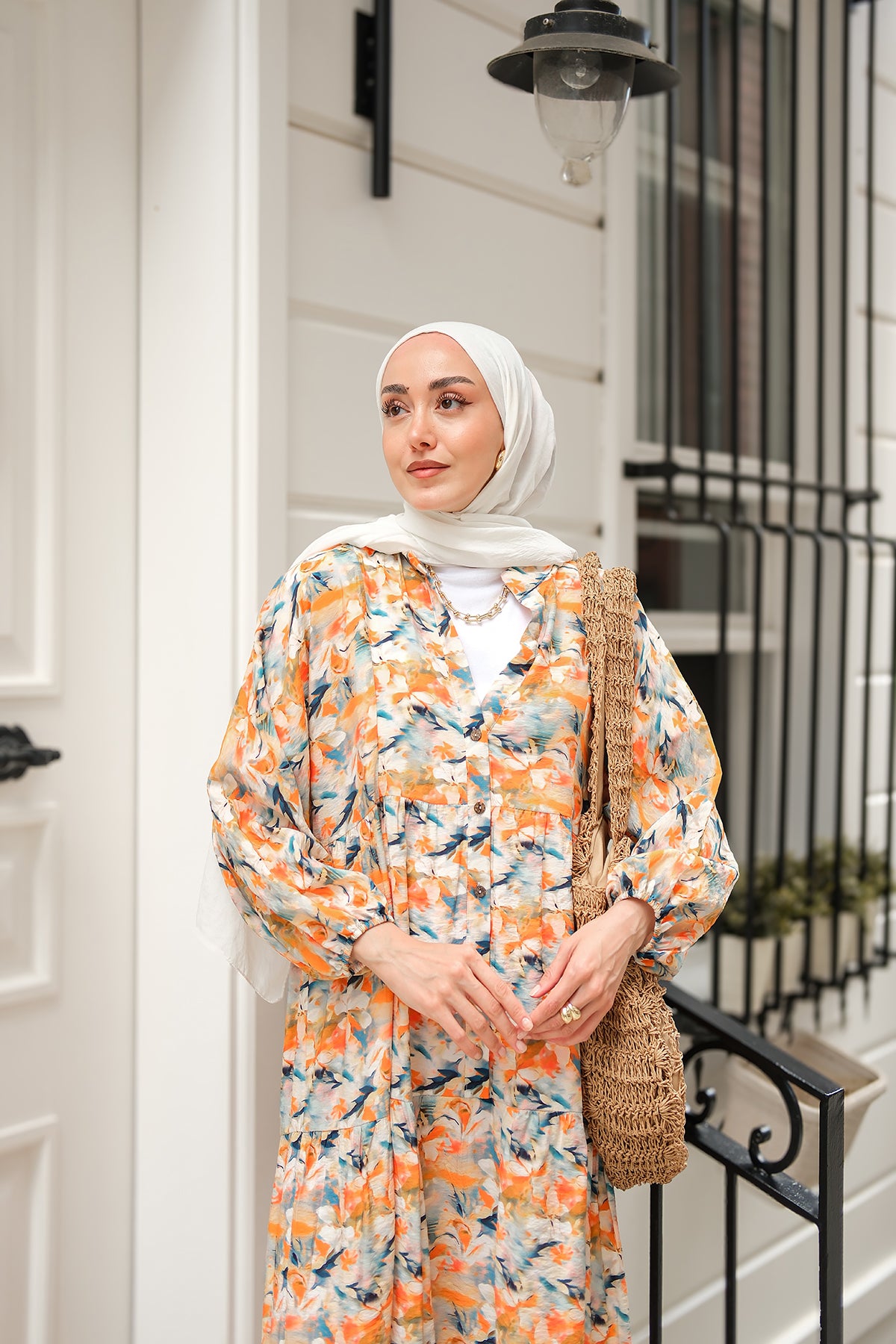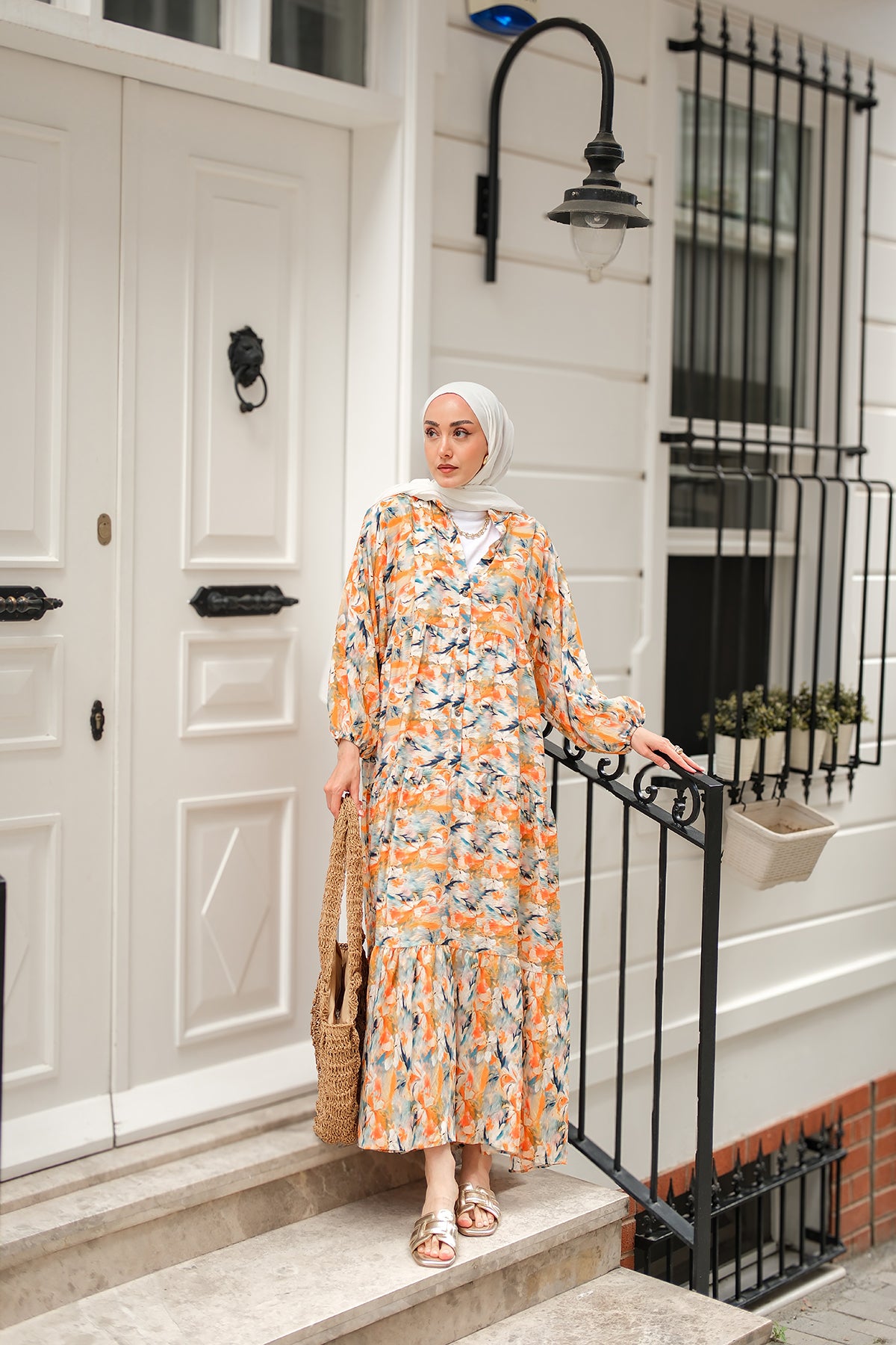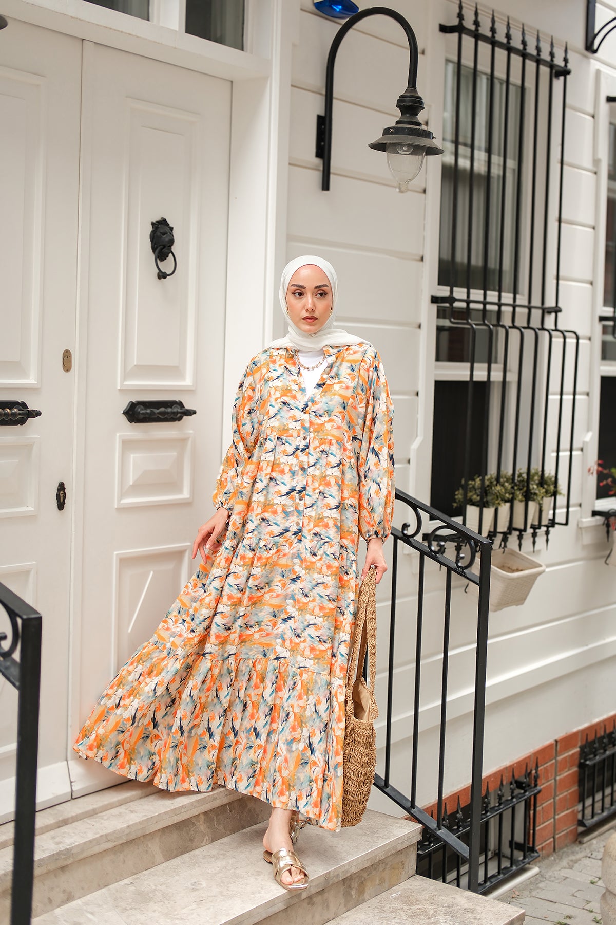 Floral Patterned Dress - Orange