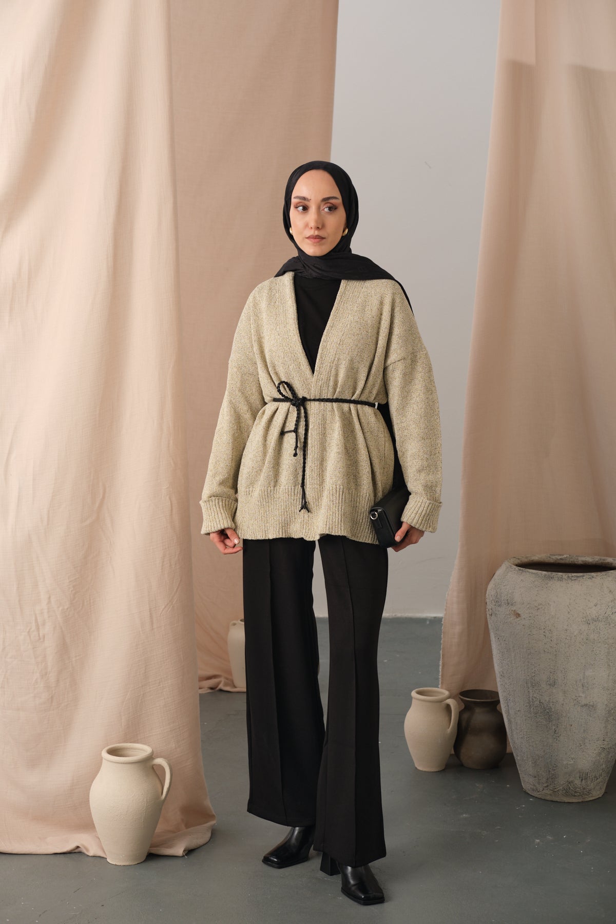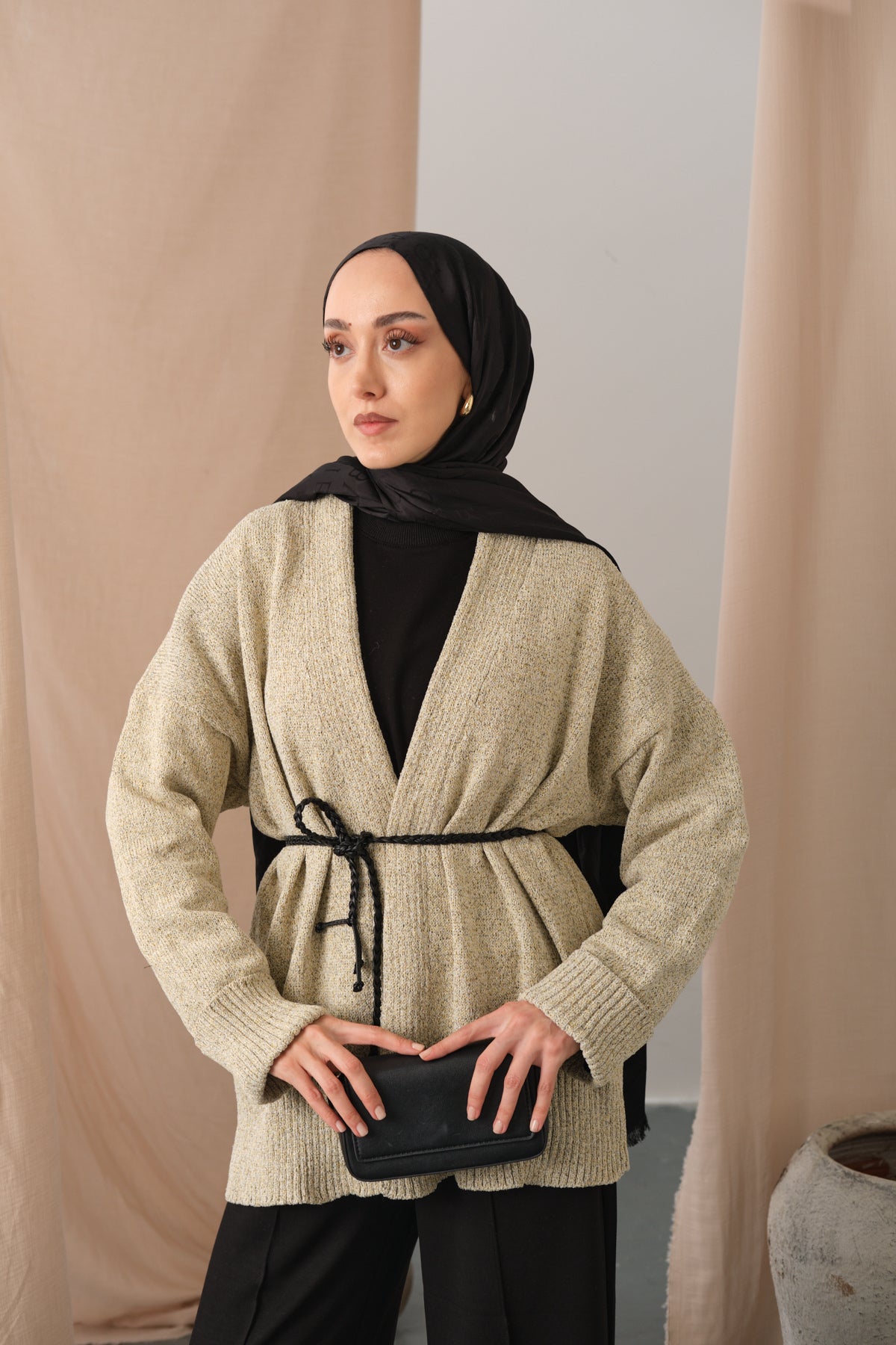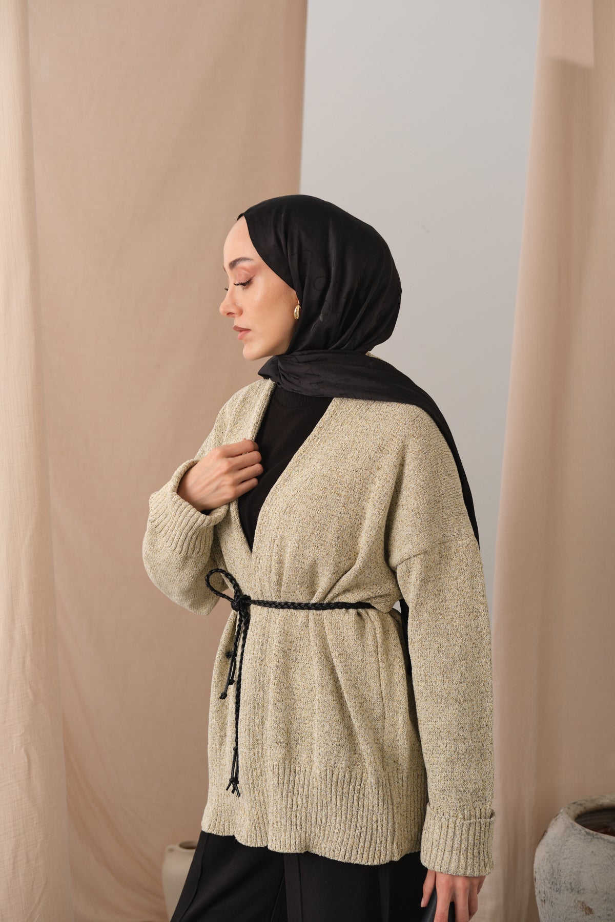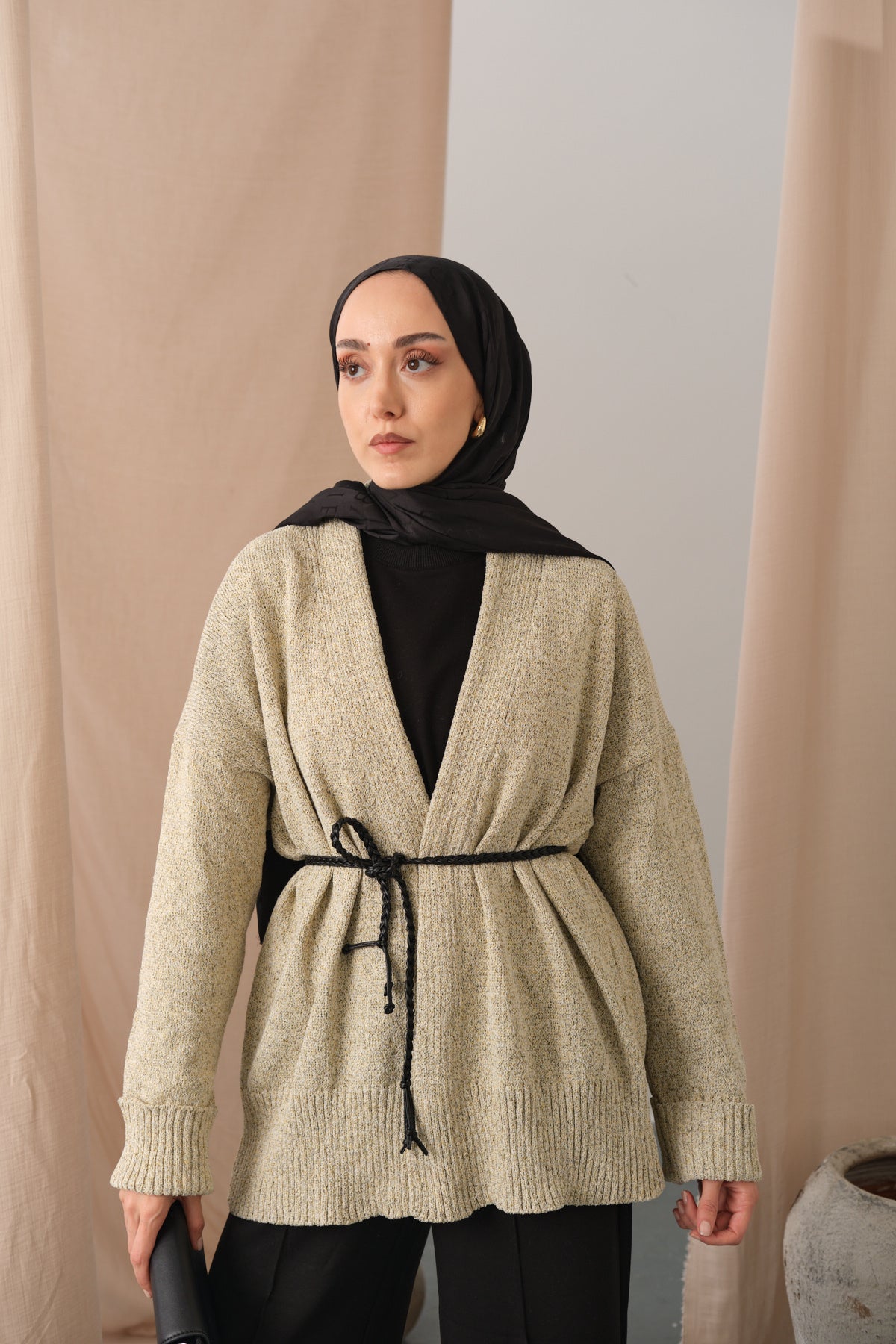 Knit Detail Waist Tie Cardigan – Cream