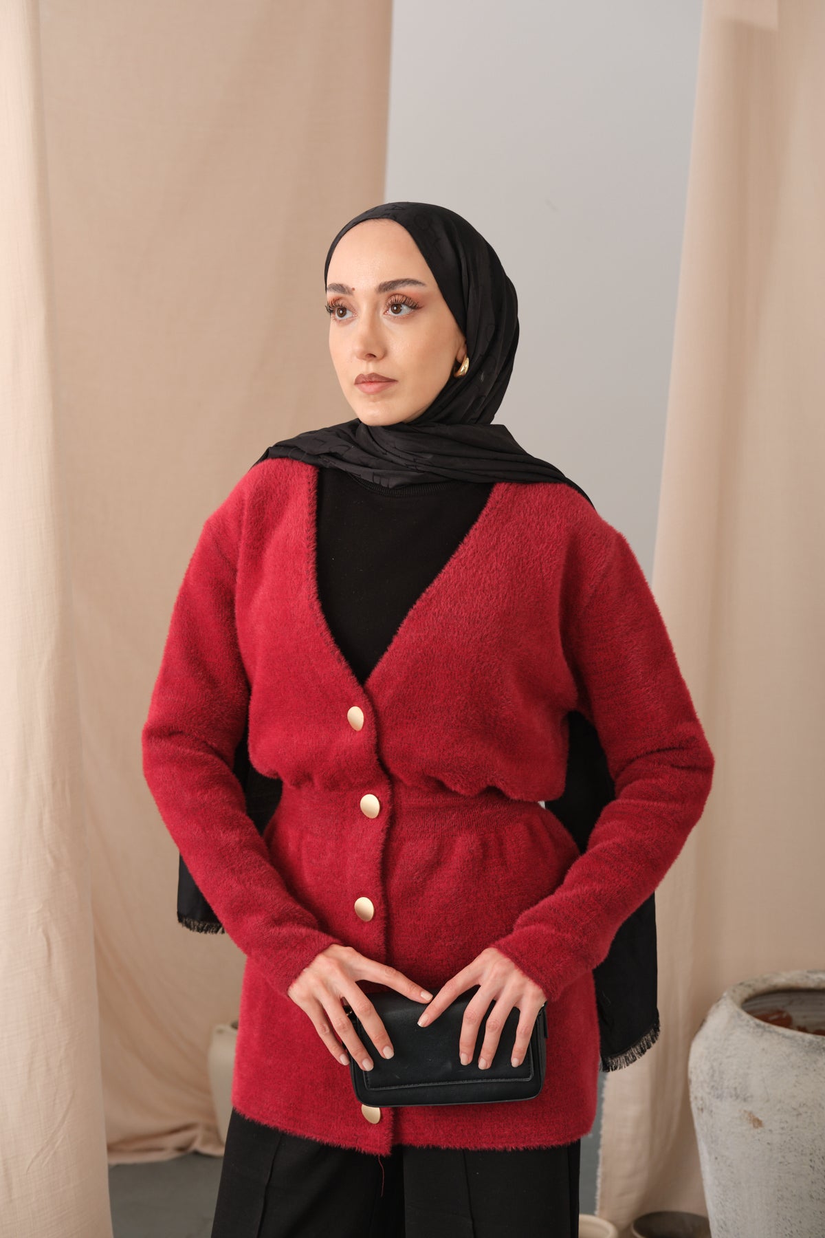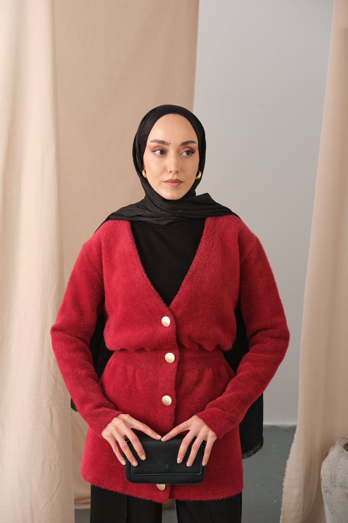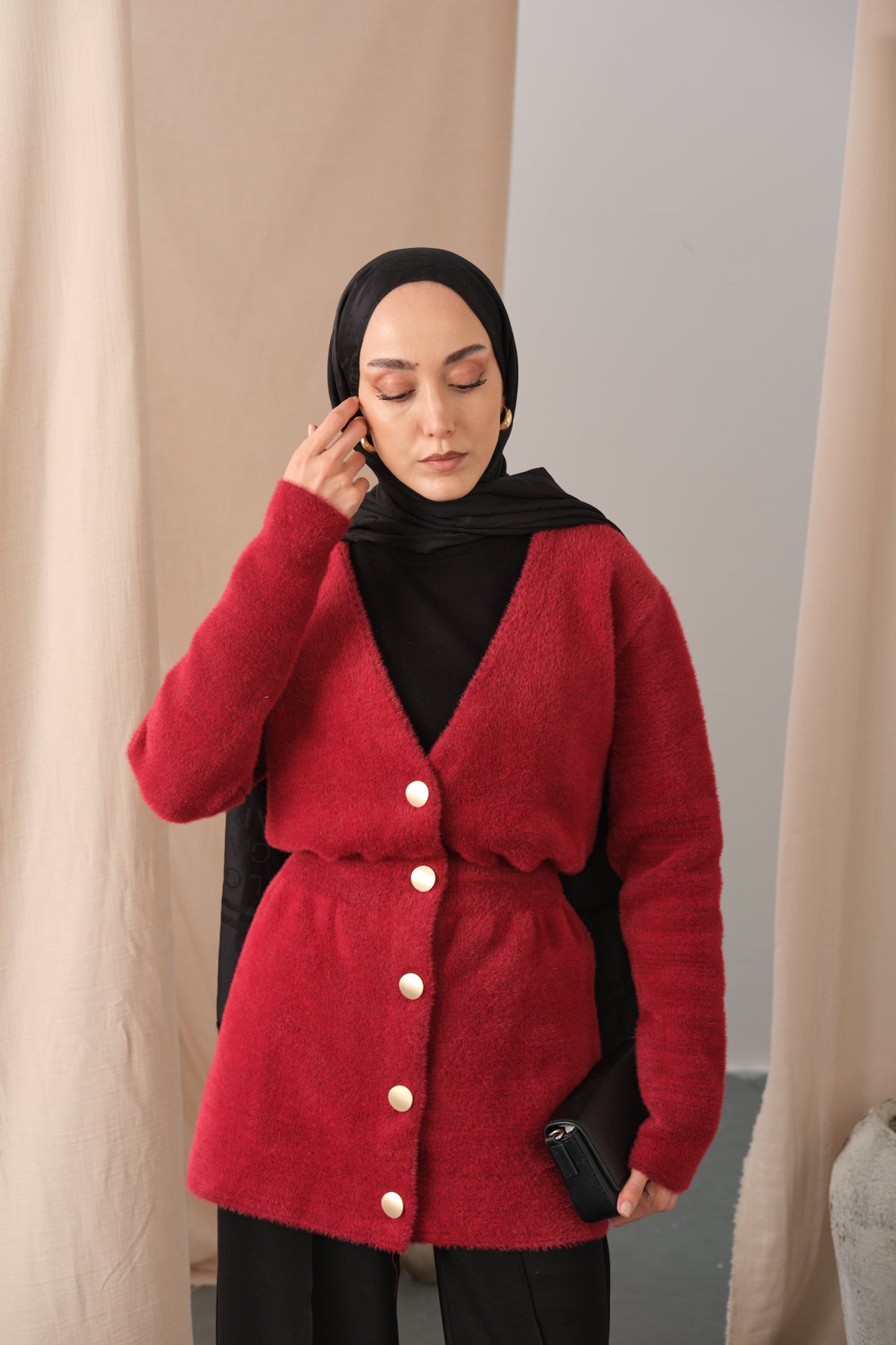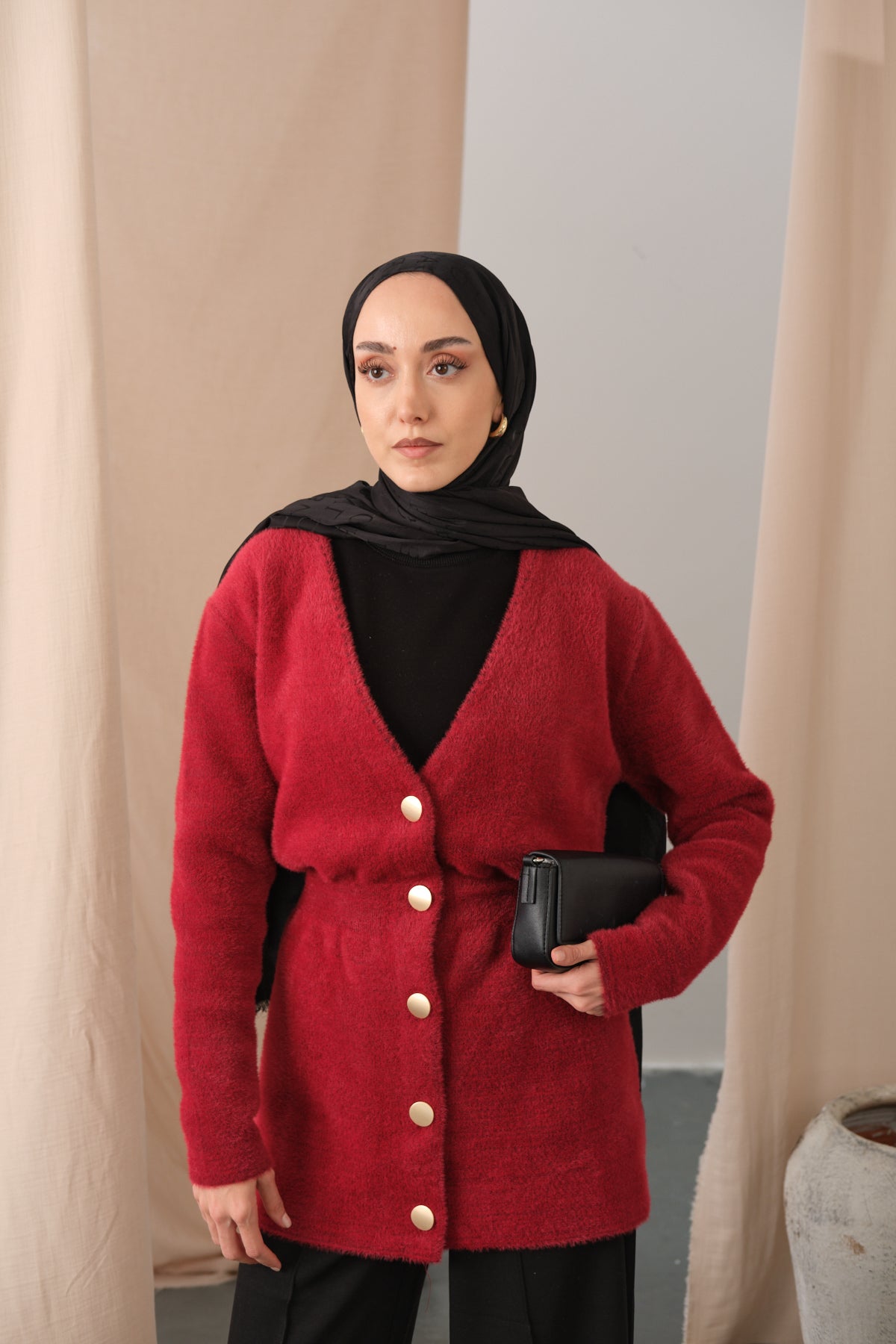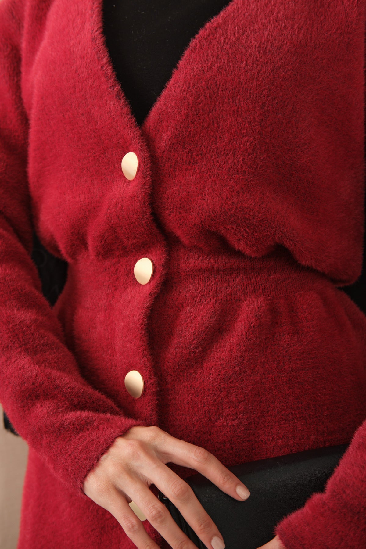 Gold Button Detail Cardigan – Red