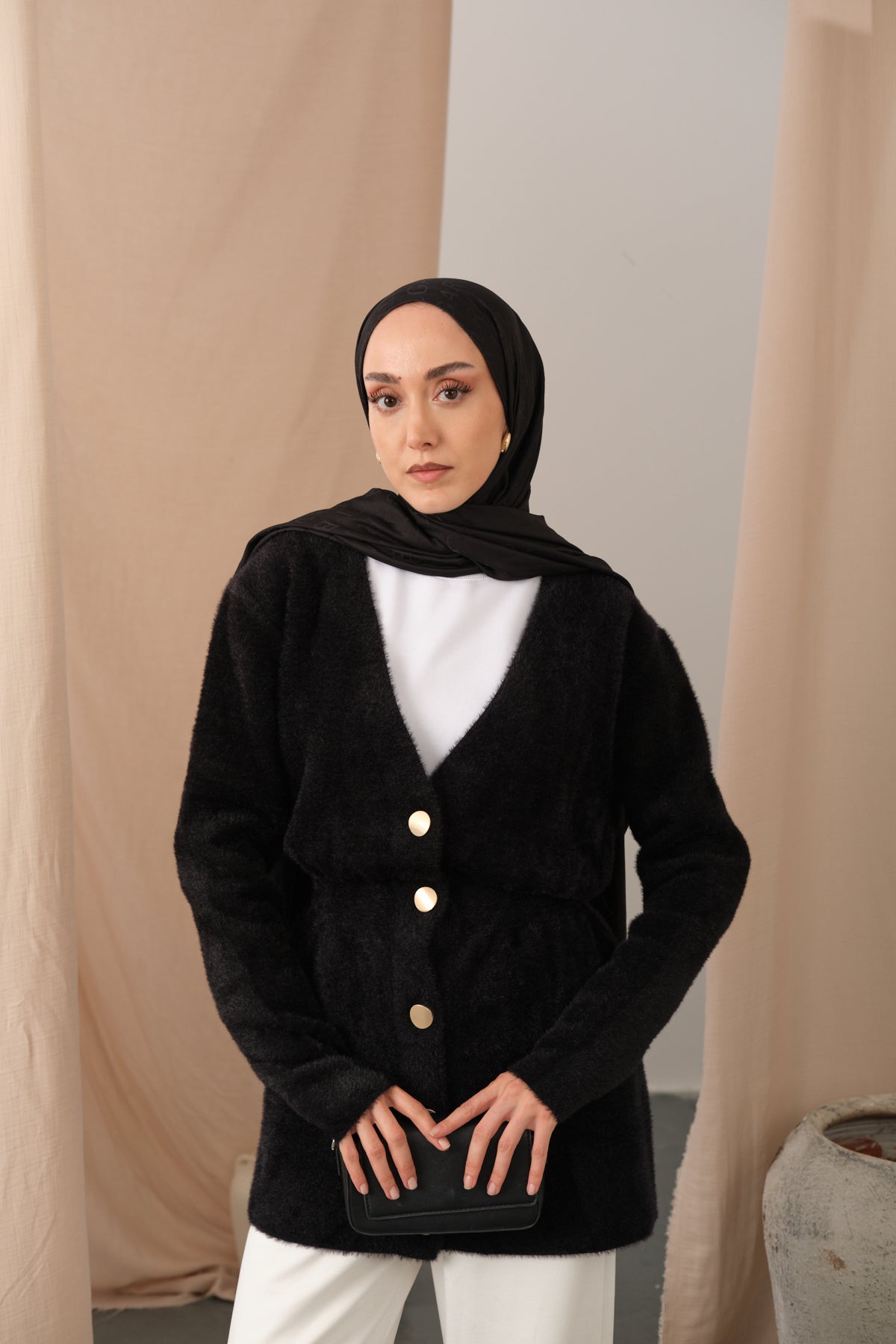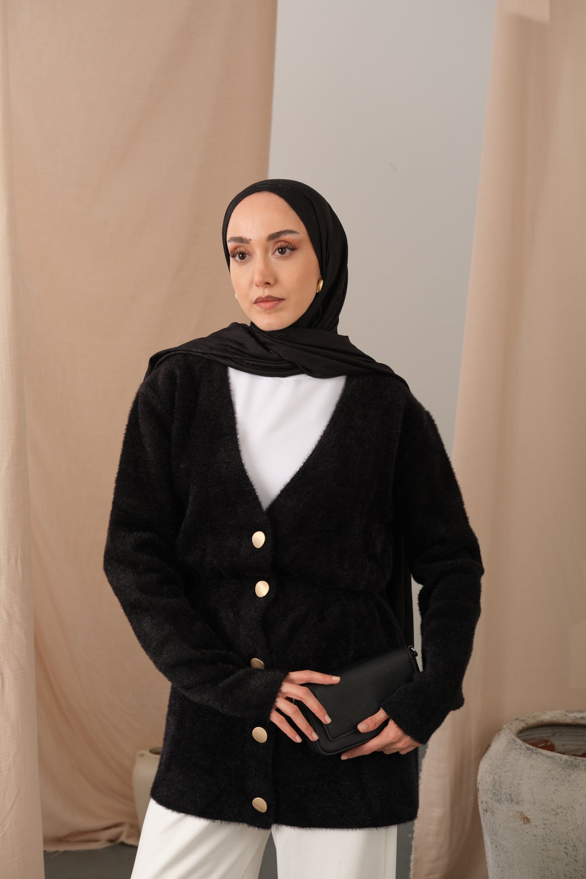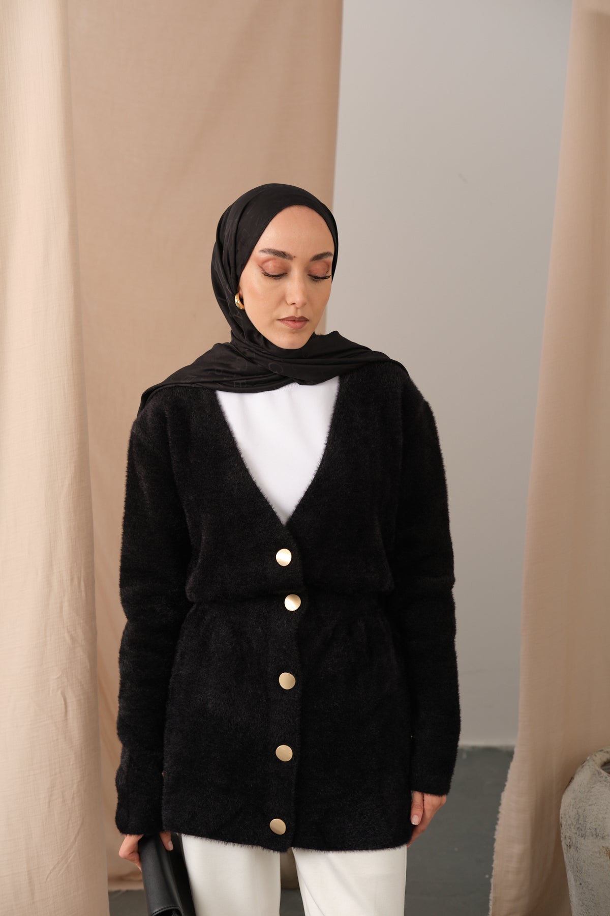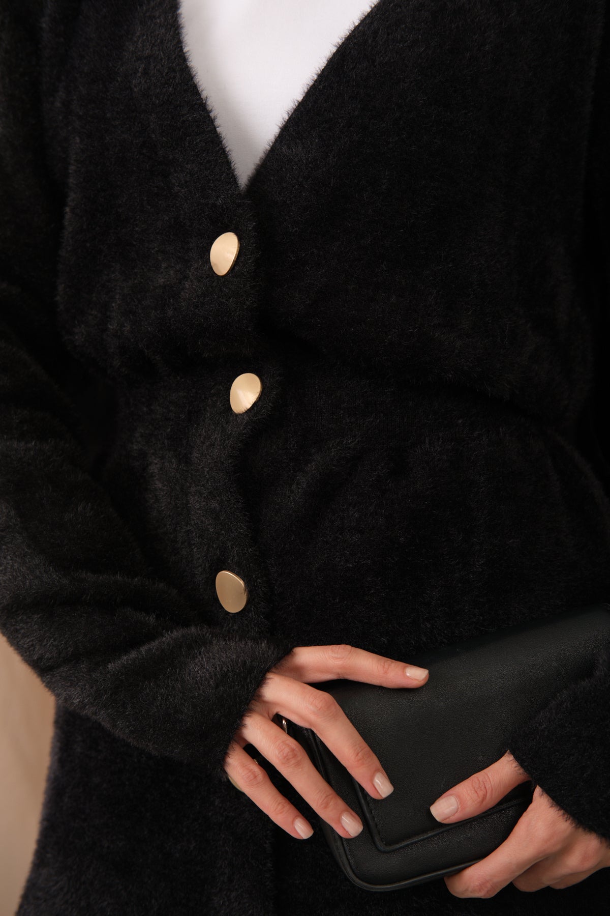 Gold Button Detail Cardigan – Black