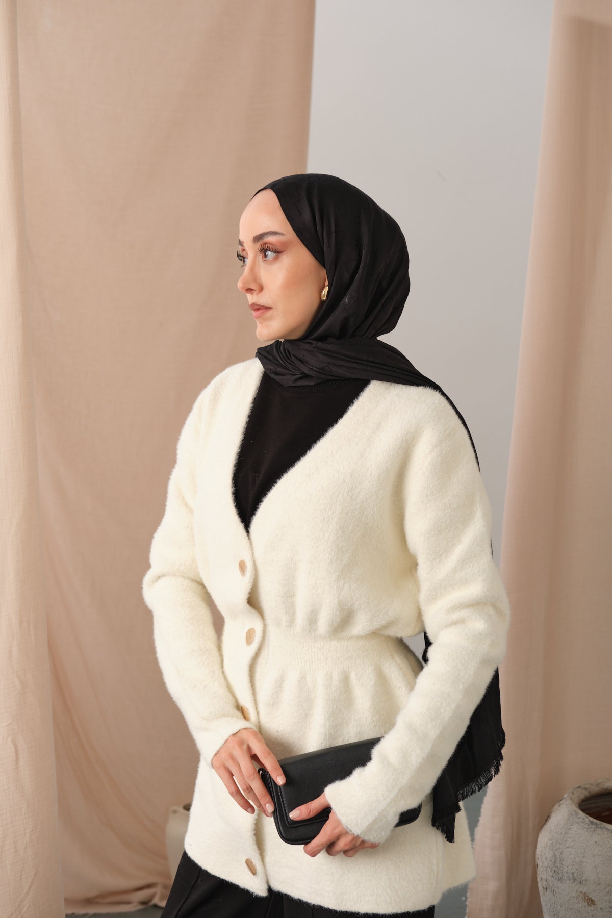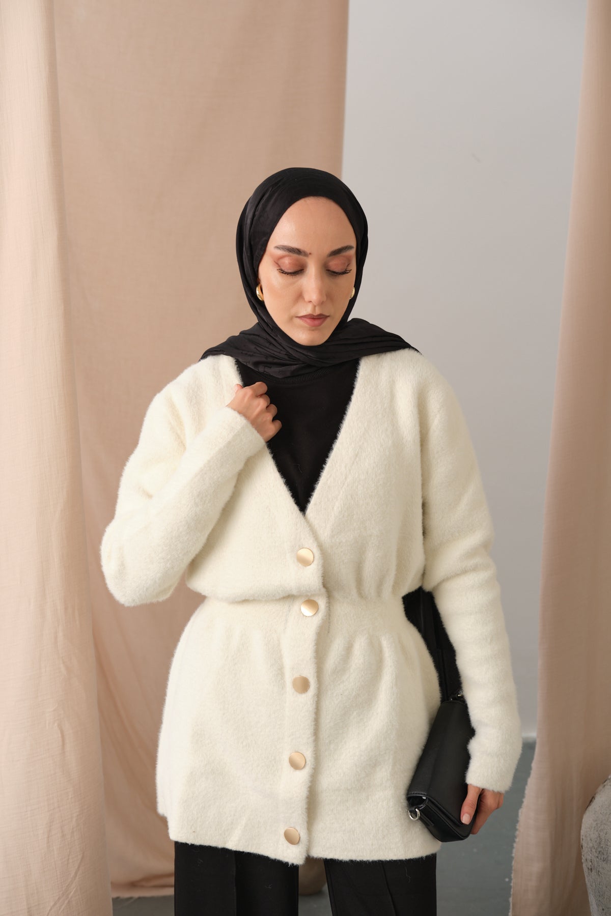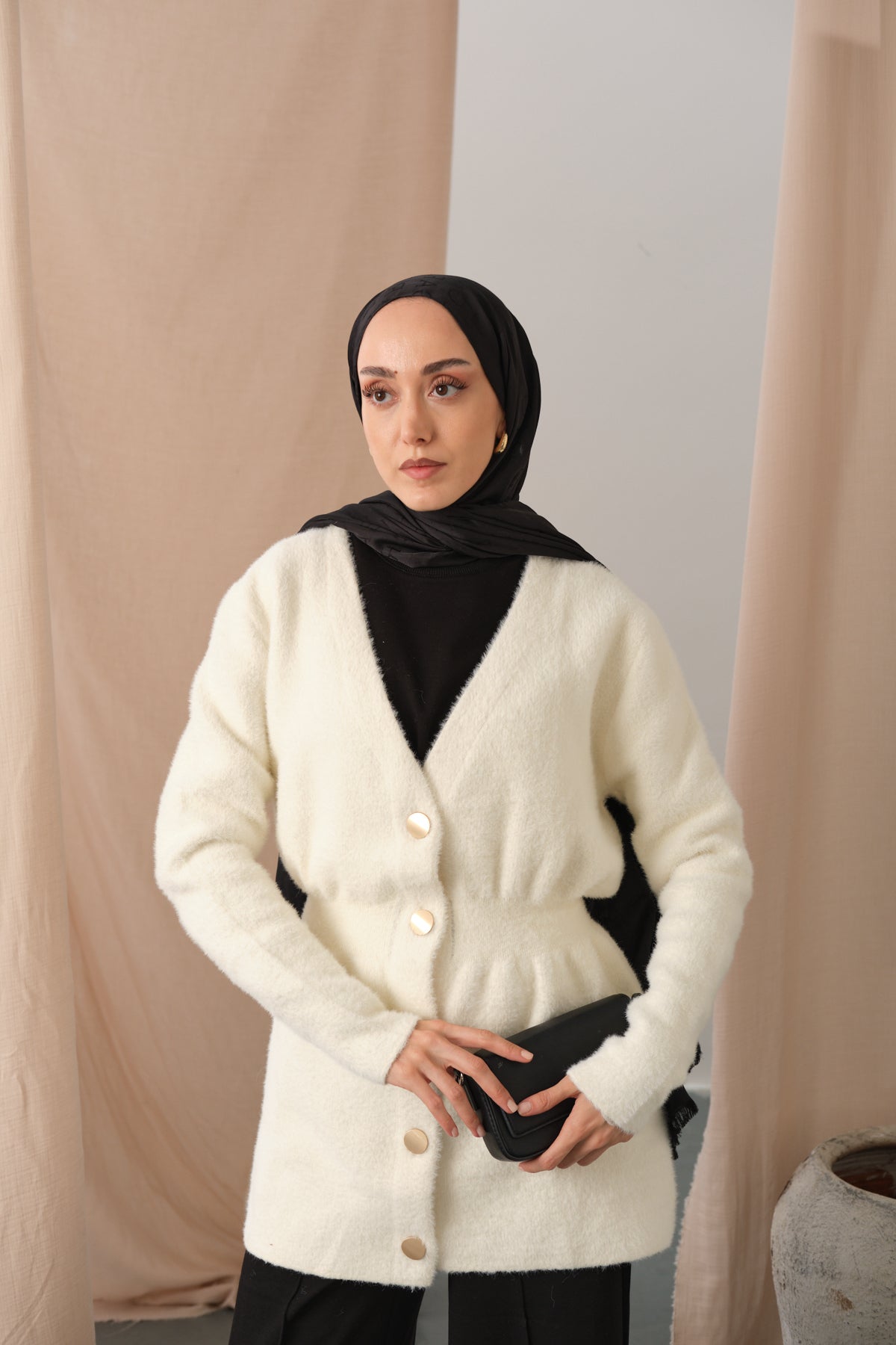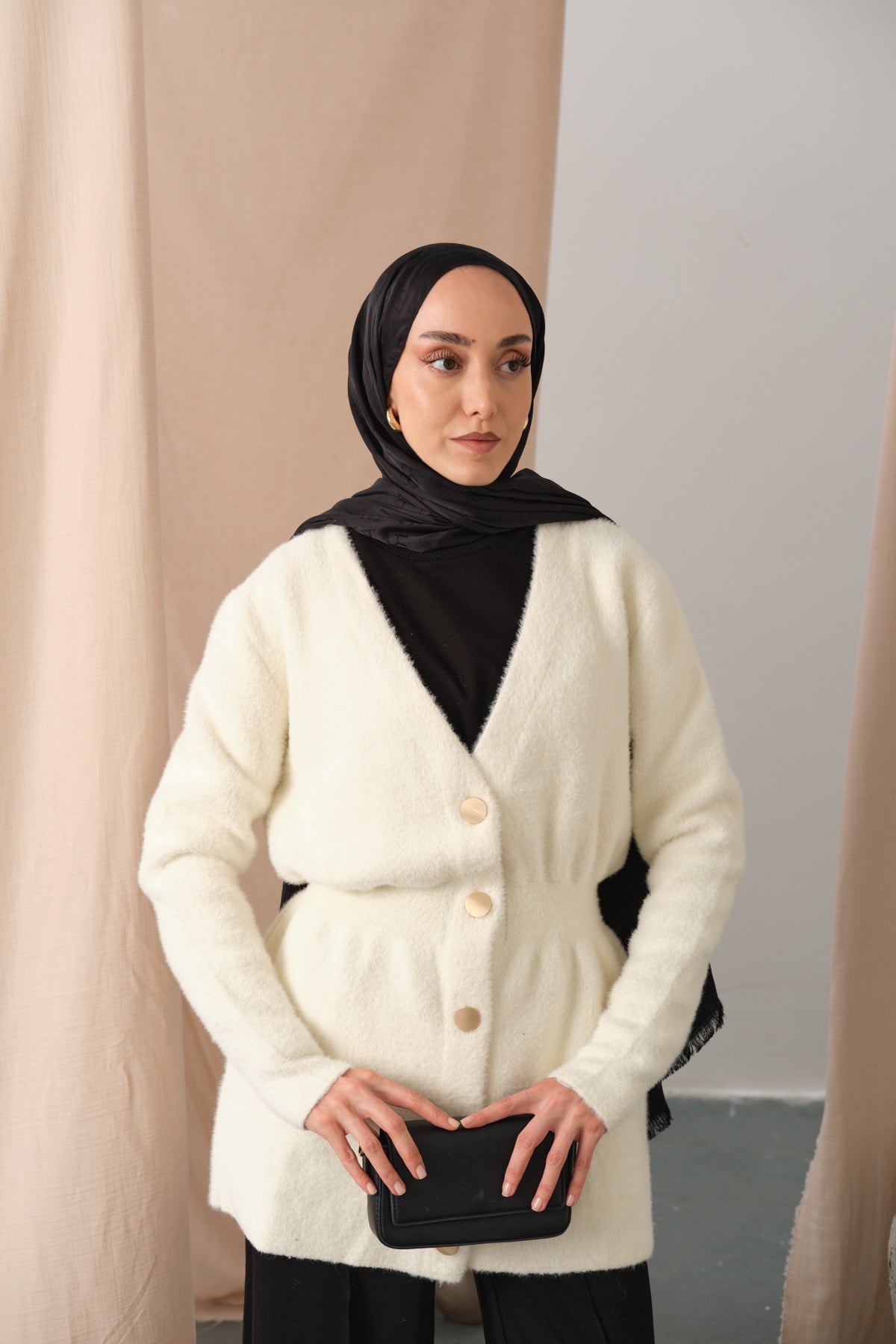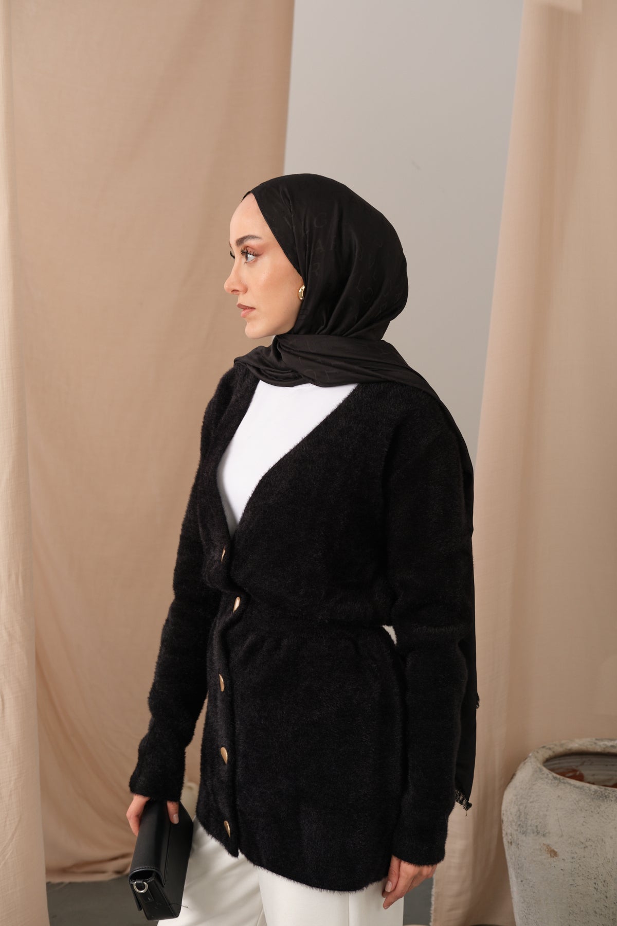 Gold Button Detail Cardigan – Black