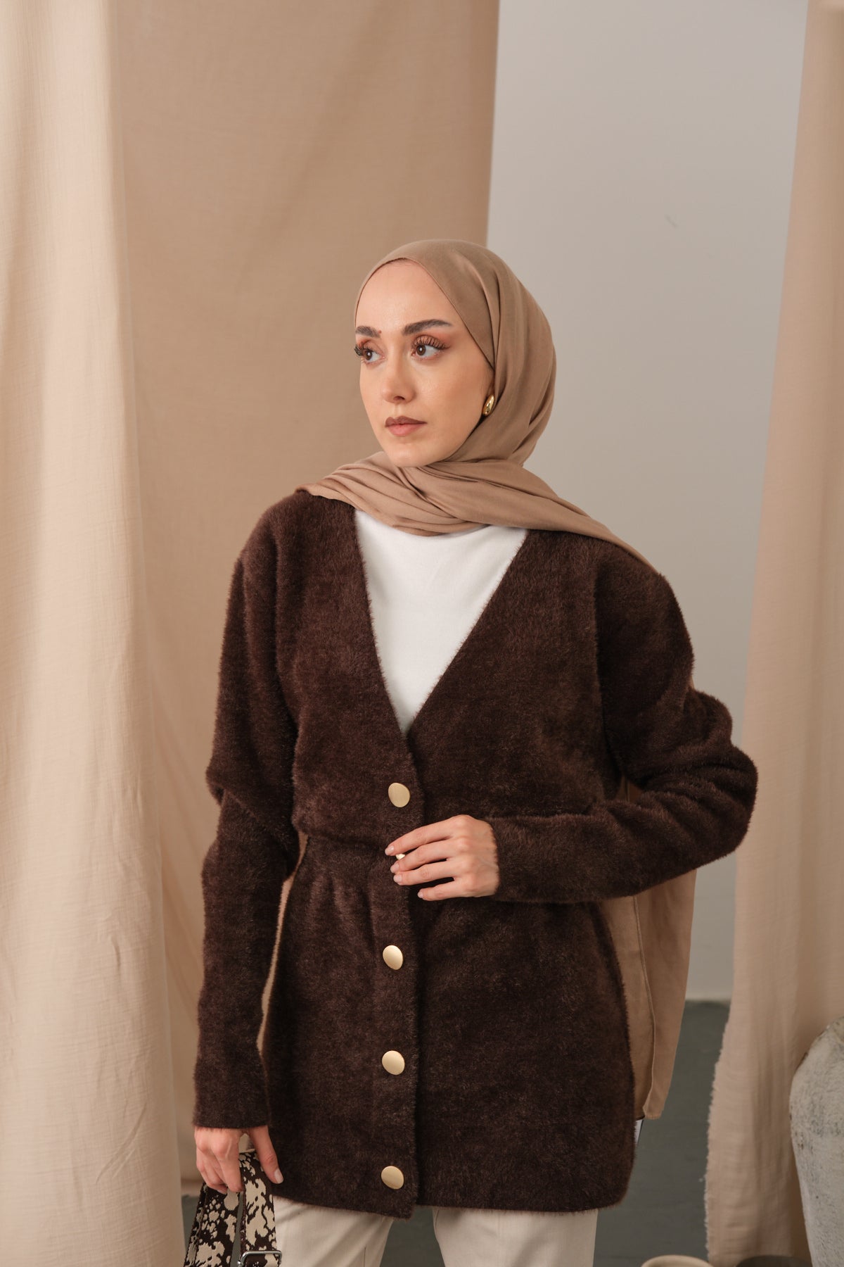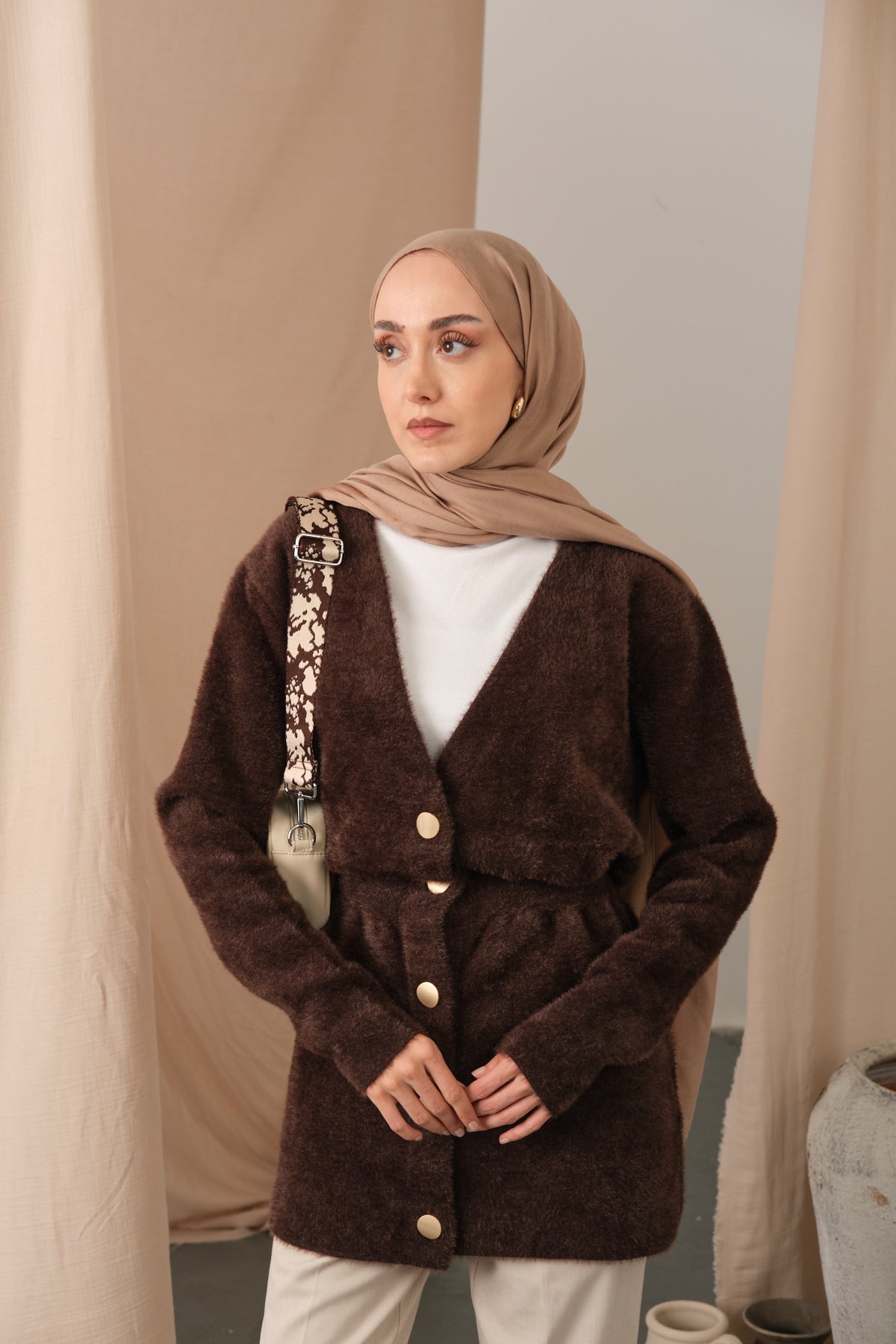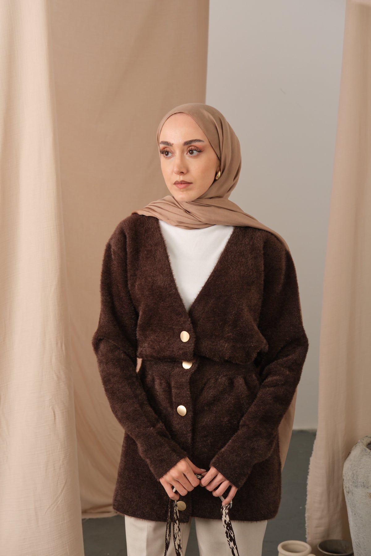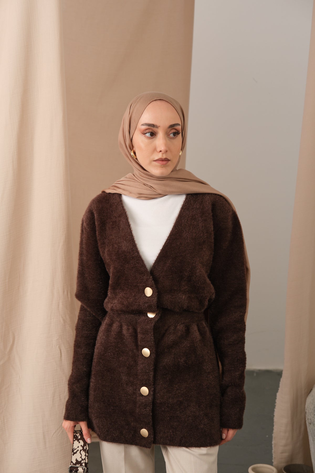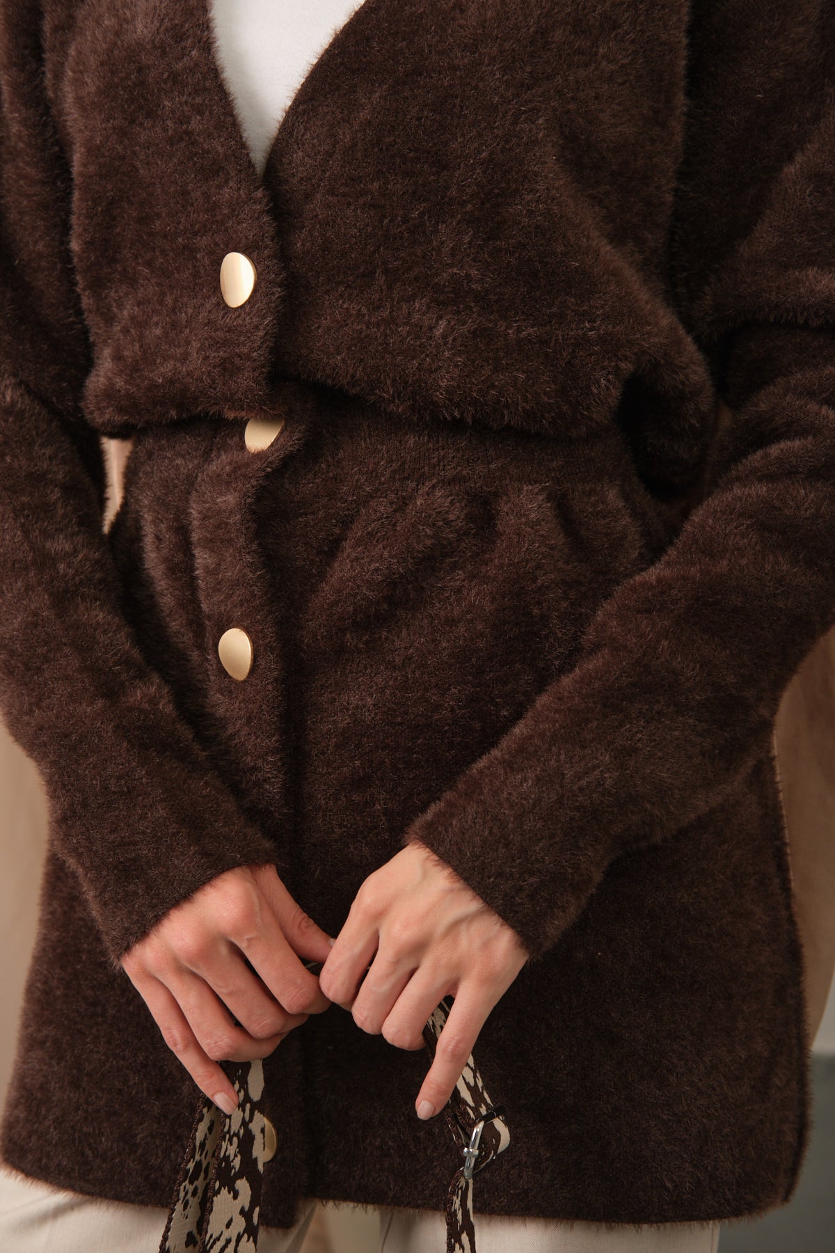 Gold Button Detail Cardigan – Brown