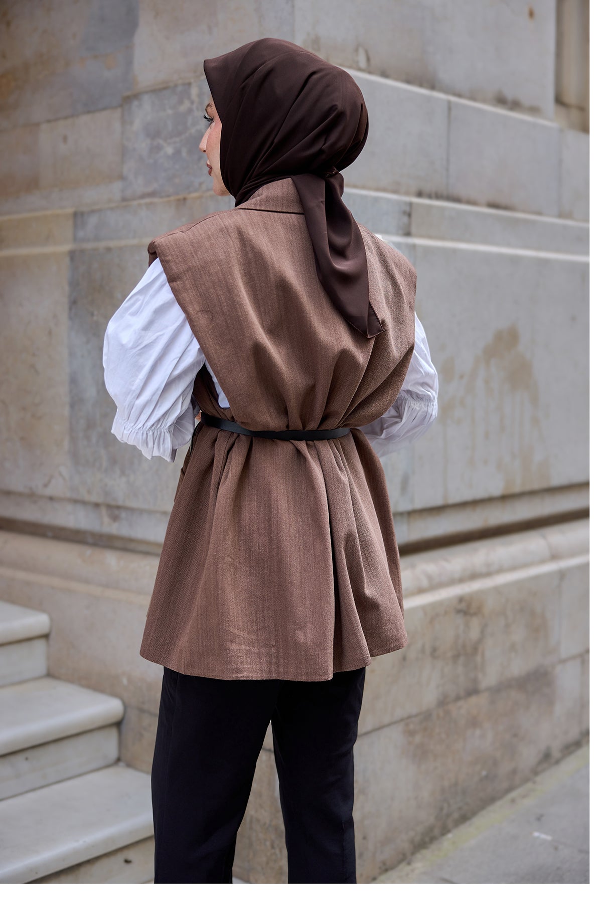 Shoulders With Padding Detail Linen Vest Brown