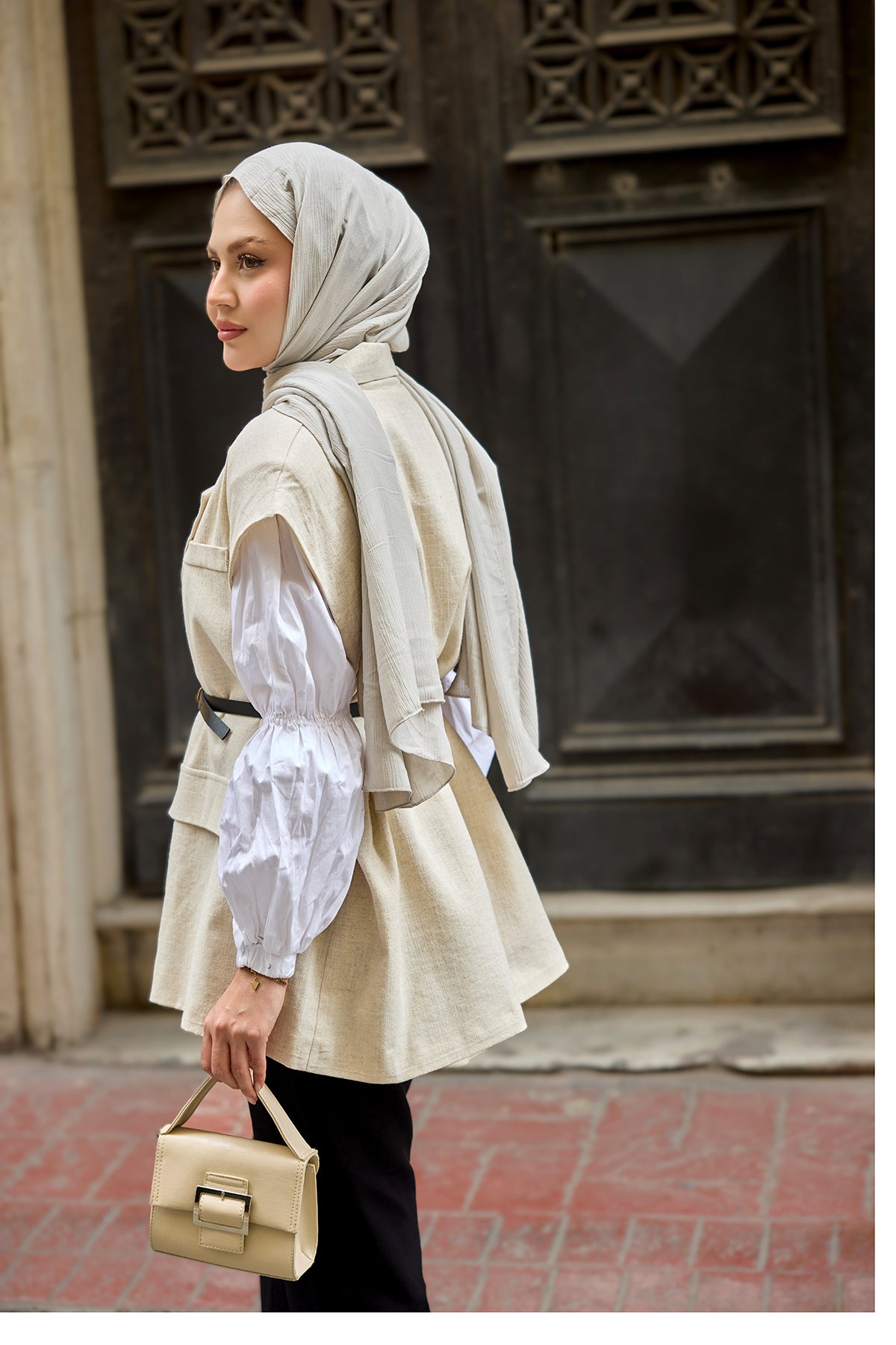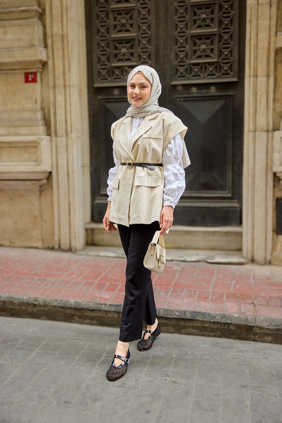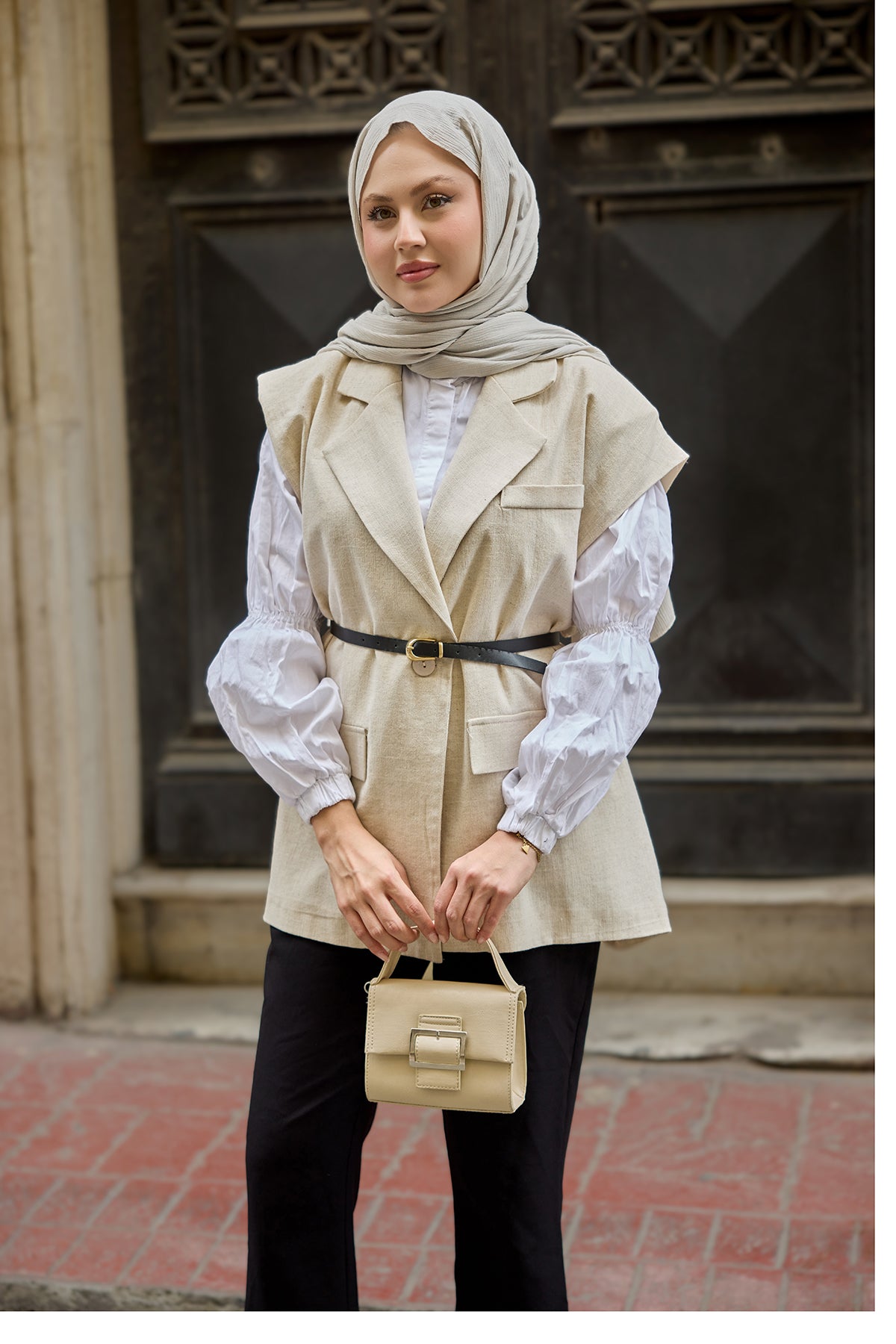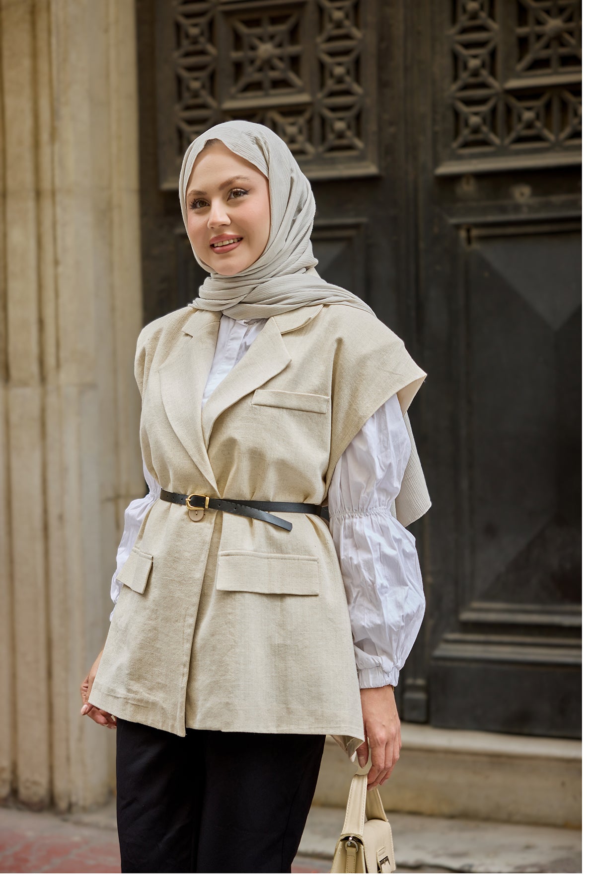 Waist-Tie Wool Vest – Cream