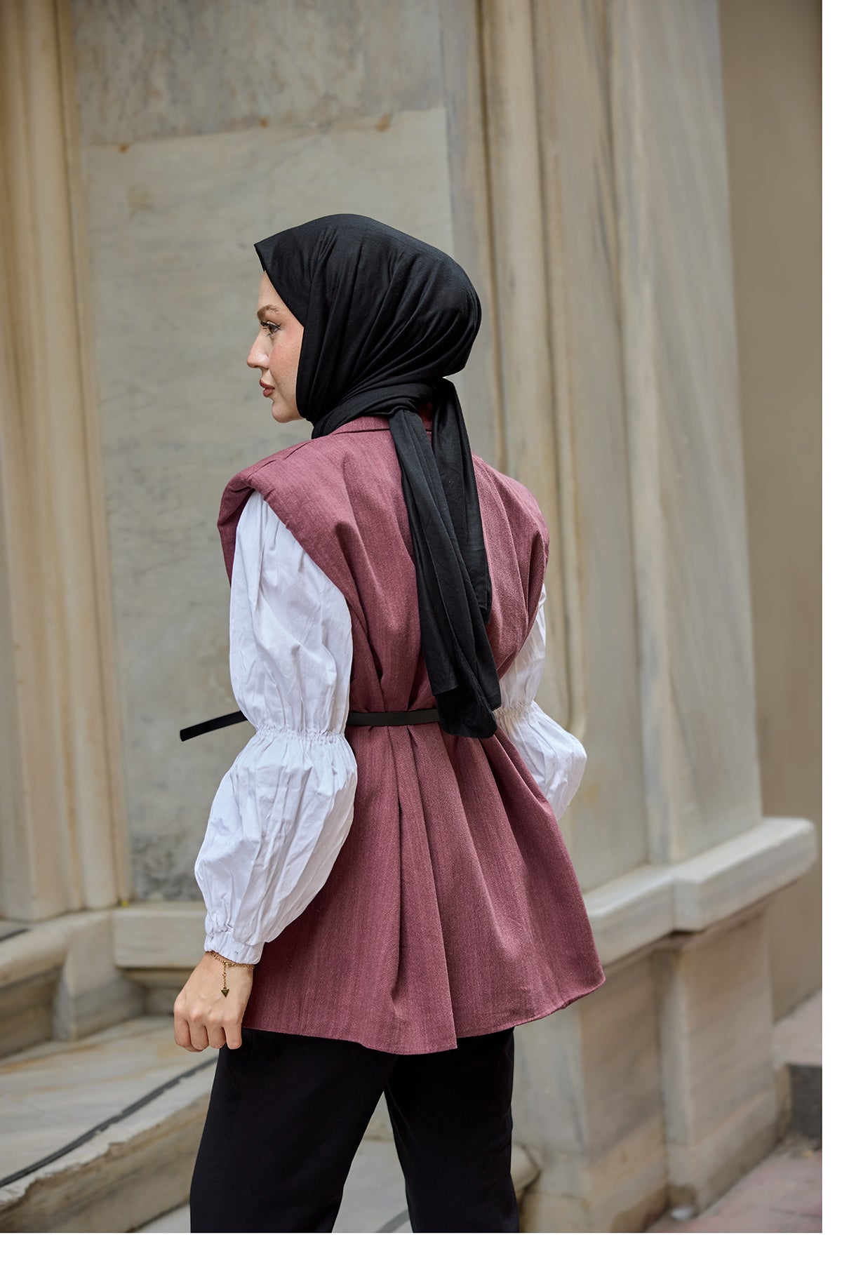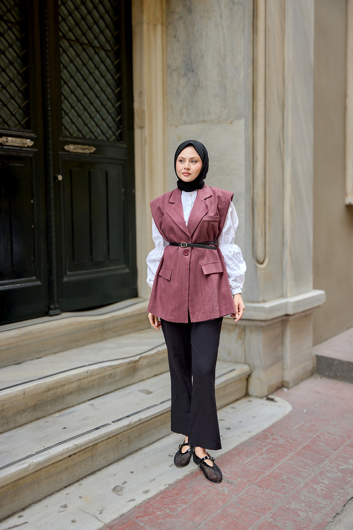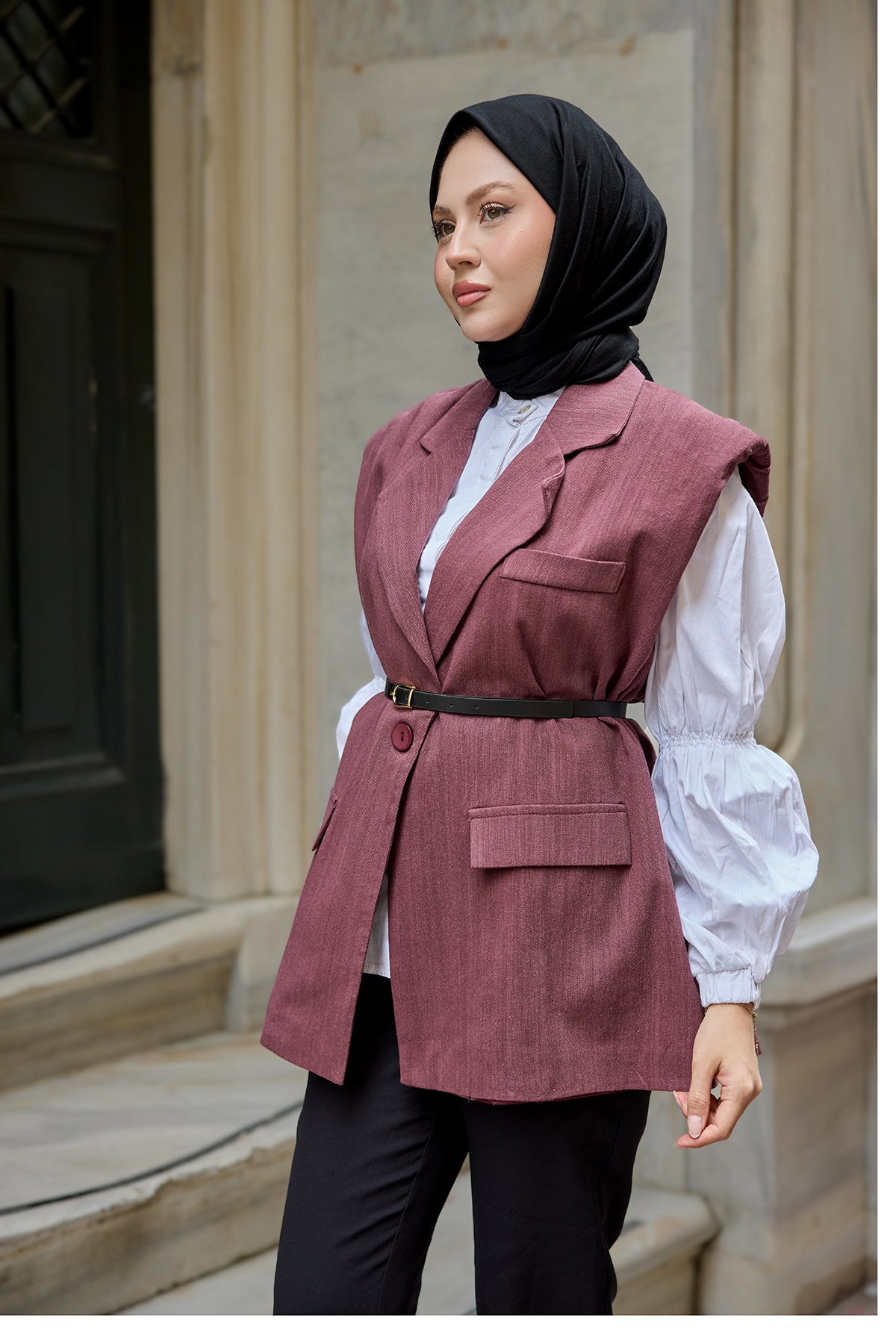 Waist-Tie Wool Vest – Burgundy