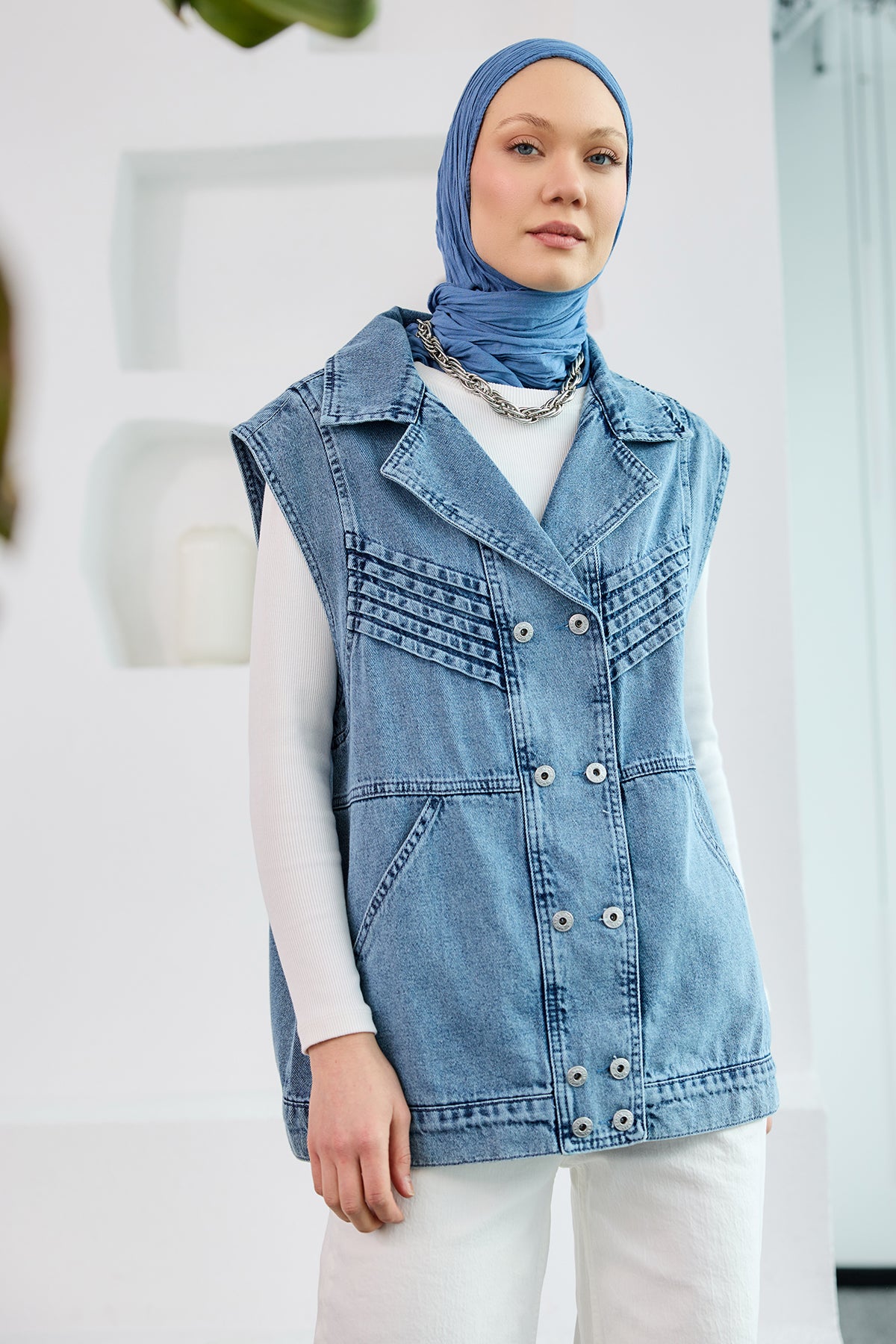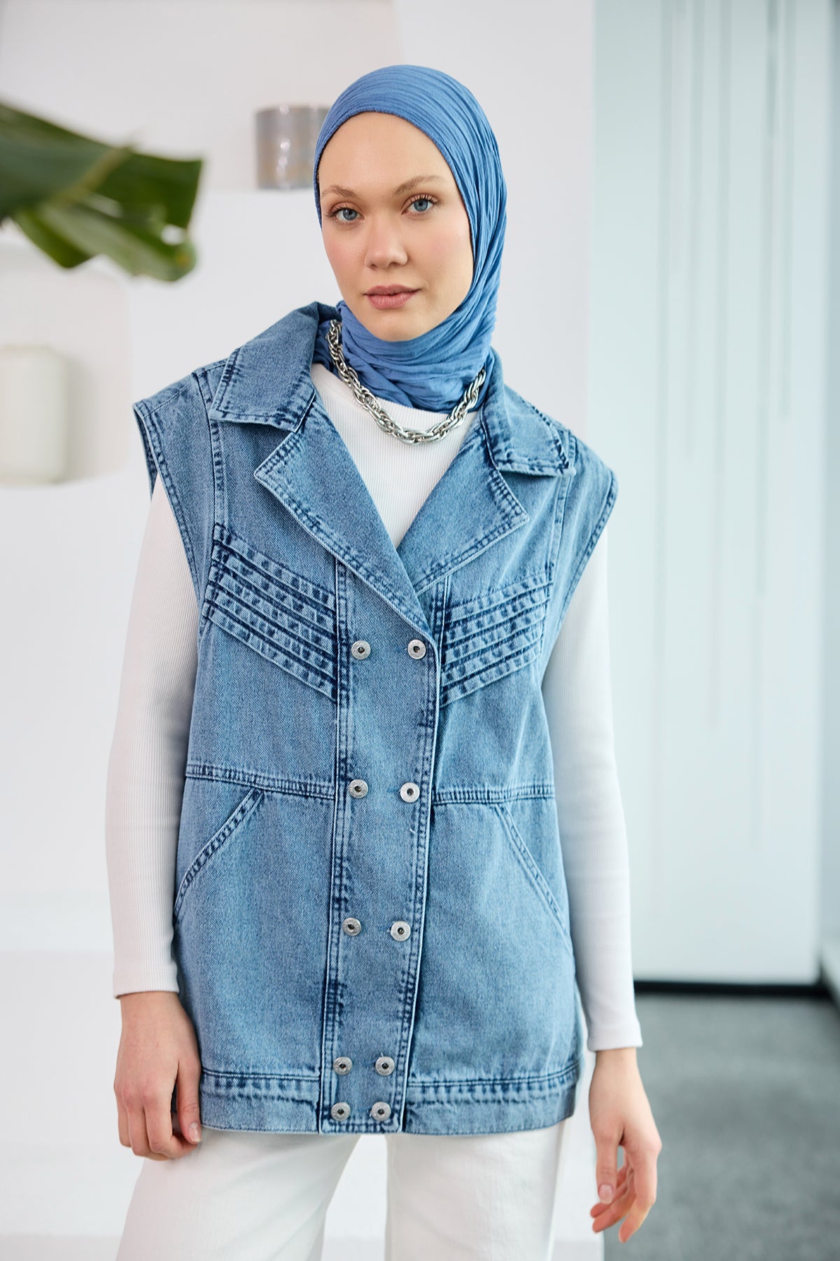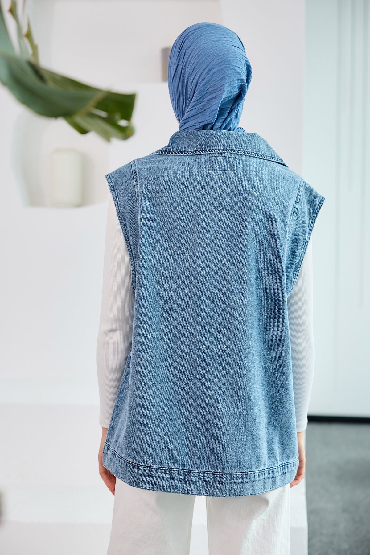 Lapel Collar Jean Vest in Blue