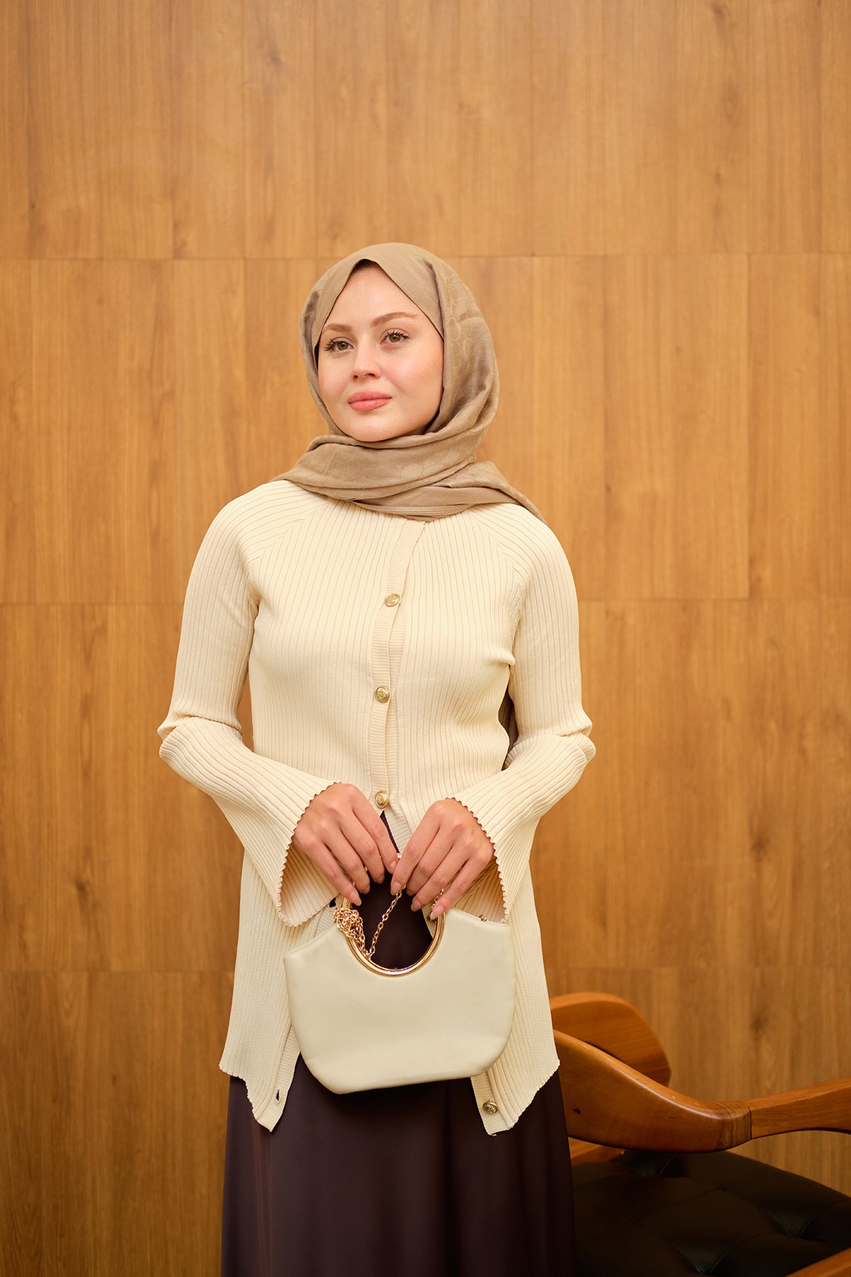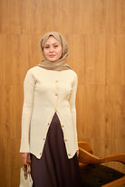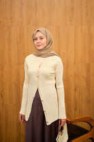 Kabartma Çizgi Detaylı Hırka Krem