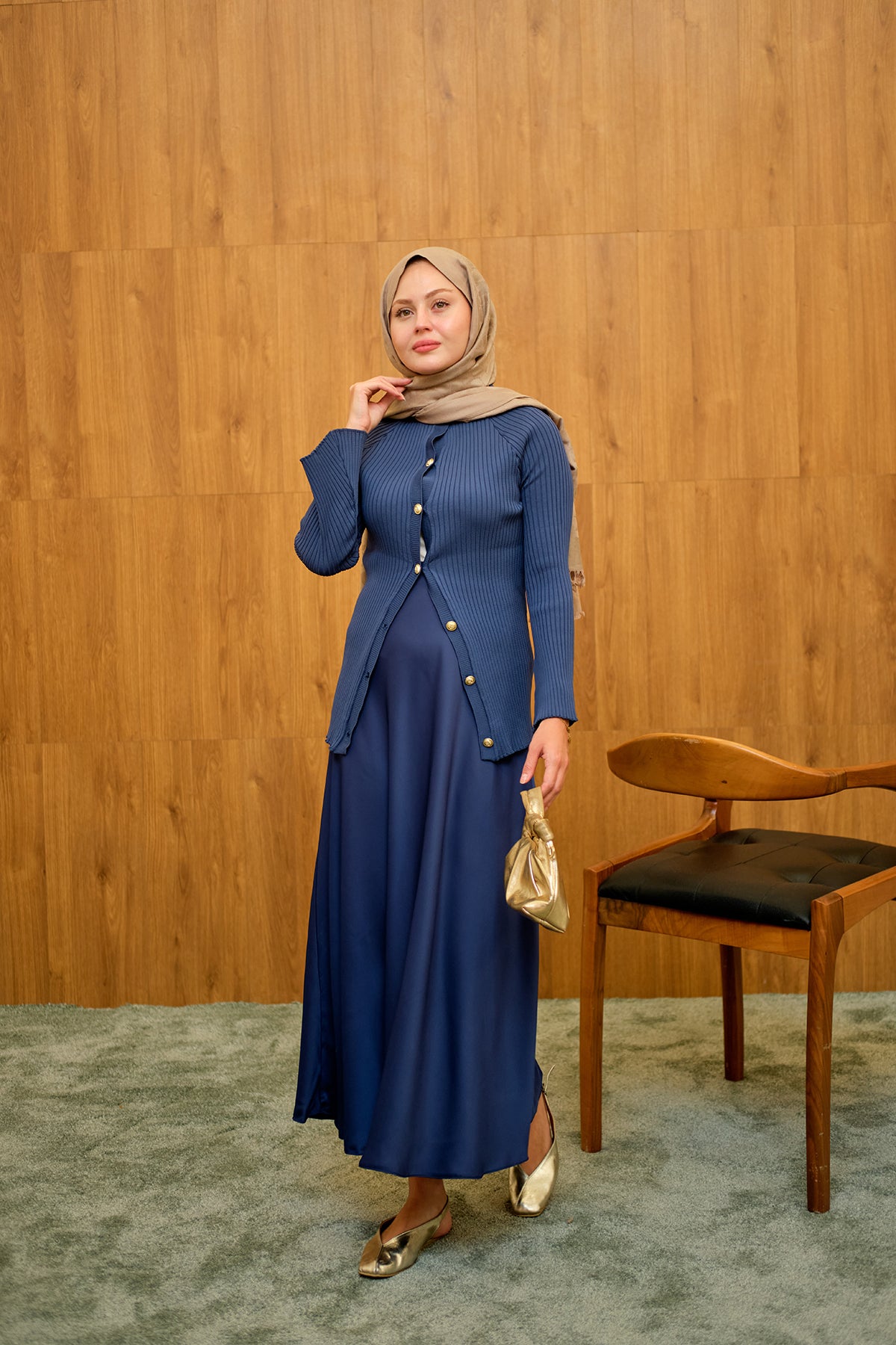 Kabartma Çizgi Detaylı Hırka Lacivert