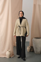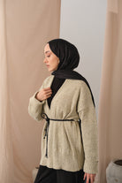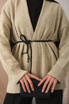 Knit Detail Waist Tie Cardigan – Cream
