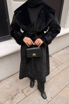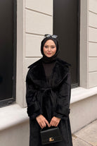 Kruvaze Yaka Bel Bağlamalı Kaban Siyah