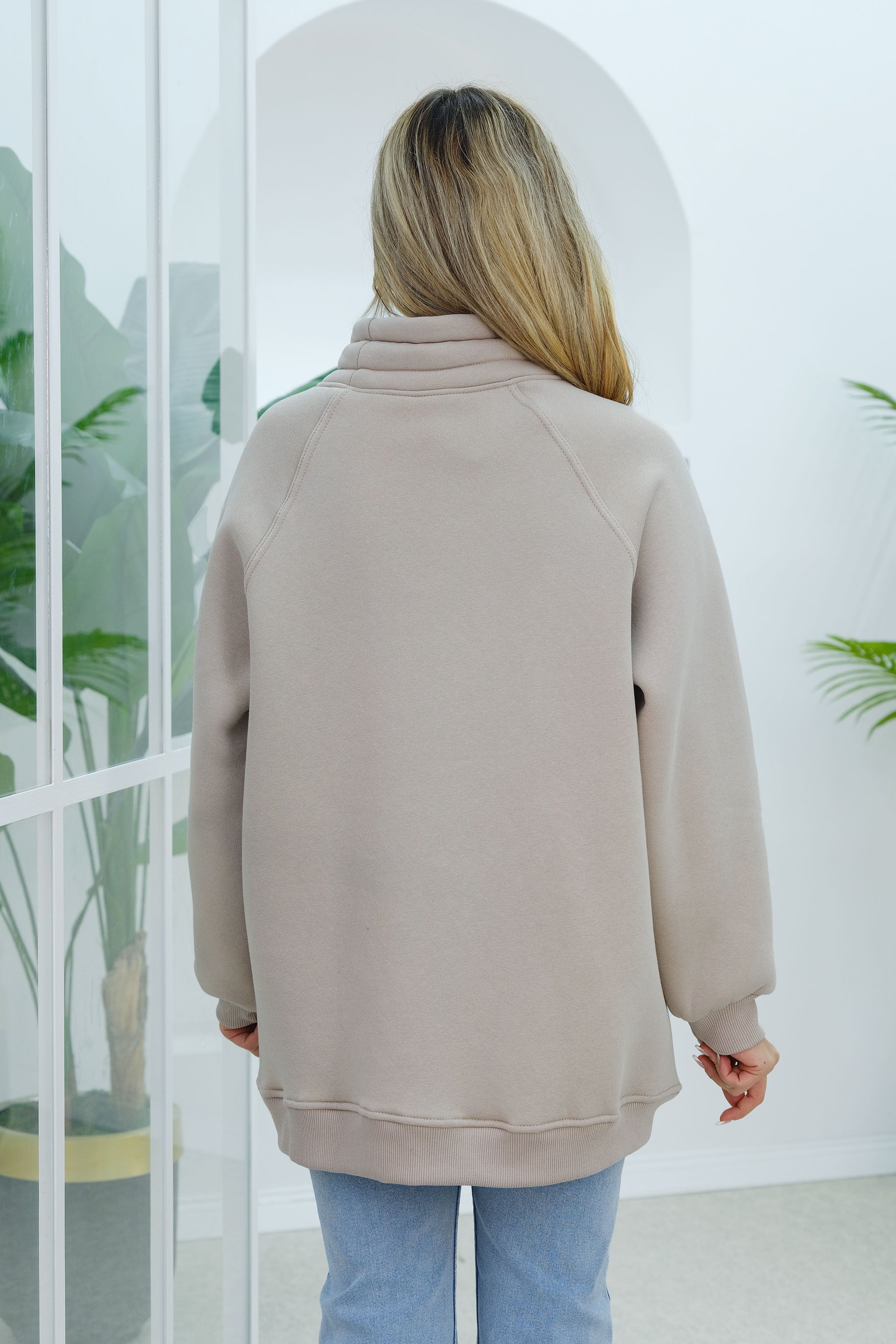 Mandarin Collar with Pocket Detail Sweatshirt in Cream