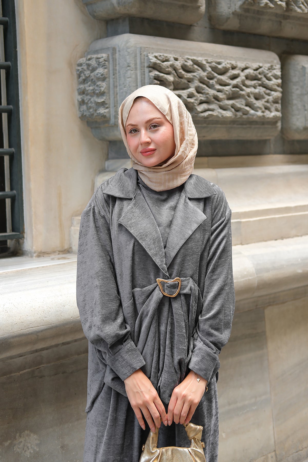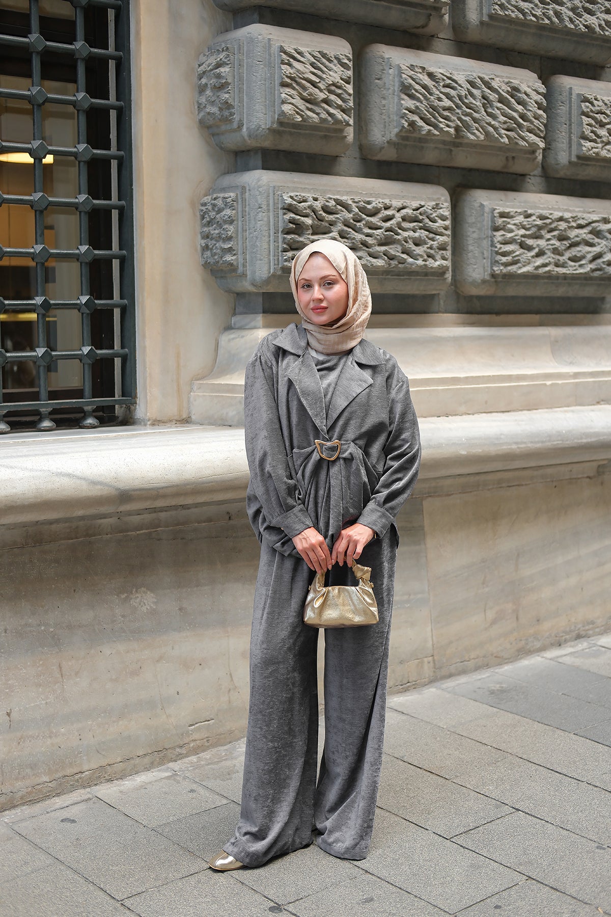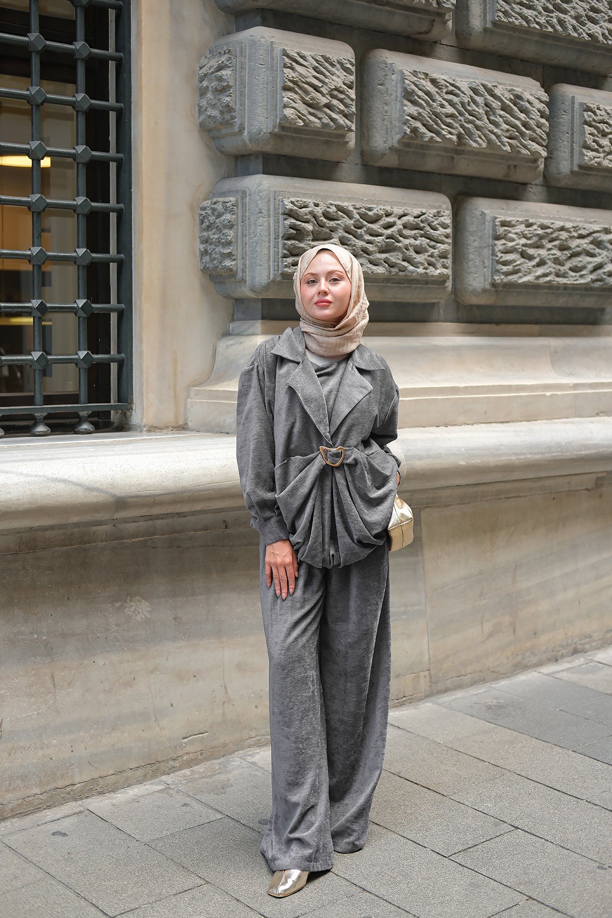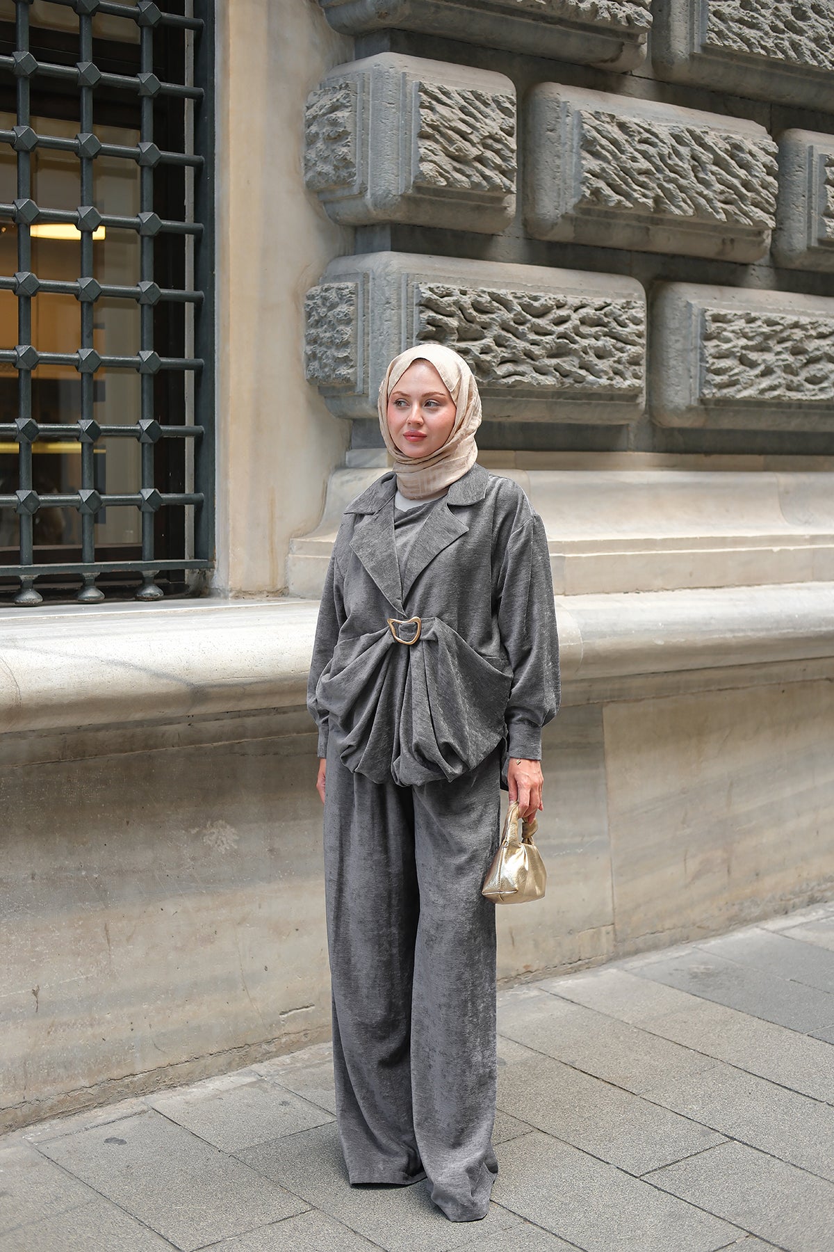 Musleya Front Pleat Detail Suede Set - Anthracite