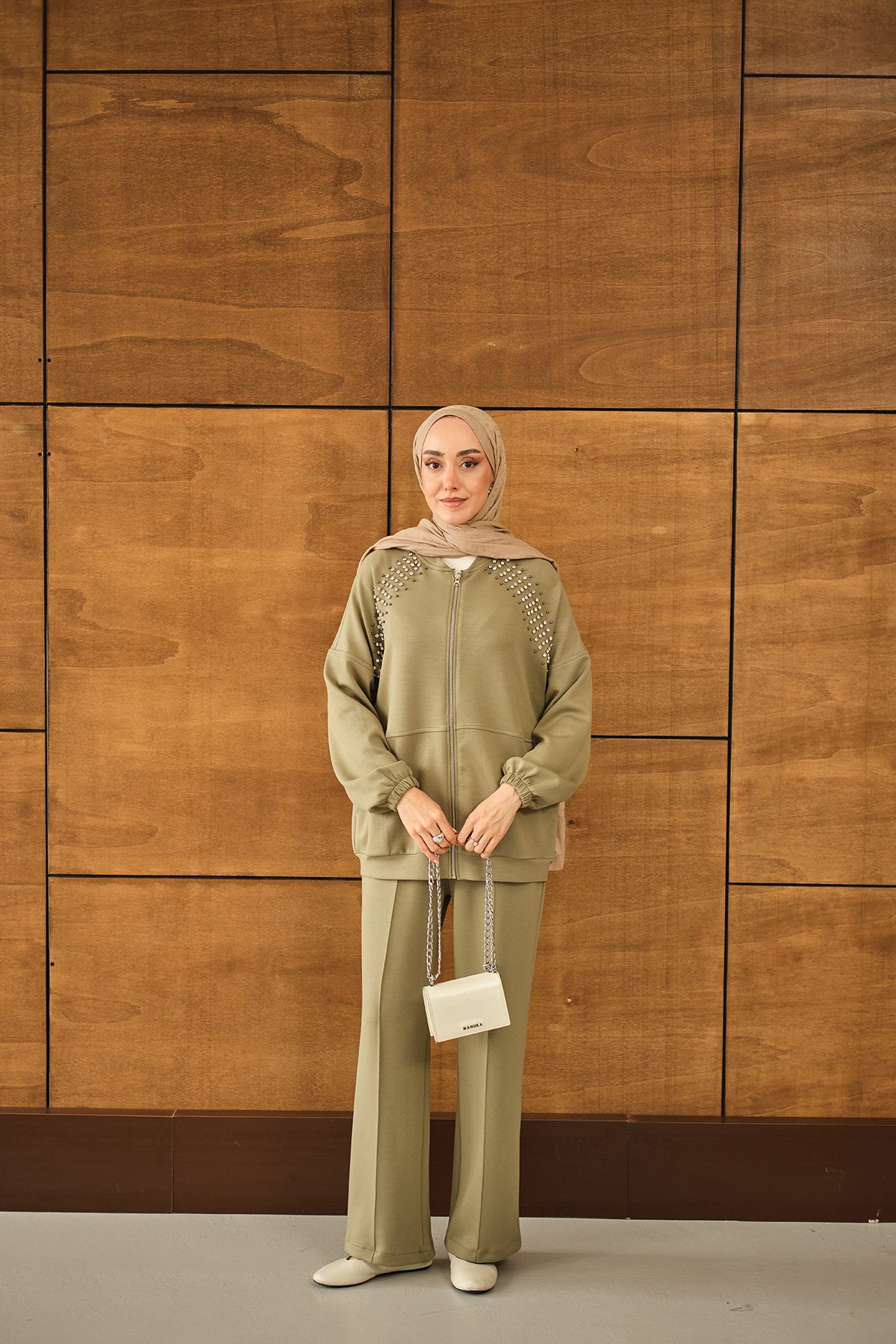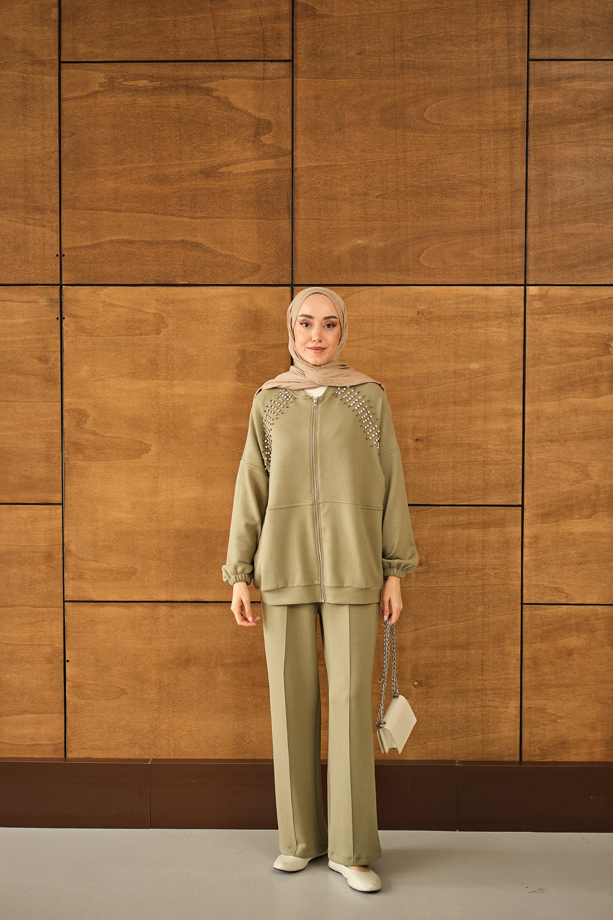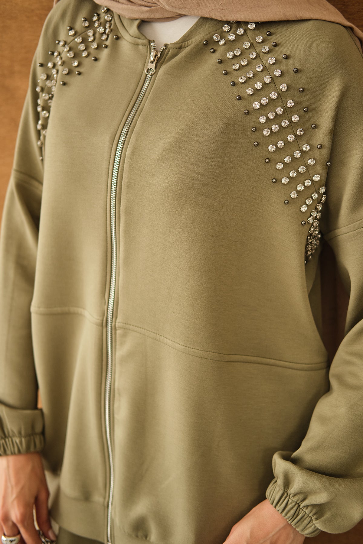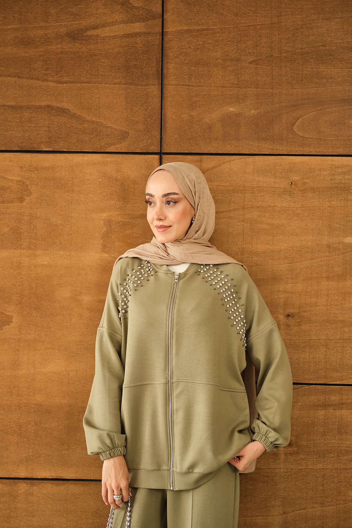 Omuz Taş Detay Takım Yeşil