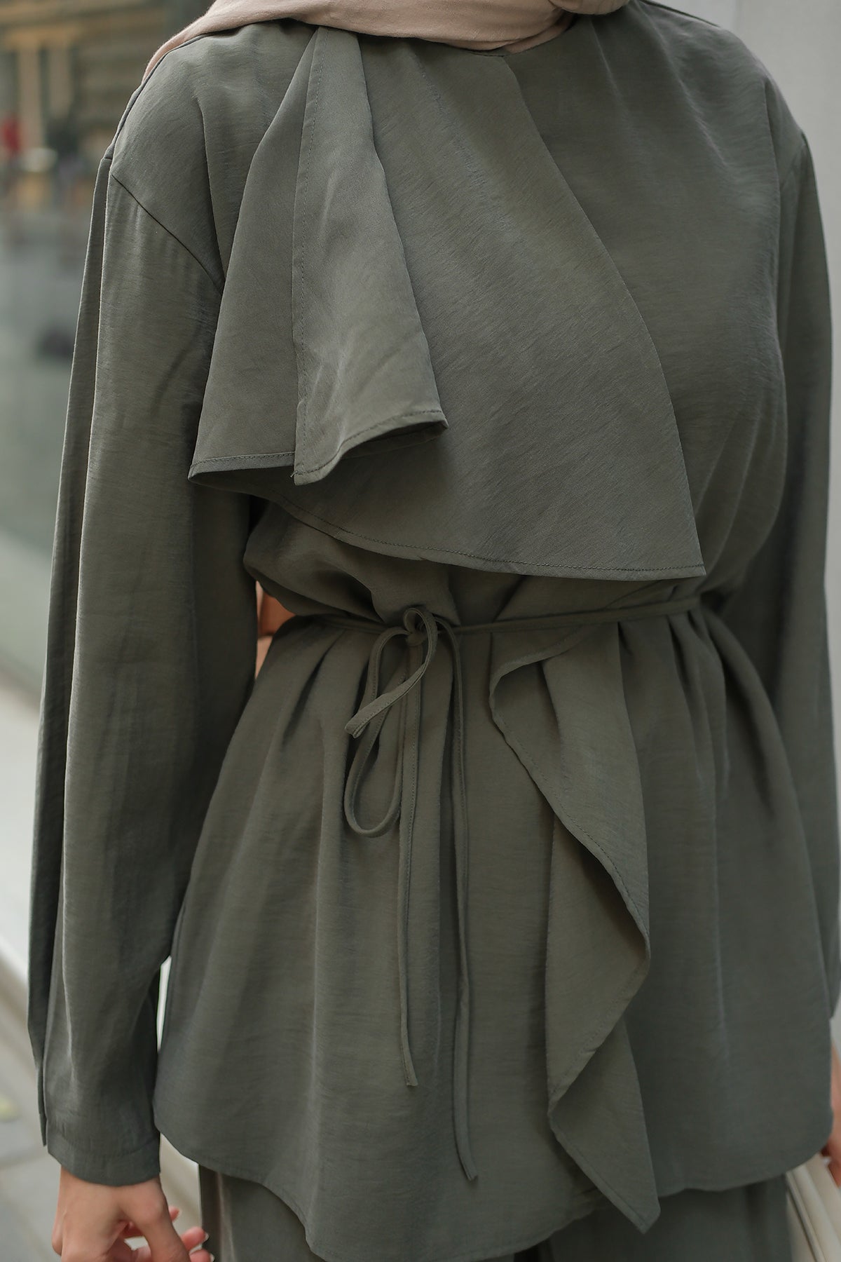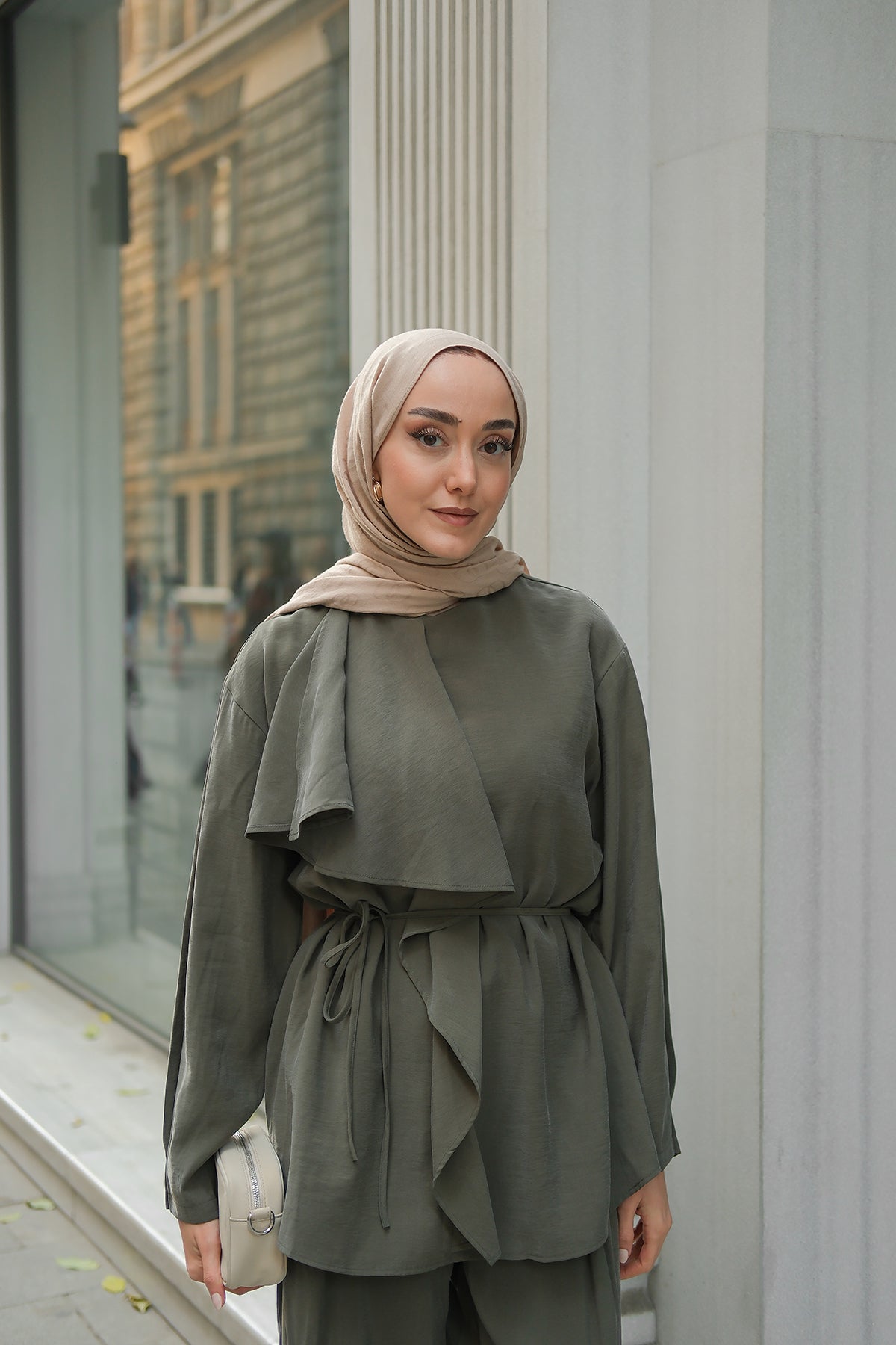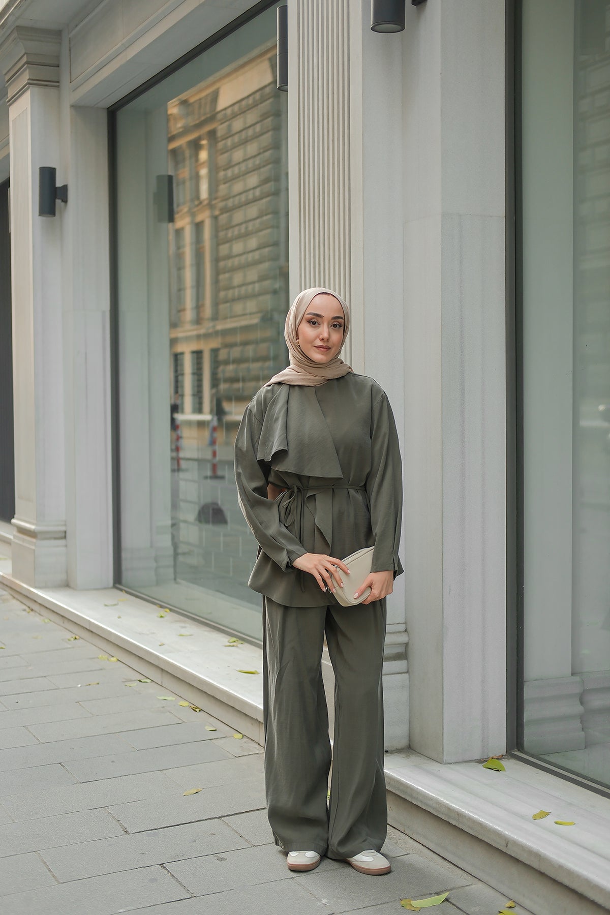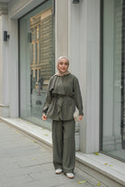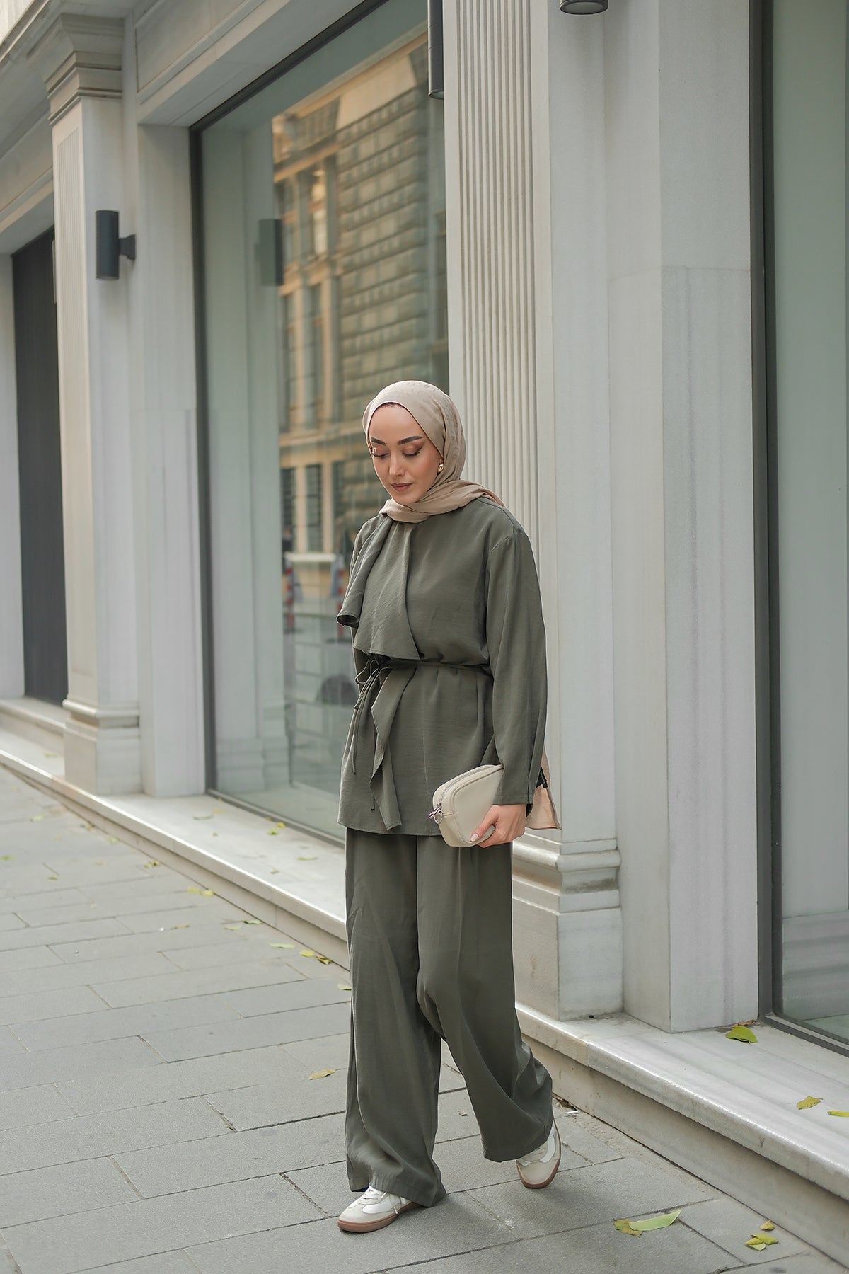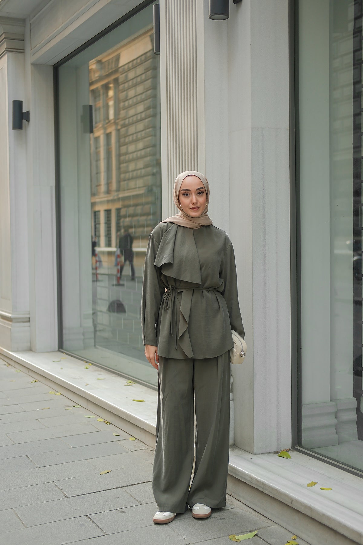 Ön Büzgülü İkili Takım Koyu Yeşil