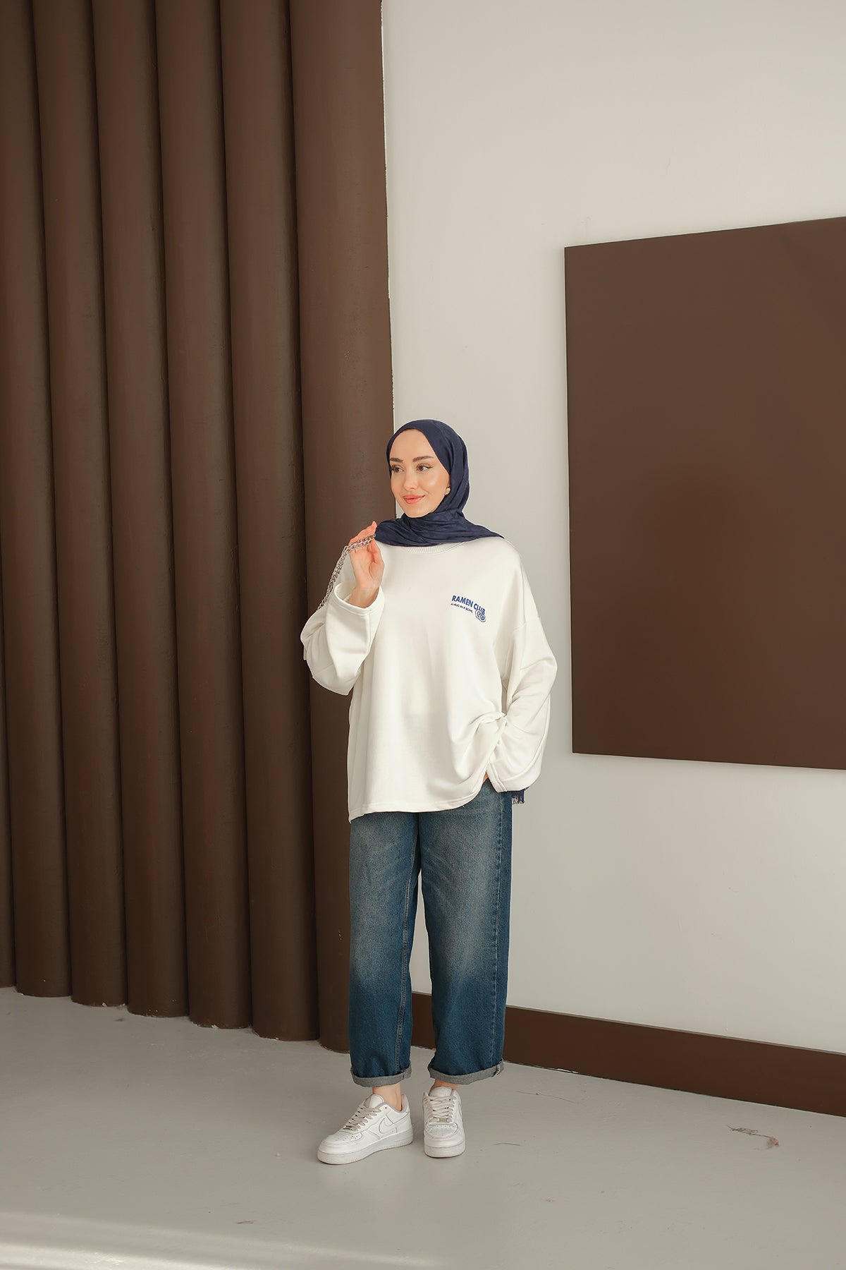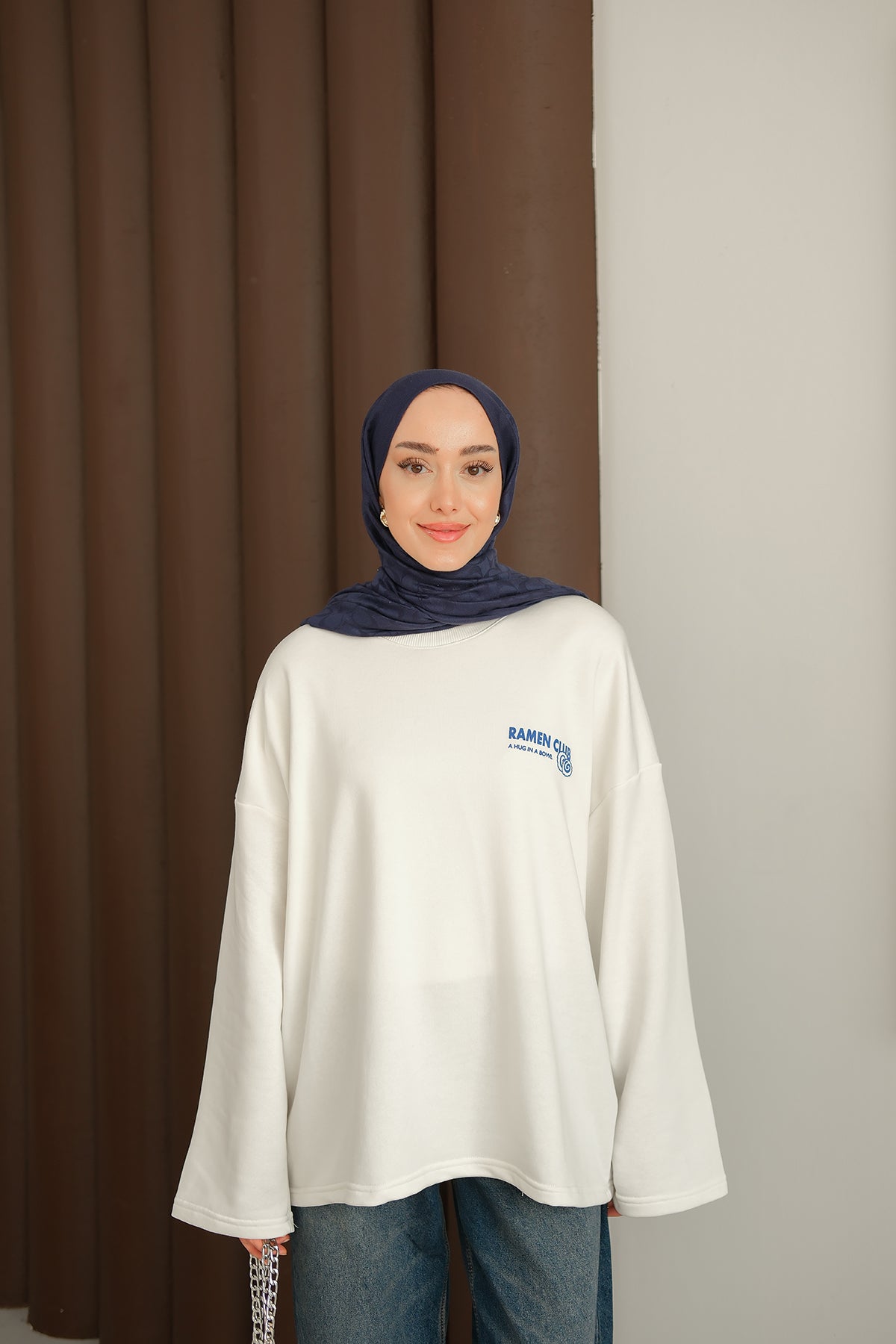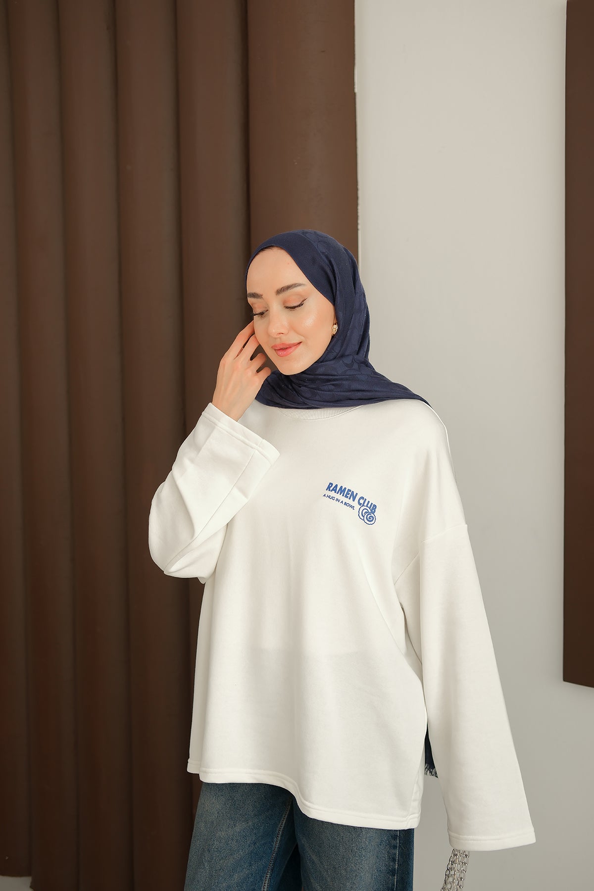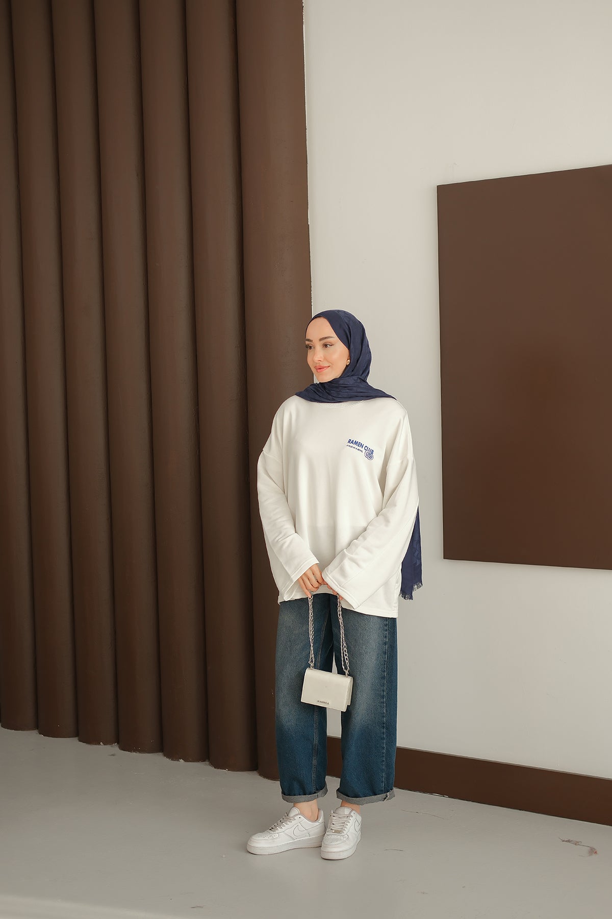 Ön Ve Arka Yazı Baskılı Sweat Beyaz
