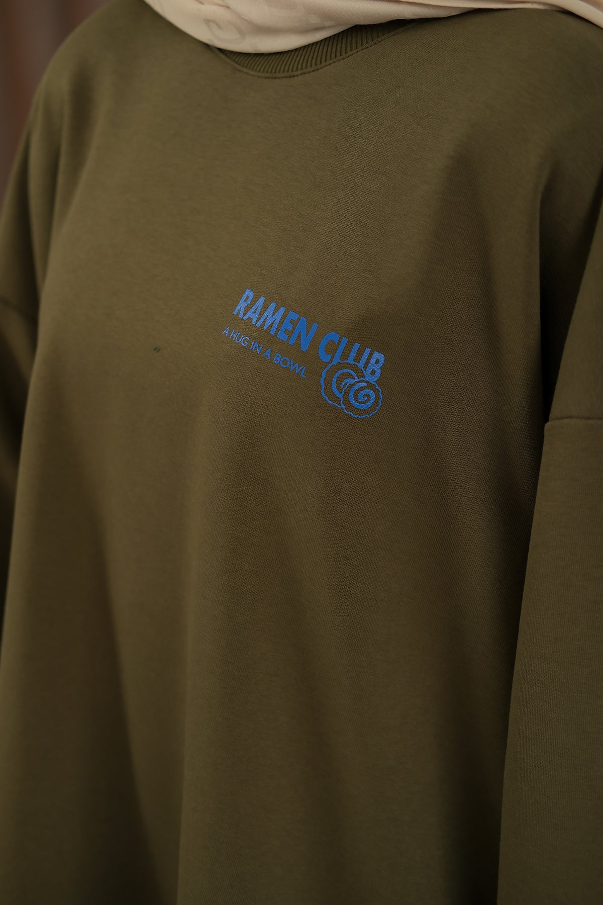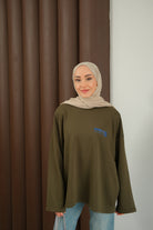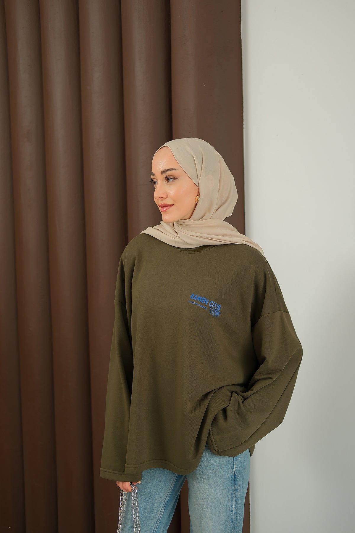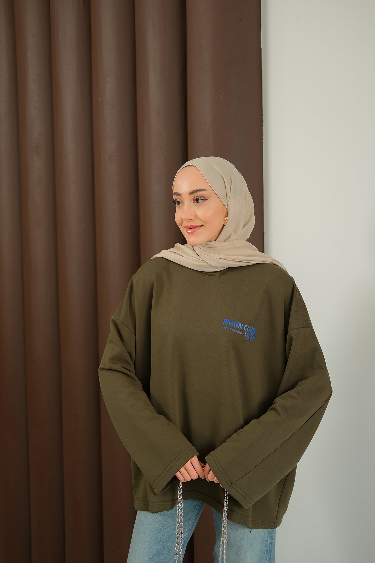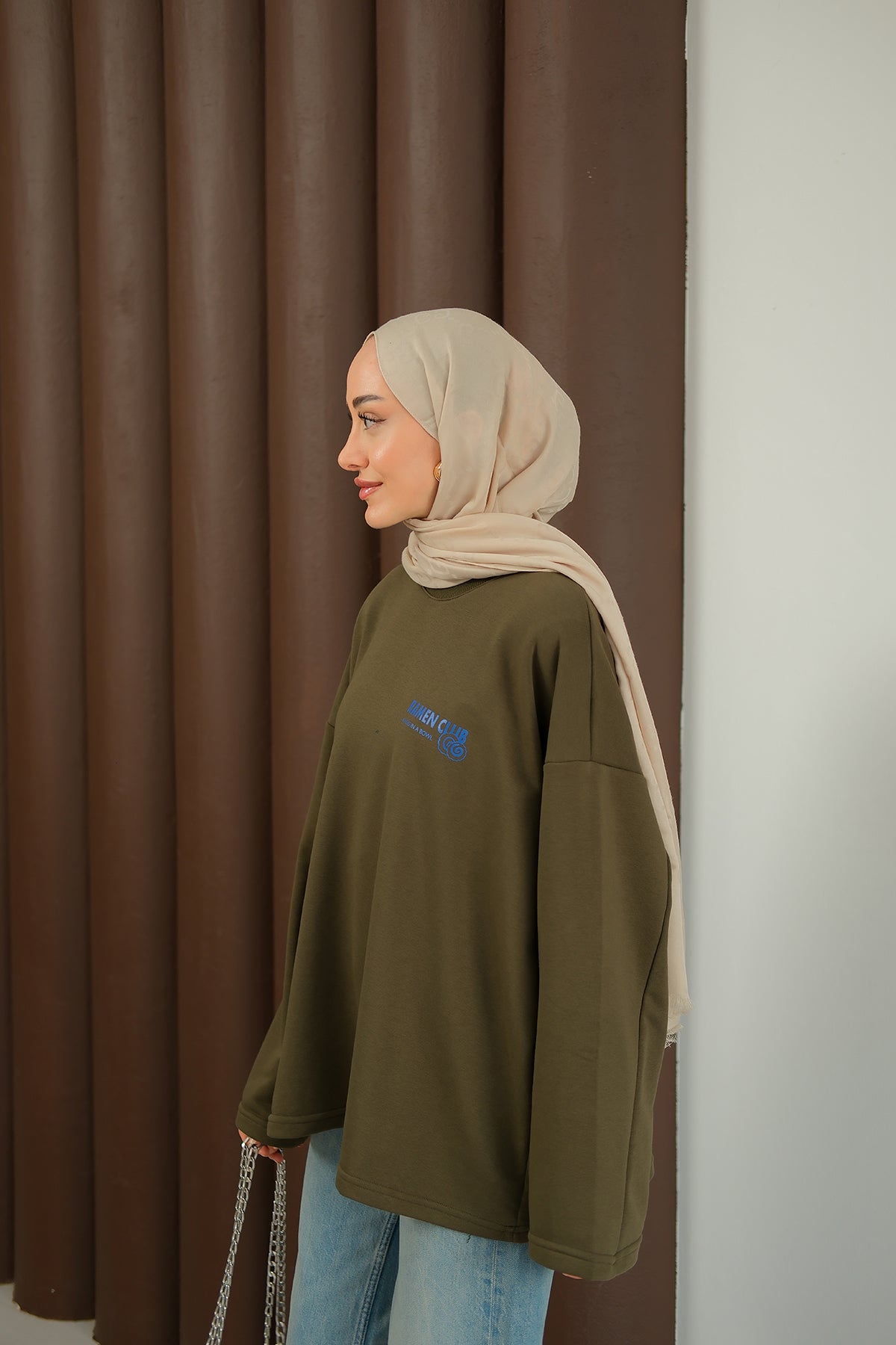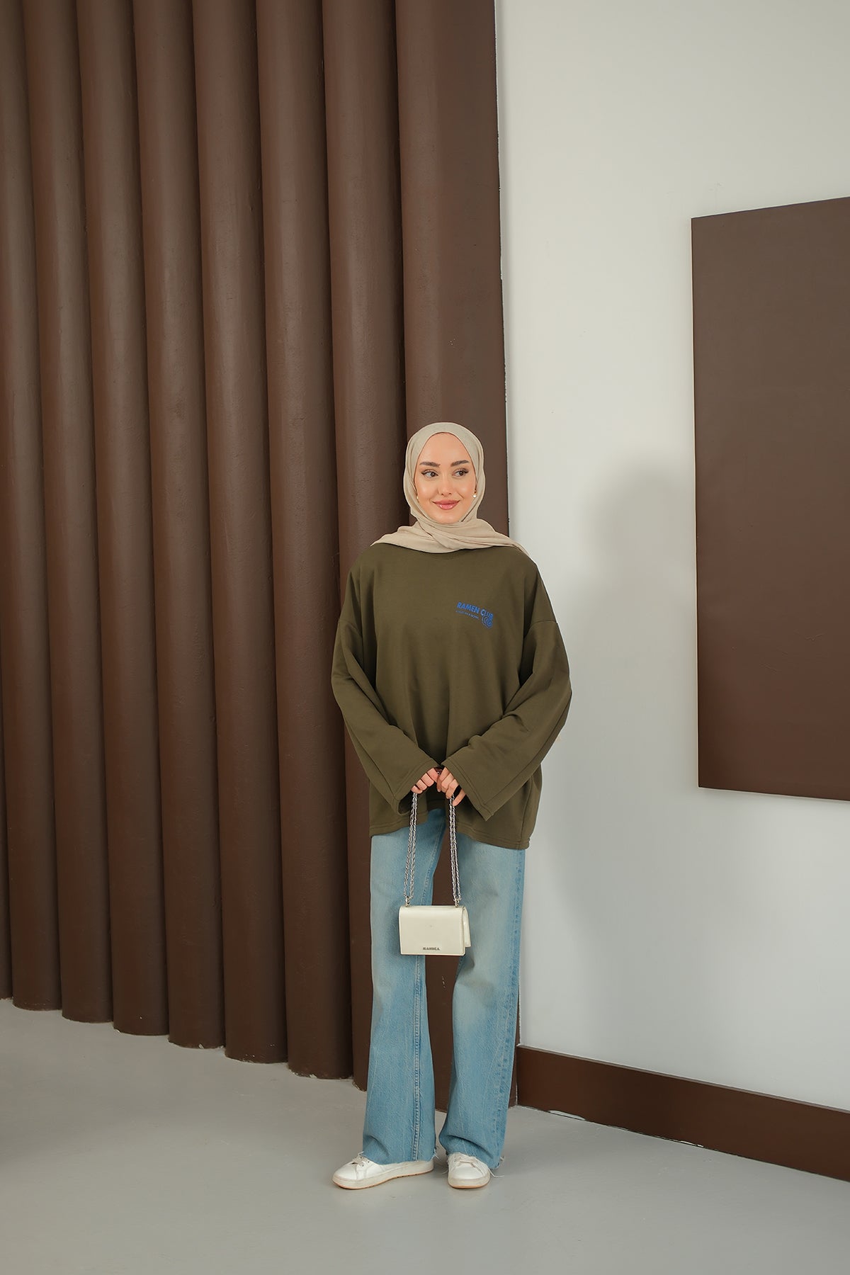 Ön Ve Arka Yazı Baskılı Sweat Haki Yeşil