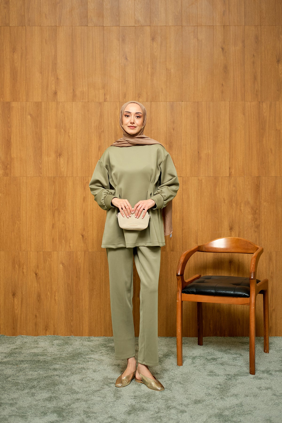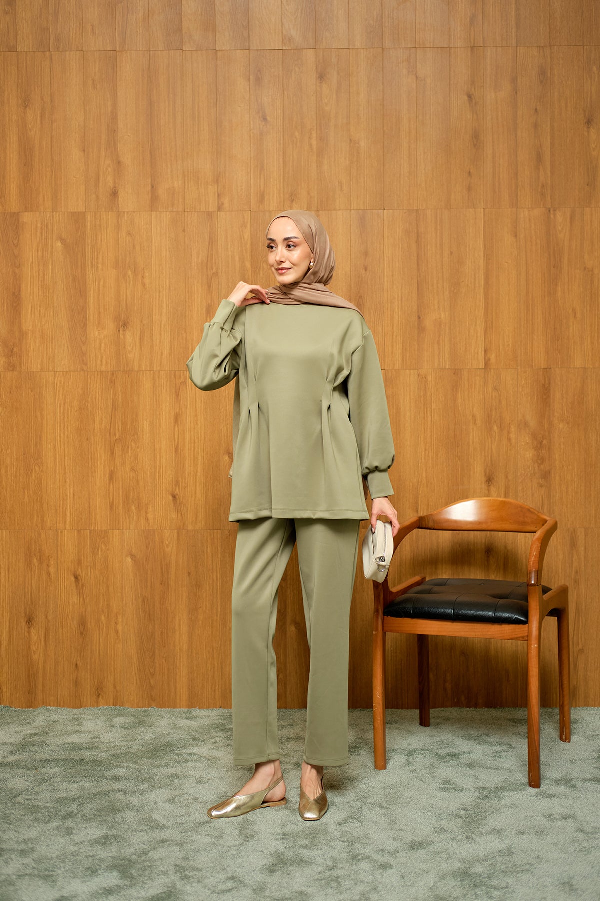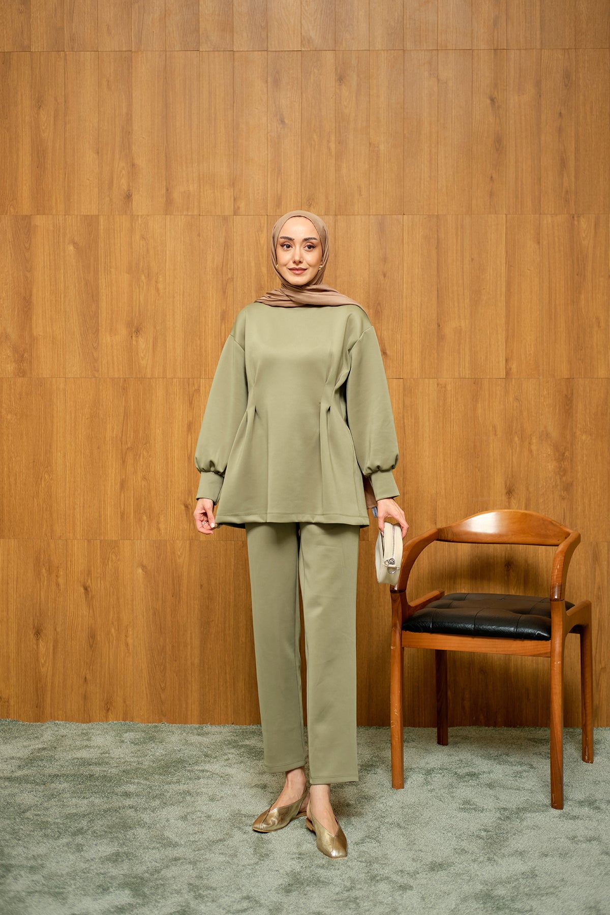 Önden Pileli Takım Yeşil
